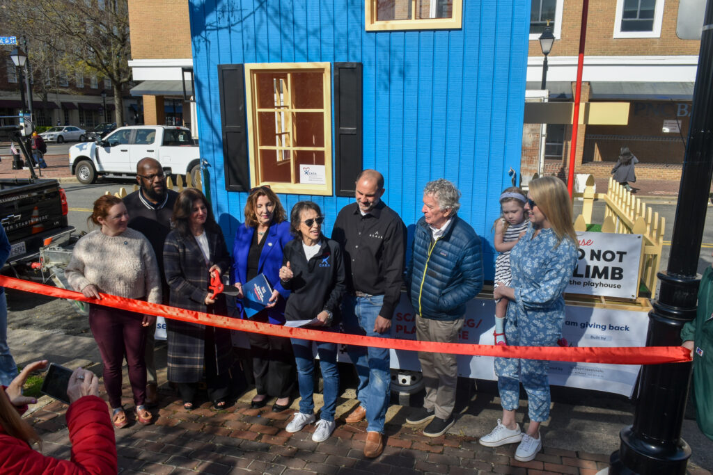 The choice of design for the playhouse was deliberate and meaningful. Inspired by Alexandria’s iconic Spite House, the skinniest house in the U.S., the Alair Alexandria team found the perfect symbol for their project.