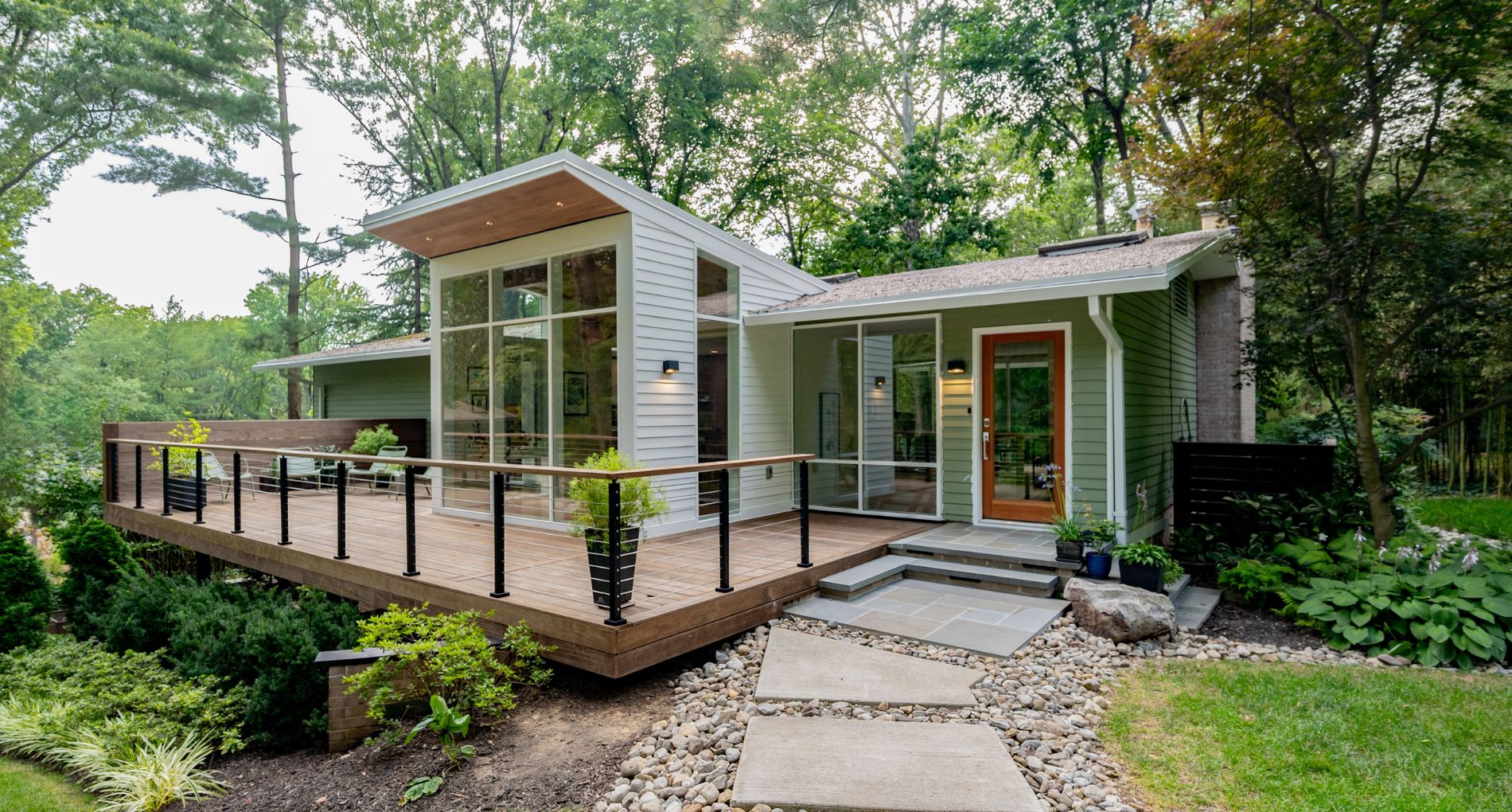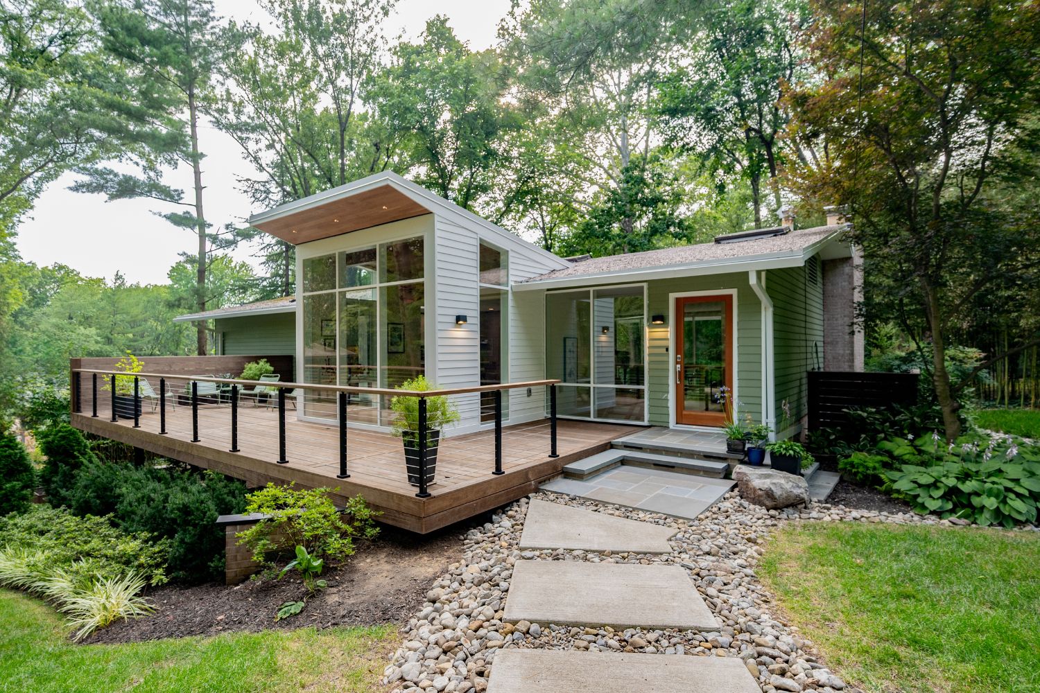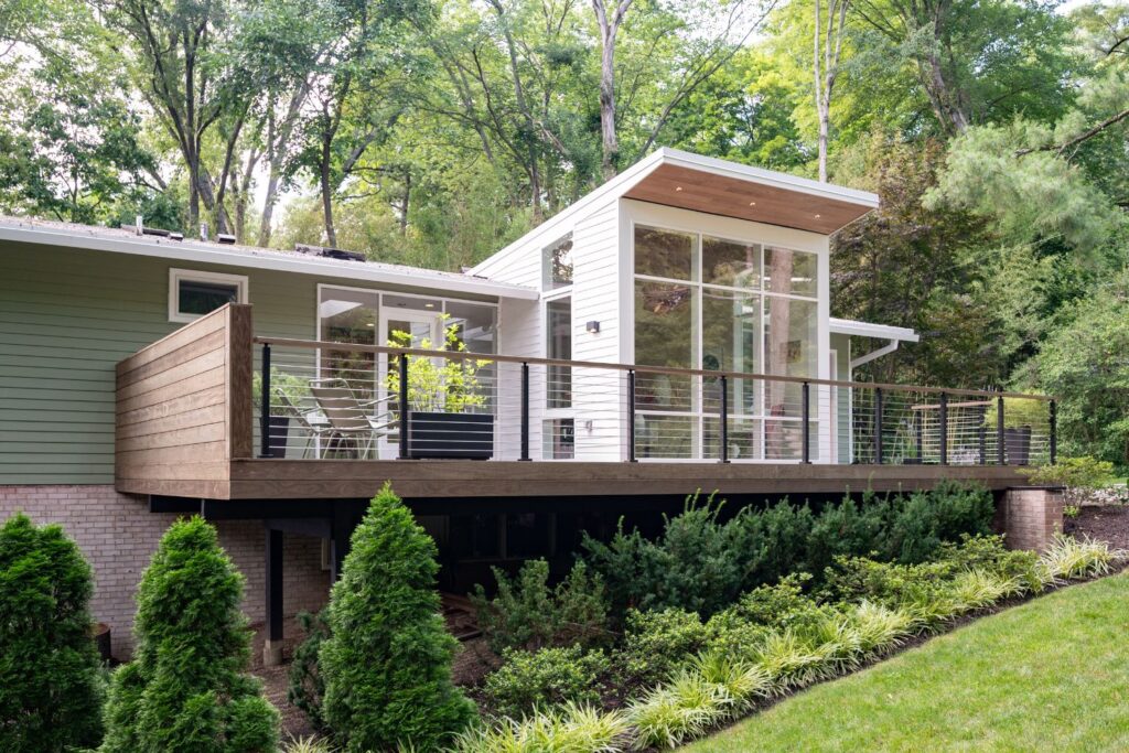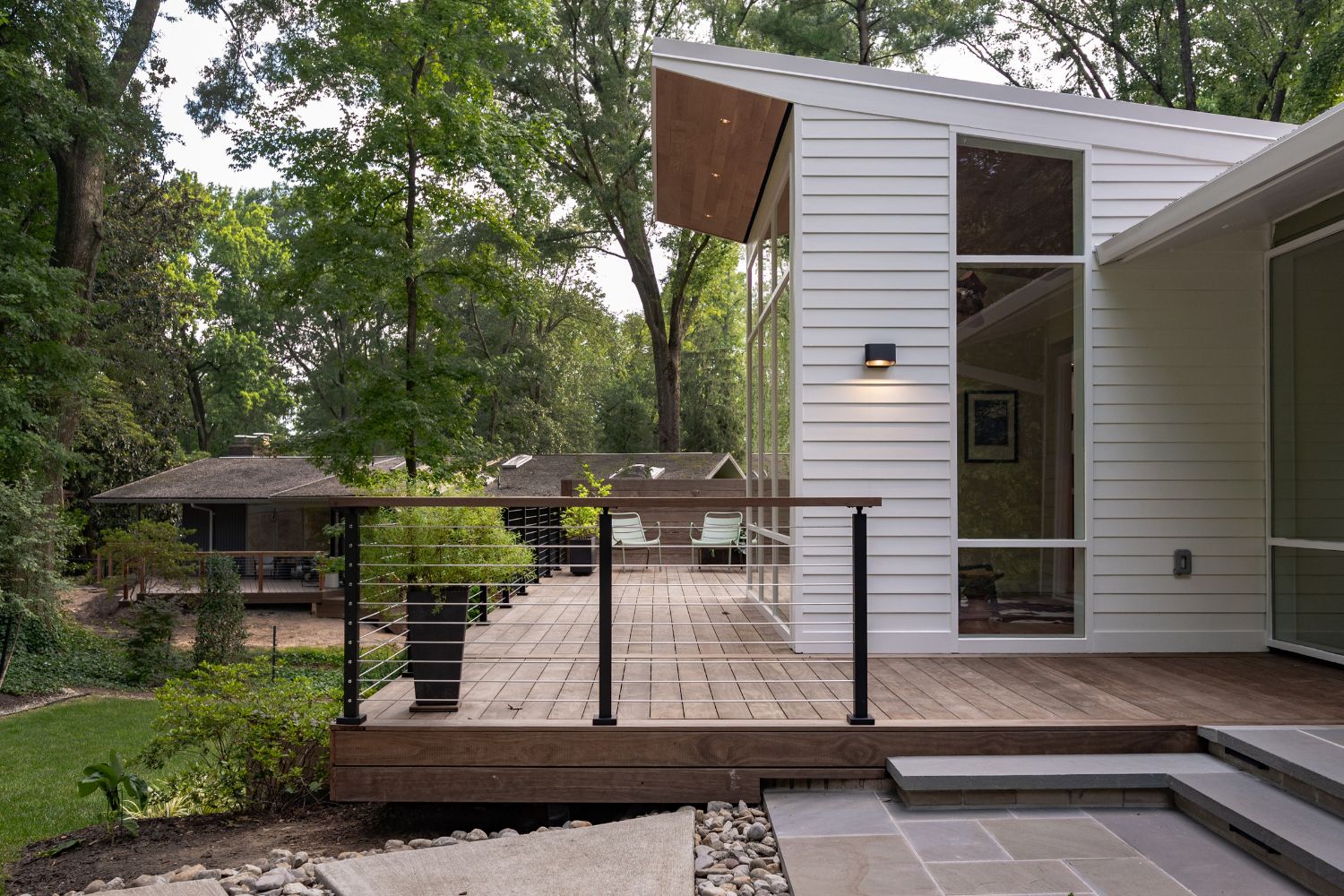 The owners referred to the existing addition as the ‘Sharkfin’ due to its oddly shaped roofline, and they couldn’t wait to replace it with something more fitting for the neighborhood. Their existing deck was also visually heavy, so we undertook the project to replace both the deck and the addition.