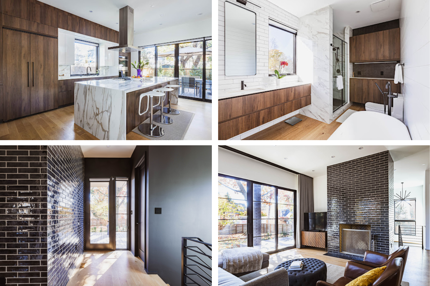 Just look at our recent Modern Arlington project designed by architect Willy Bermudez: the island countertop matches the shower, and the entryway tiles match the living room fireplace.