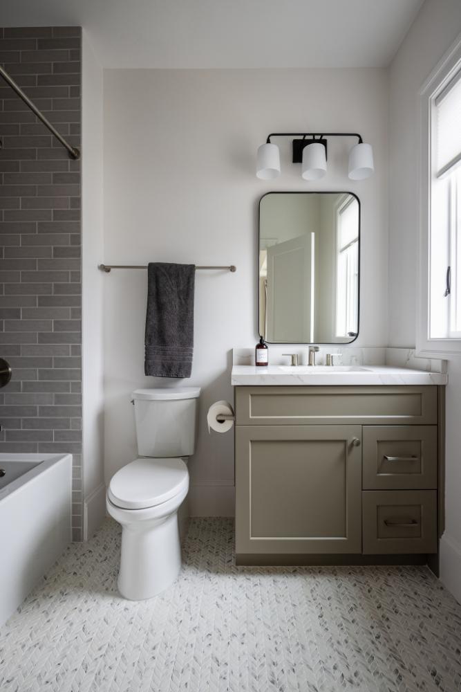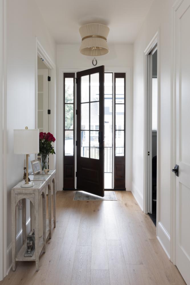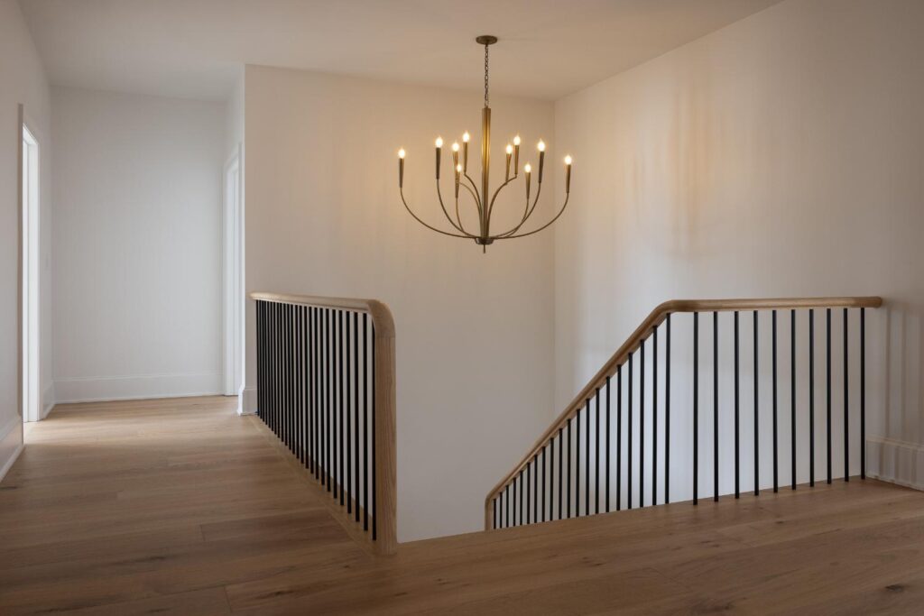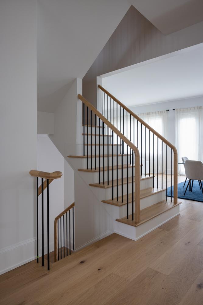 With lot restrictions in place, we strategically expanded the footprint by building onto the left side and adding a full second story. To maximize functionality, we underpinned the basement, raising the ceiling height to 8.5 feet, while increasing the first- and second-floor walls to 9 feet—bringing the proportions in line with new construction standards. The enclosed front porch was carefully restored to its original charm and enhanced with slate flooring and sleek metal railings.