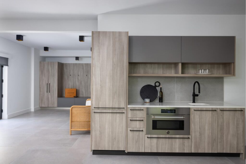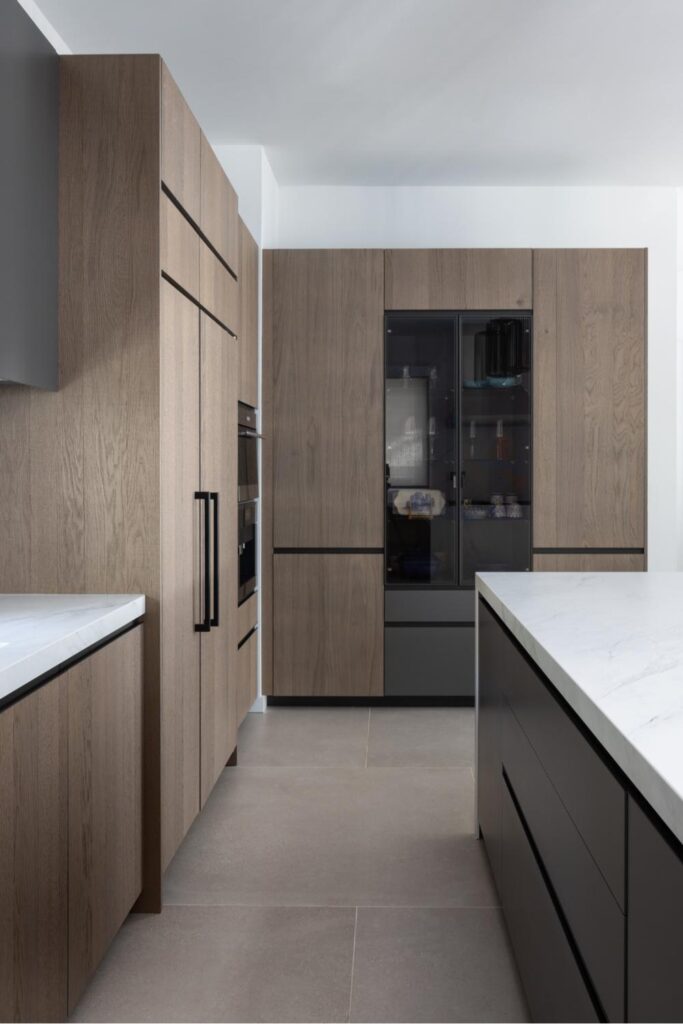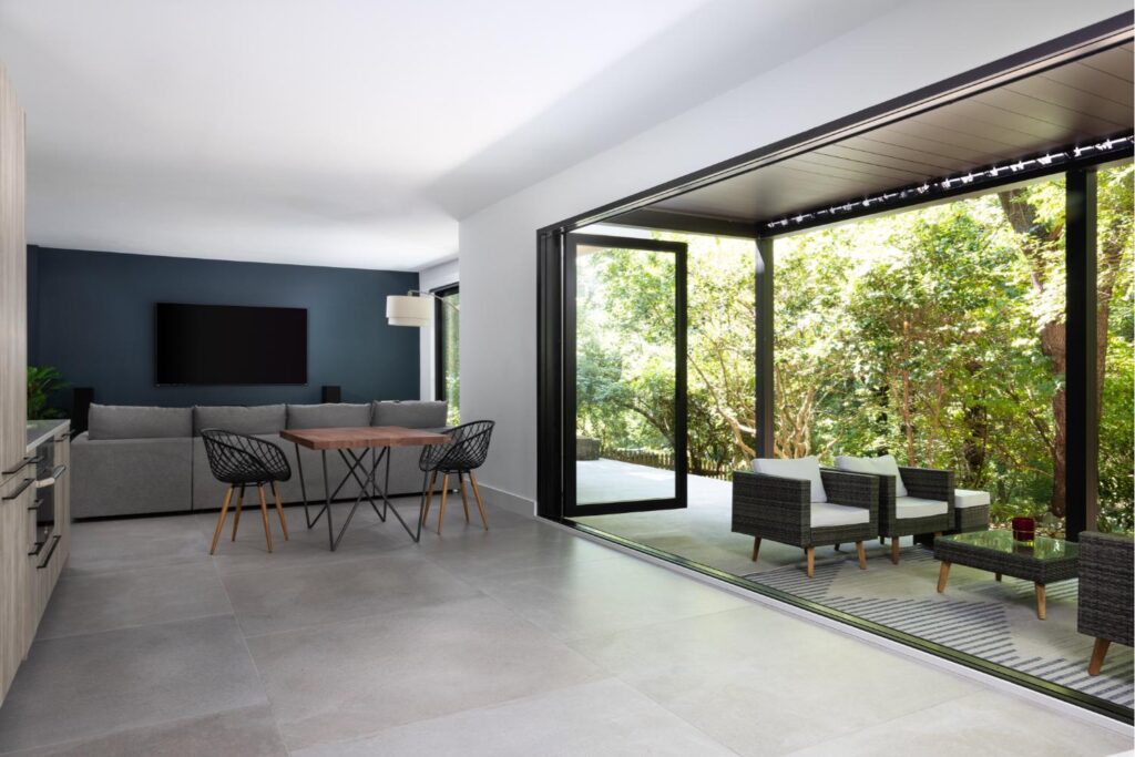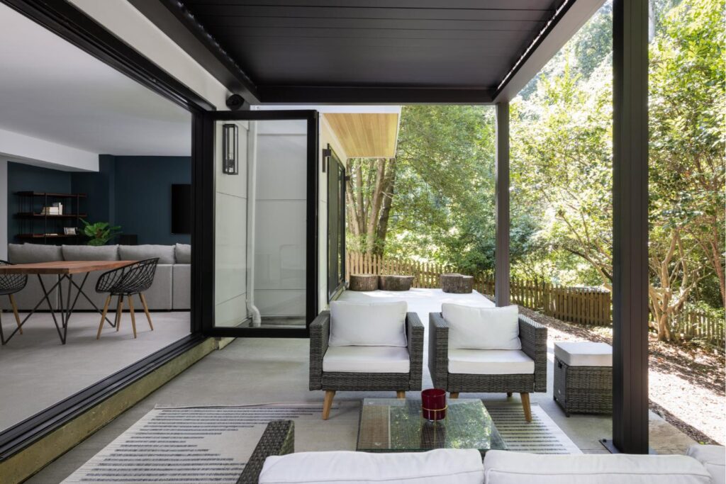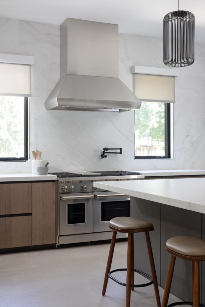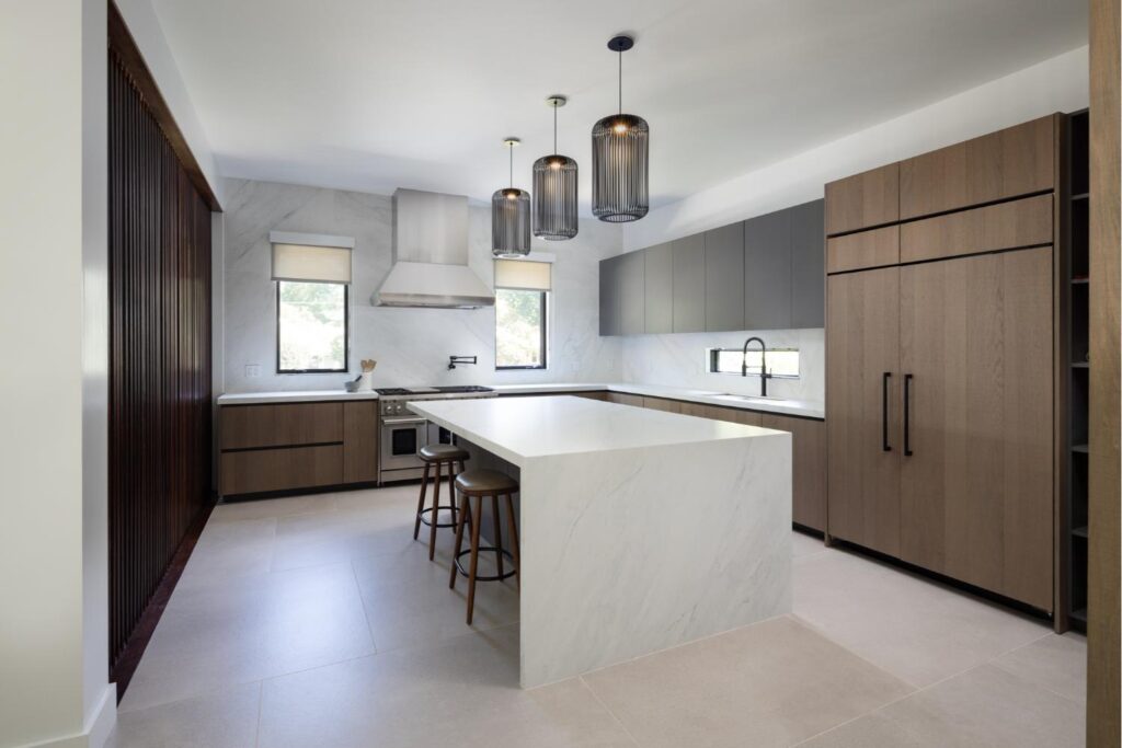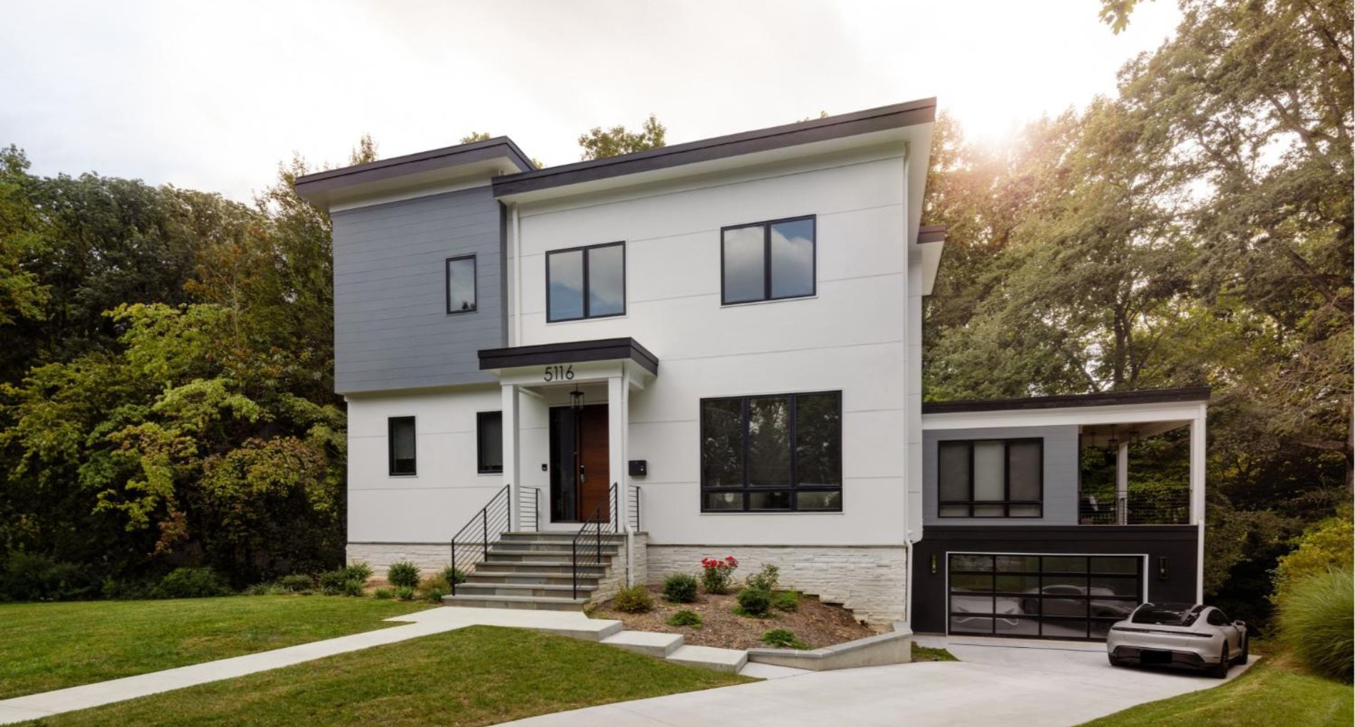 This award-winning modern custom home in Bethesda, MD, started as a traditional Cape Cod 1.5-story home. We saved three basement walls and created a 6-bedroom, 5.5-bath oasis in the city. The home features European cabinetry and tile, professional-grade appliances, a Quartzite waterfall counter, smart fixtures, custom carpentry, multiple outdoor living areas, and a 16-foot Centor folding door.
