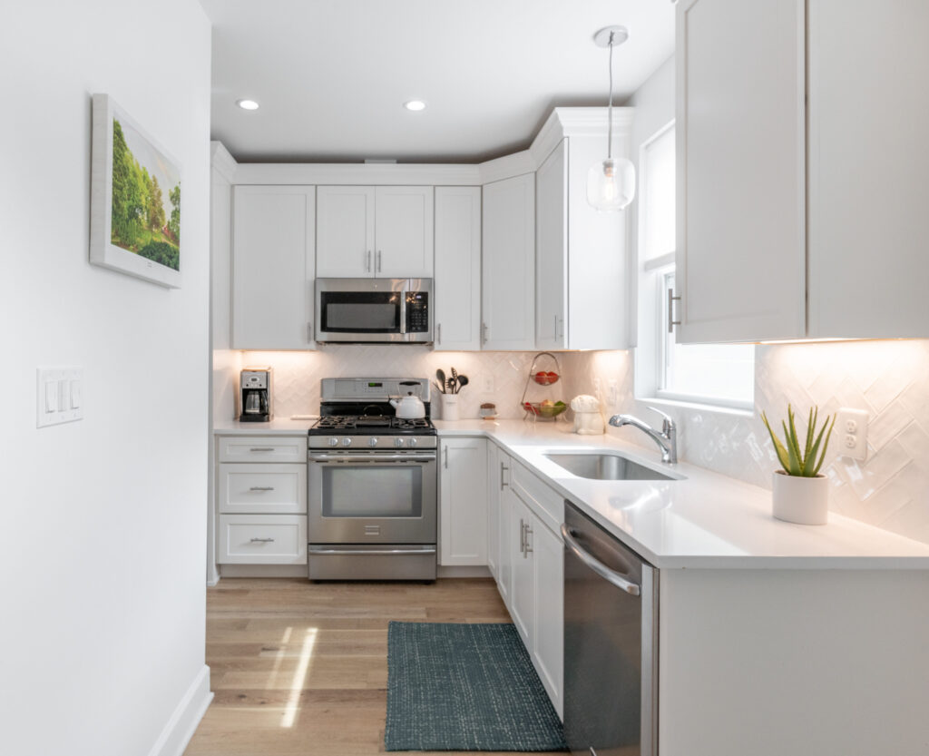 We transformed this 500 sq ft space in D.C., infusing modern touches that elevate both style and functionality.