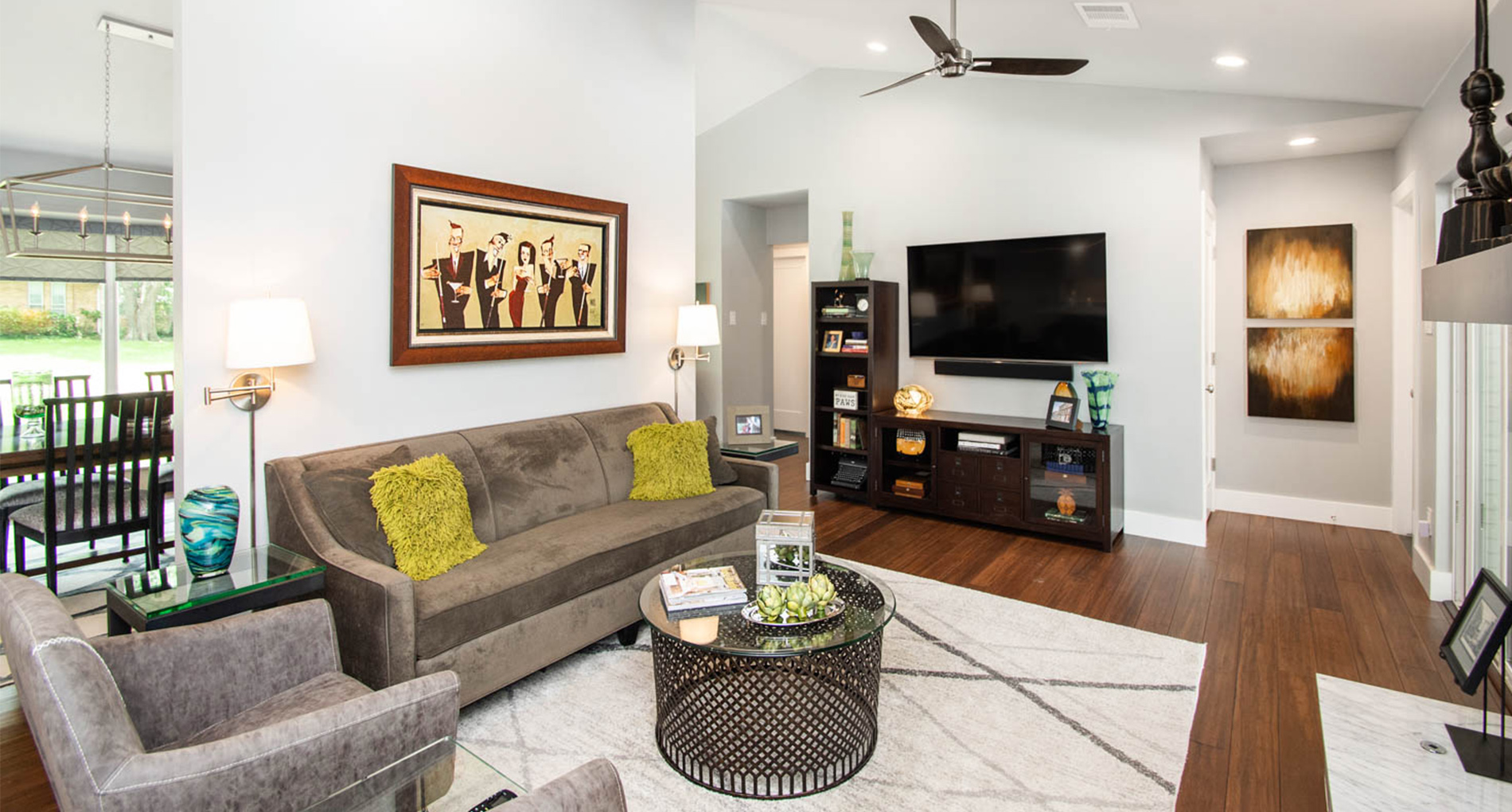 Our clients purchased a 1963 home that had never been updated. They wanted to redesign the central living area, which included the kitchen, formal dining area, and living room/den.