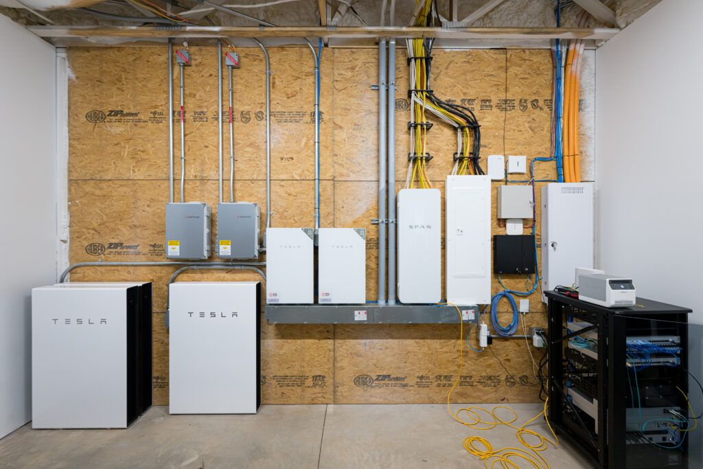 The 2,974-square-foot Sweet Fern Residence was designed from the ground up to be fully electric, net-positive, and able to operate independently of the grid. At the heart of this home is a forward-thinking energy package that integrates a SPAN Smart Panel, a 10.5–11 kW rooftop solar array, and three Tesla Powerwalls, creating a system that is both elegant and powerful.