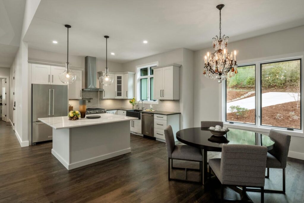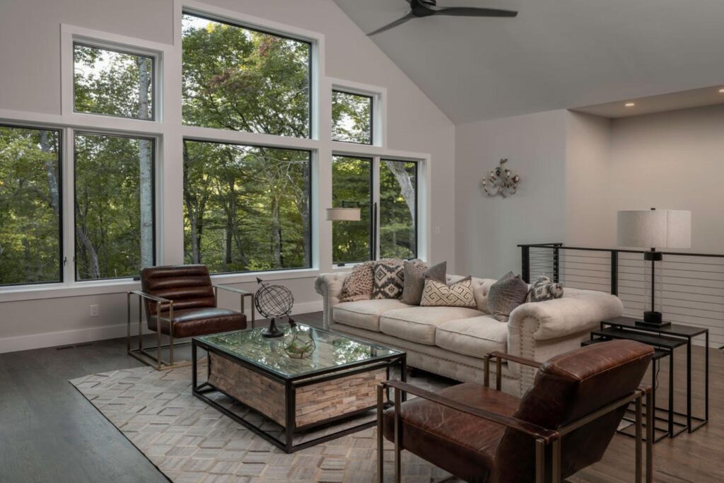This beautifully designed home combines luxury, comfort, and sustainability with NC Green Built certification and advanced AeroBarrier technology for superior energy performance. Featuring expansive glass views, over 1,000 square feet of outdoor living, and seamless indoor-outdoor flow, it offers a refined yet nature-connected lifestyle just minutes from town.