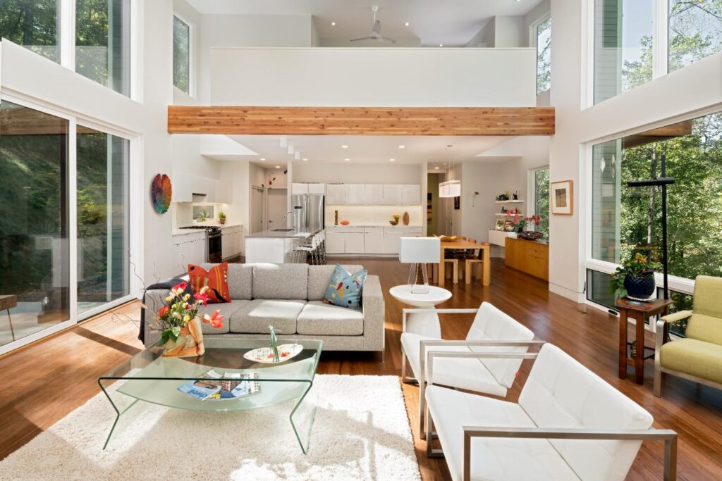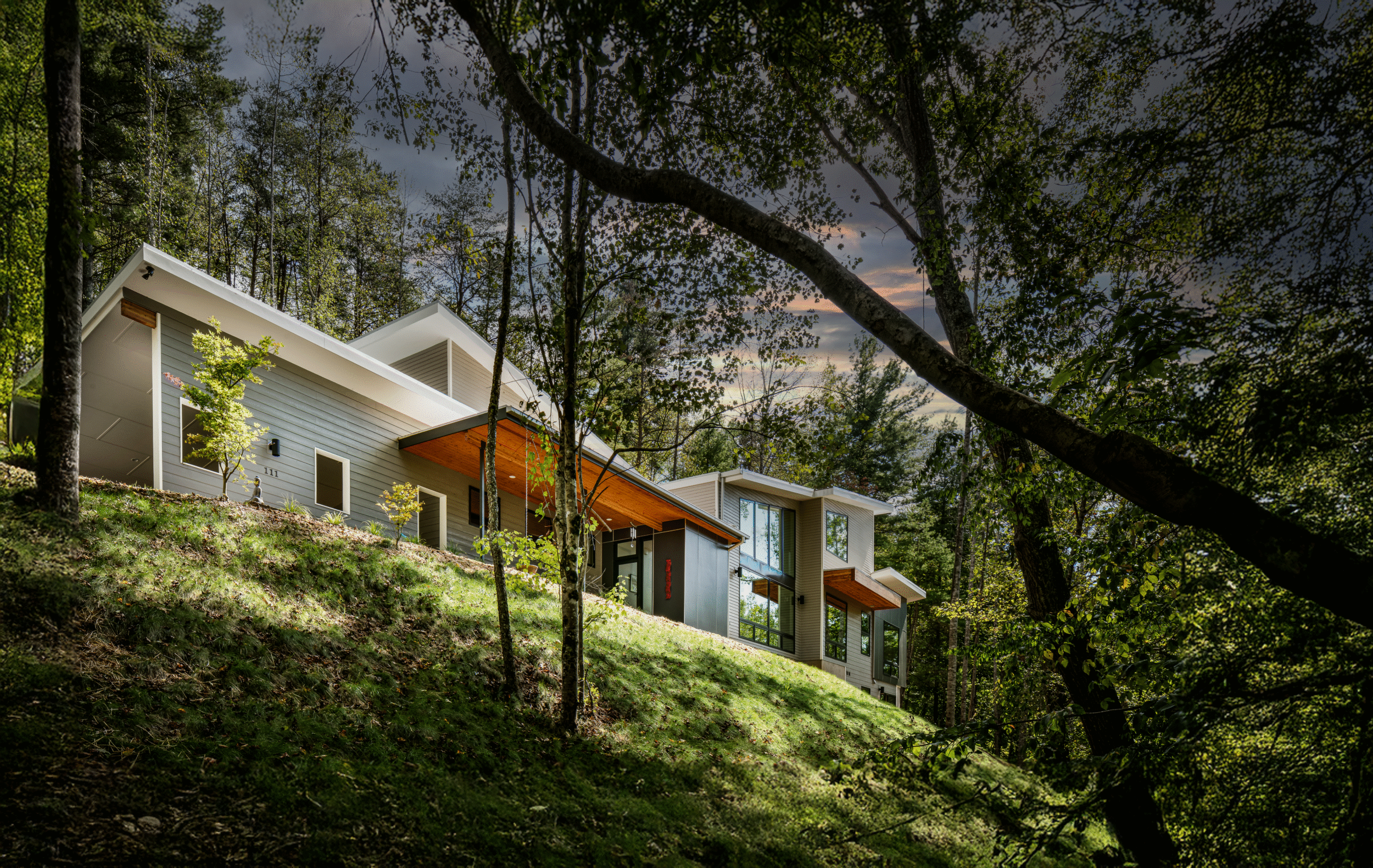 Tucked into Asheville’s Beaverdam community, this contemporary retreat seamlessly blends modern design with the tranquility of nature. Floor-to-ceiling glass and sustainable craftsmanship create a light-filled sanctuary that reflects both the beauty of its surroundings and the personality of its owners.2461 sq feet