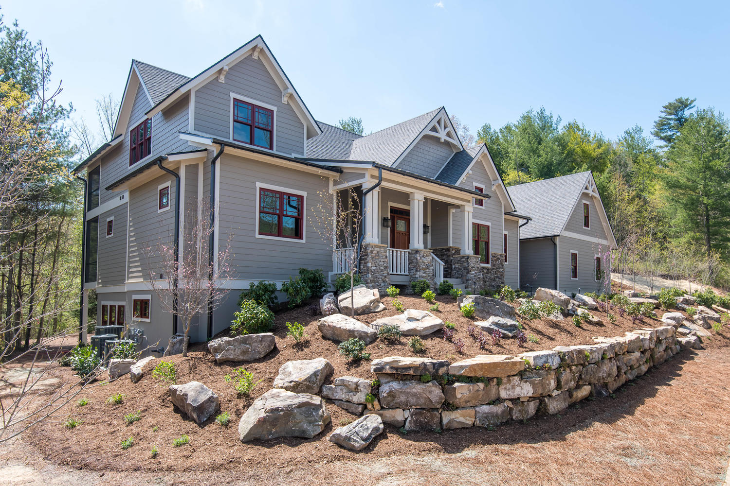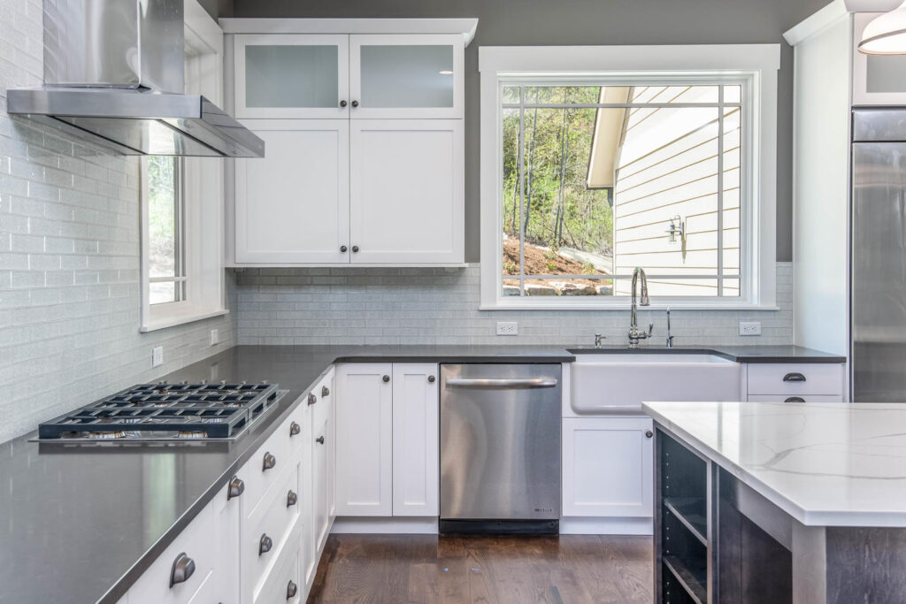 Located in Asheville’s Thoms Estate, this custom home embodies modern luxury and sustainable design. Bright, open living spaces and thoughtful details create an inviting atmosphere that blends comfort, performance, and timeless style.