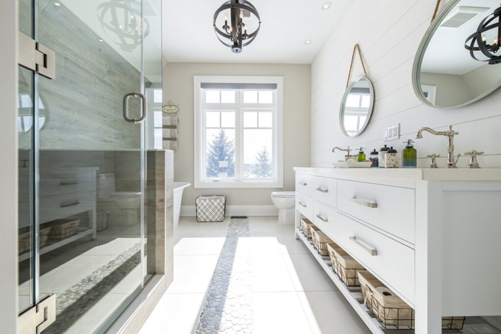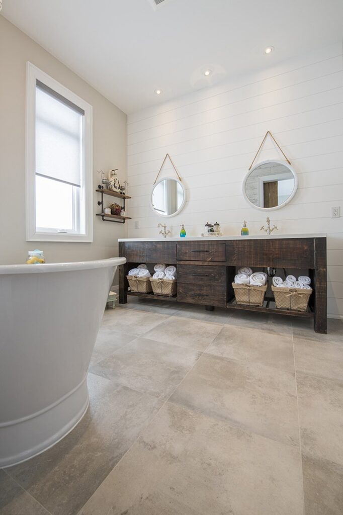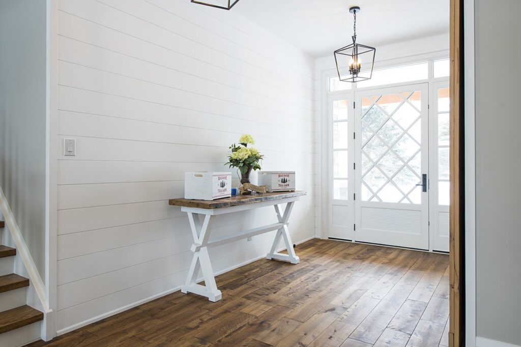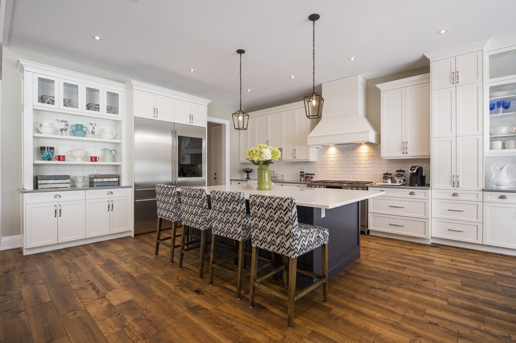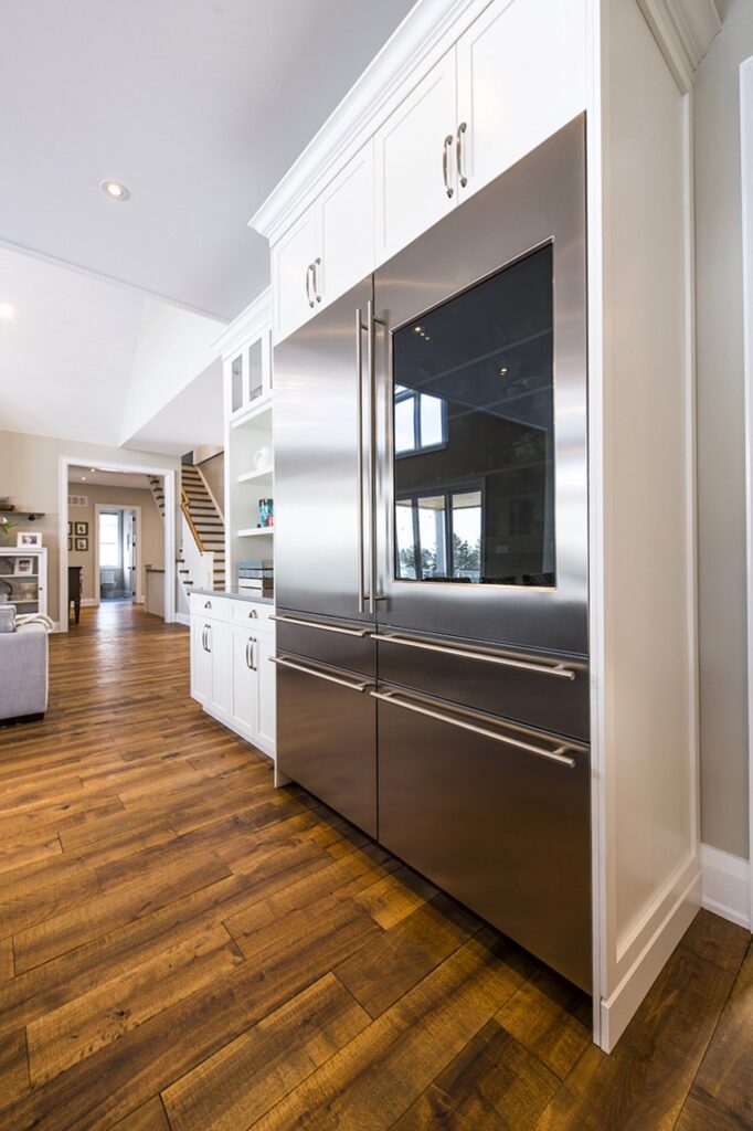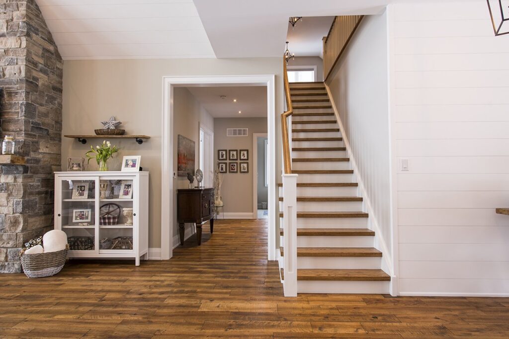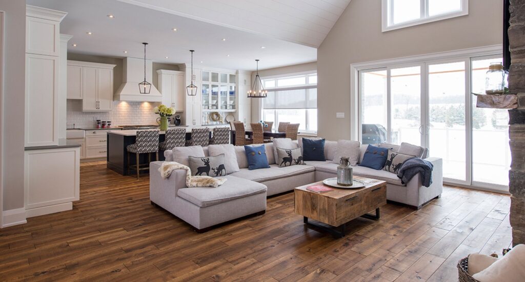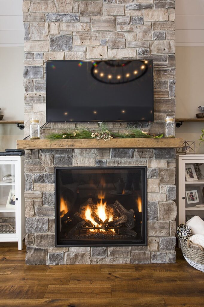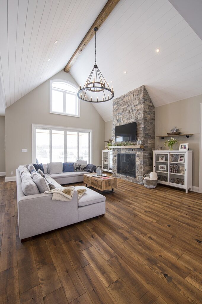 The beams in the living room are 300 years old and came from an old post office. The gorgeous fireplace is a Town & Country Fireplace with Essex County natural stone.