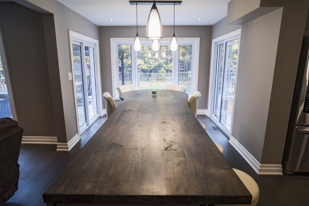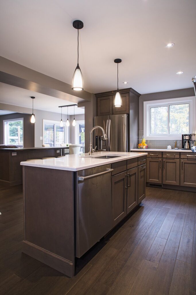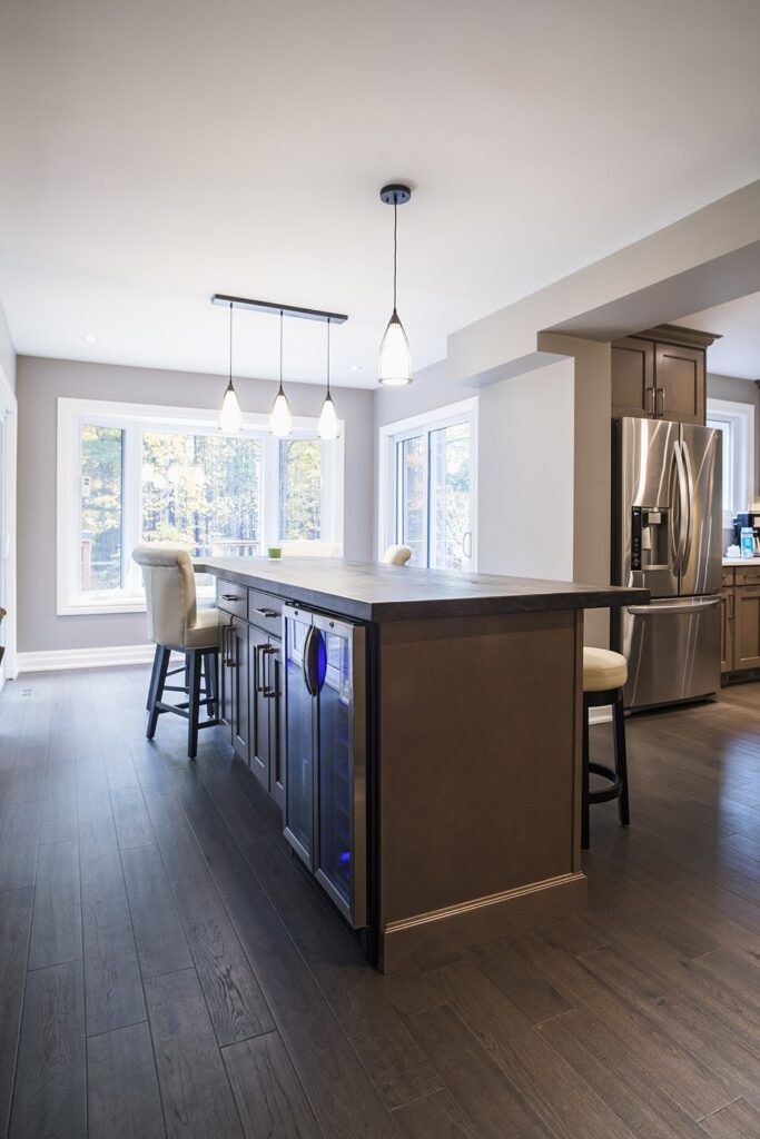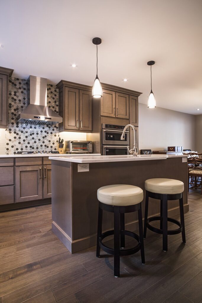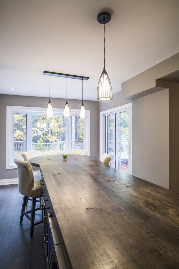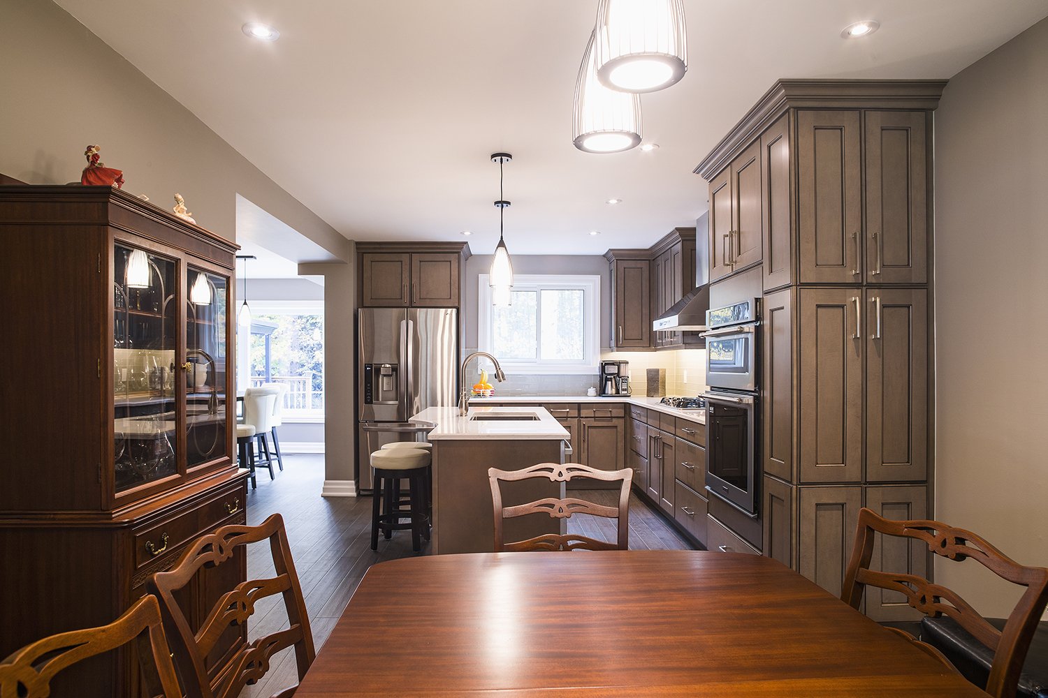 This extensive renovation transformed and opened up the entire main floor of this home. The dated, cluttered, blocked off floor plan was replaced with a bright, open, contemporary space with an immense amount of storage, style and functionality for everyday living and entertaining.