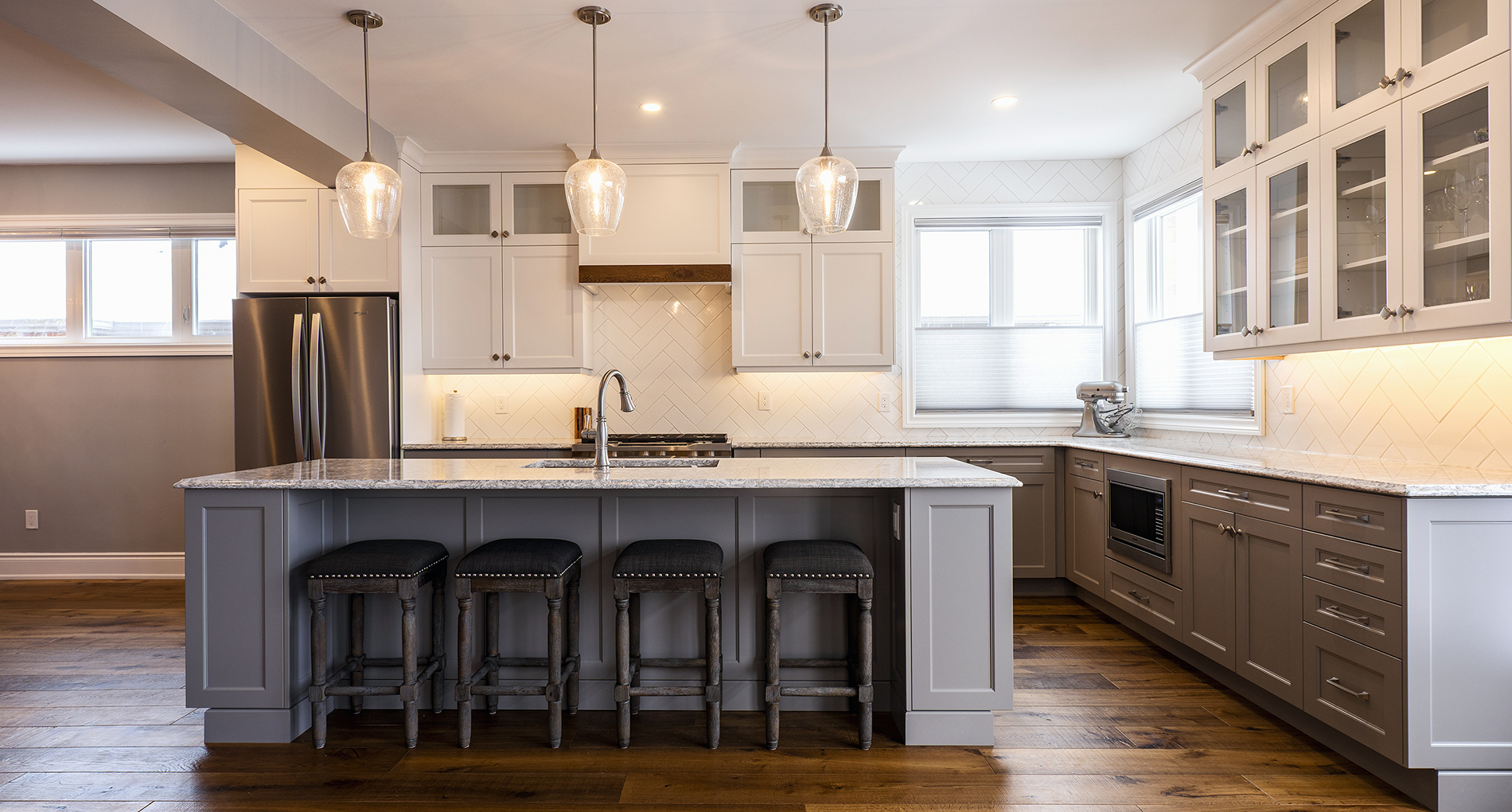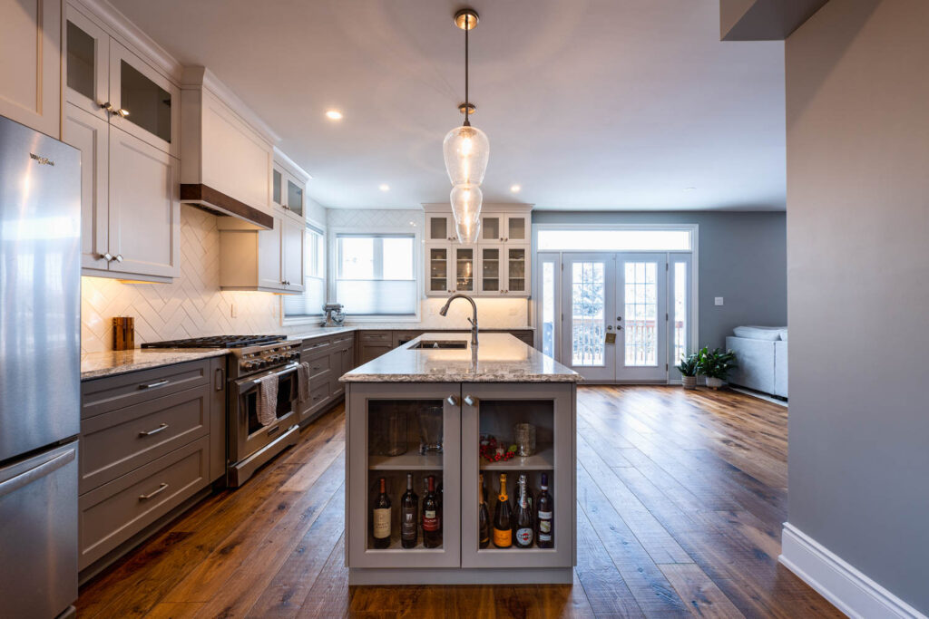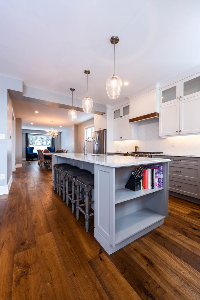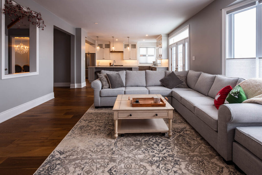 This 4-room sub division was renovated into a functional open concept, combining the kitchen and living room into a bright and cozy main living space.