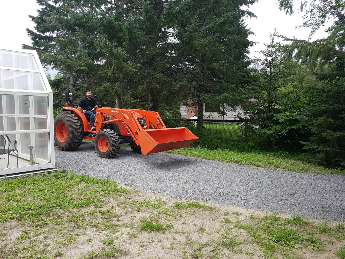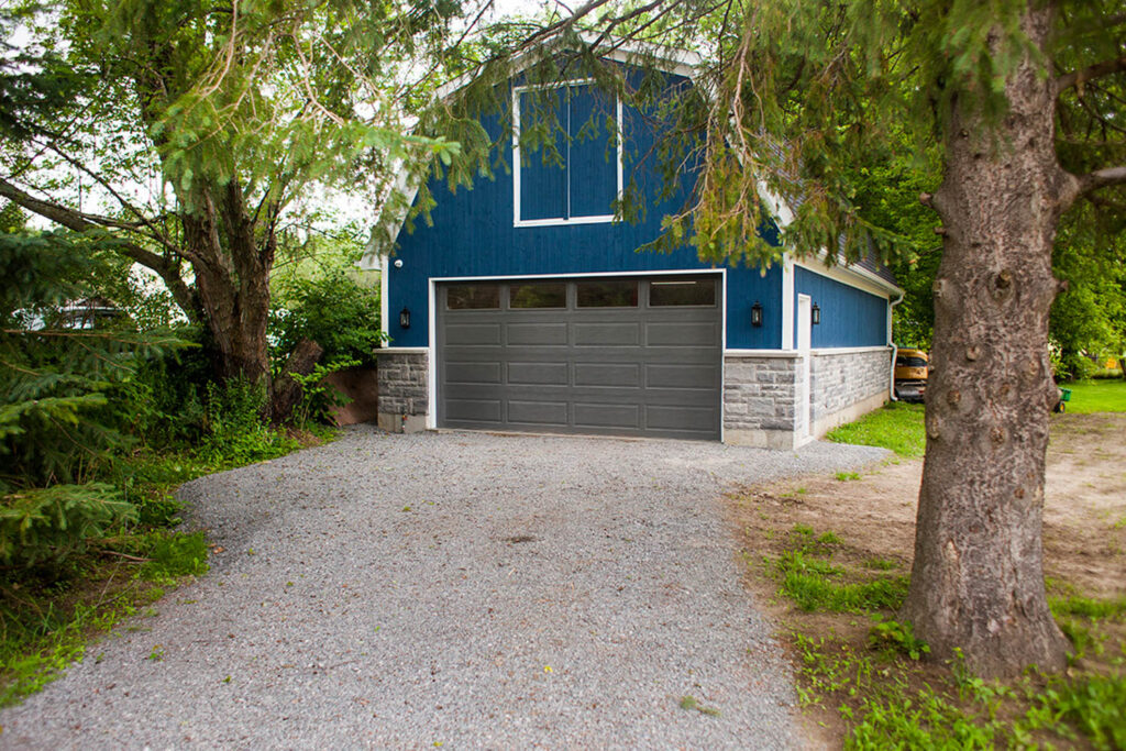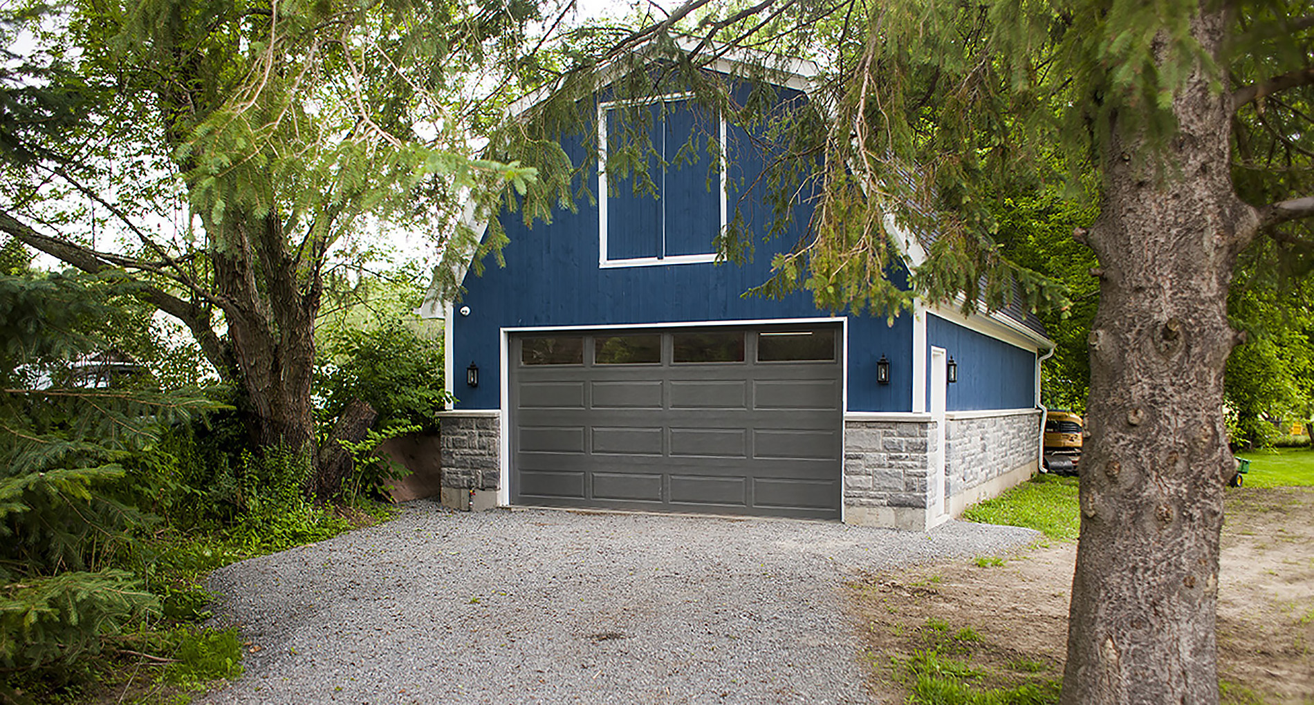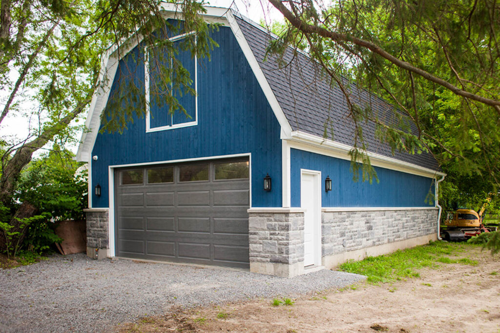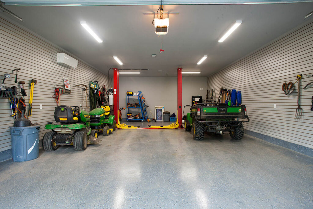 We created a barn-style workshop garage for the clients to store their tractor and lawn care equipment in style.