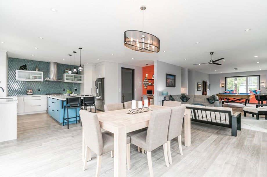 This lot had great potential for a fully finished walkout basement, which is exactly what the clients and their children needed. The home now features two games rooms, a large great room, and a fantastic kitchen as well, all overlooking Lake Simcoe.