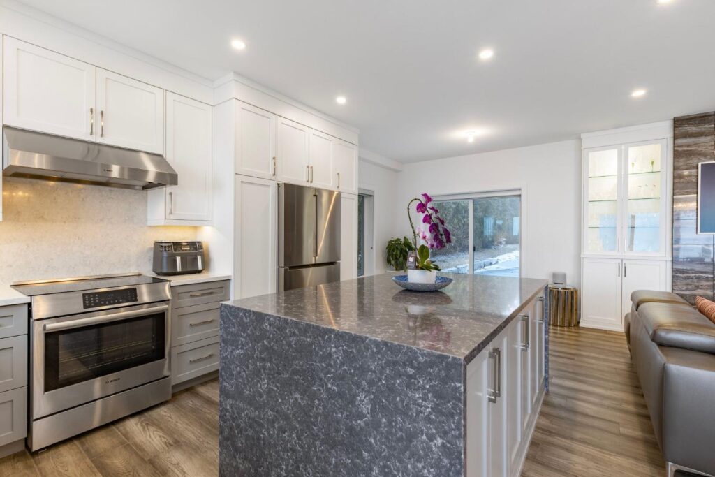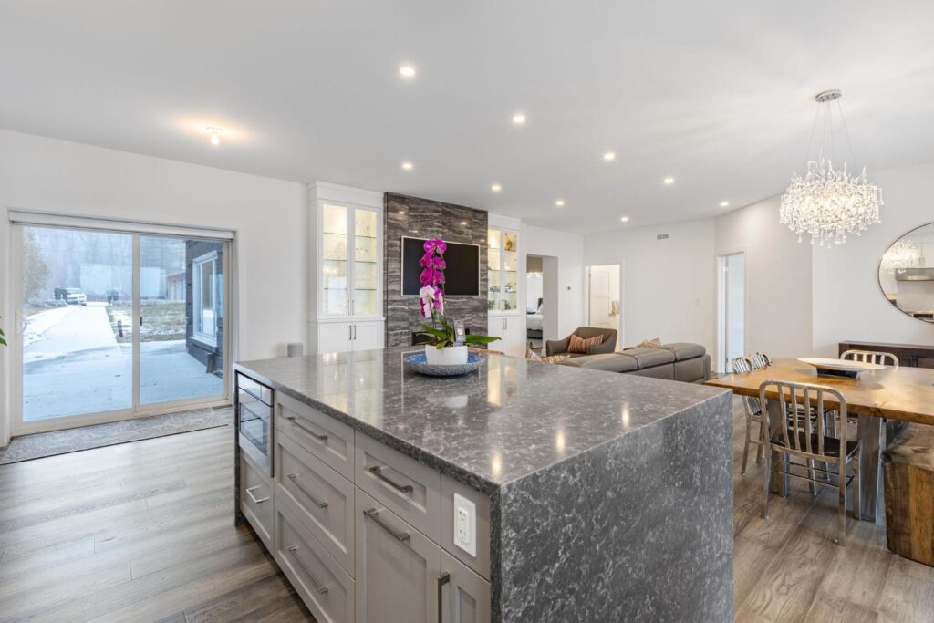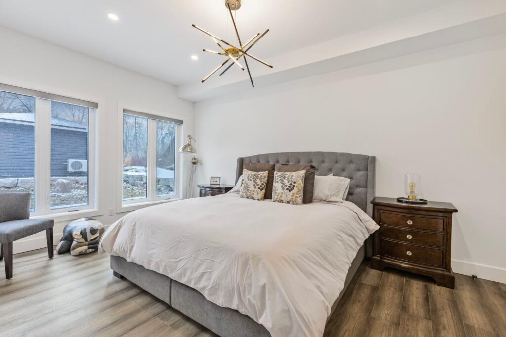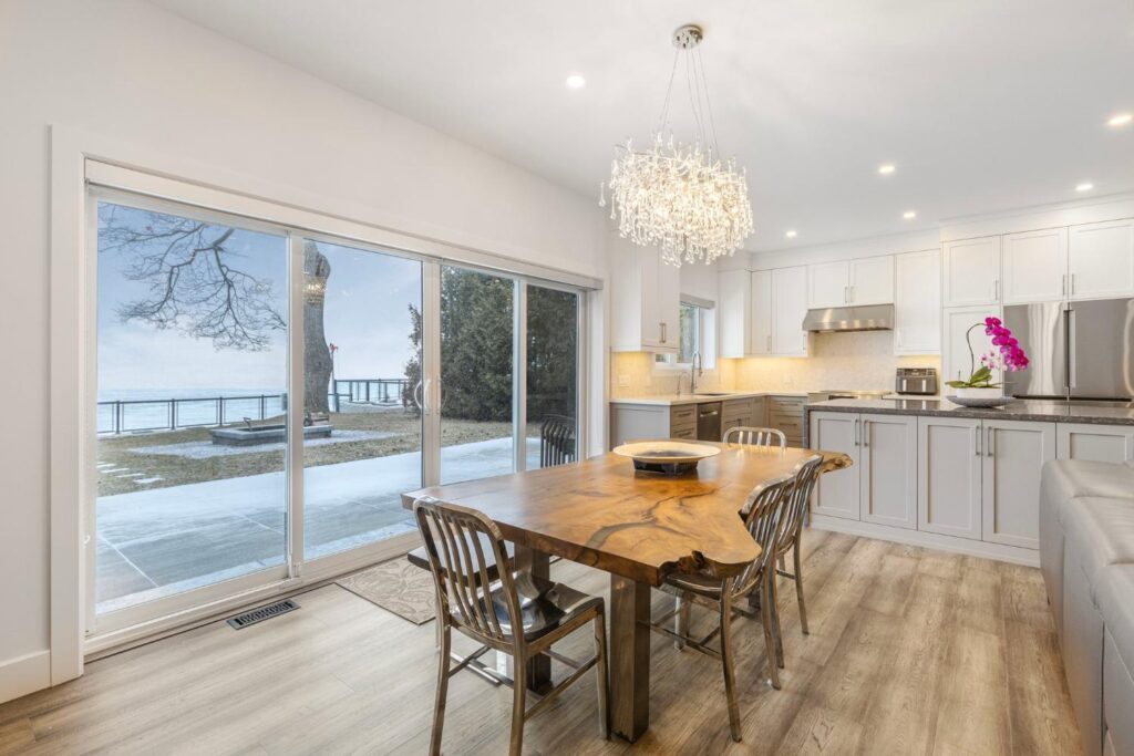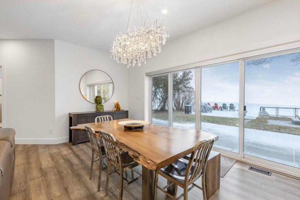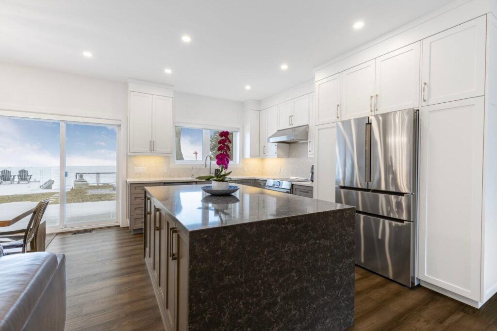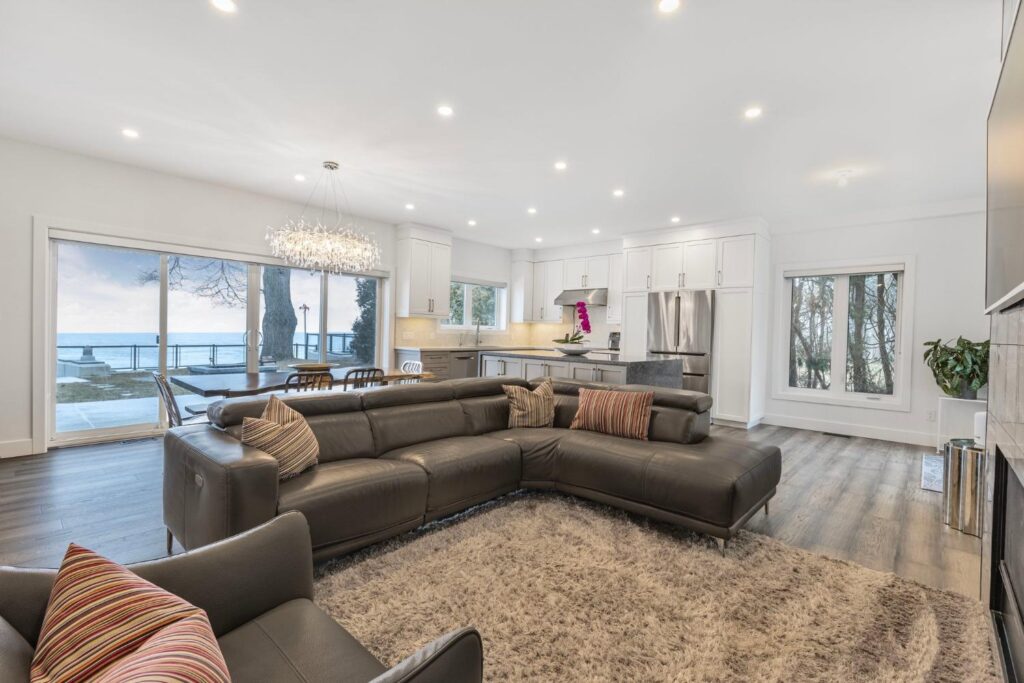 Experience the ultimate in lakeside luxury with our custom renovation of this once modest bungalow into a stunning two-story masterpiece. Our expert team has transformed this home into a modern retreat that seamlessly integrates with its natural surroundings.On the main floor, an open-concept living area offers breathtaking lake views through expansive windows. The gourmet kitchen features top-of-the-line appliances and stylish finishes, perfect for entertaining or quiet family meals.