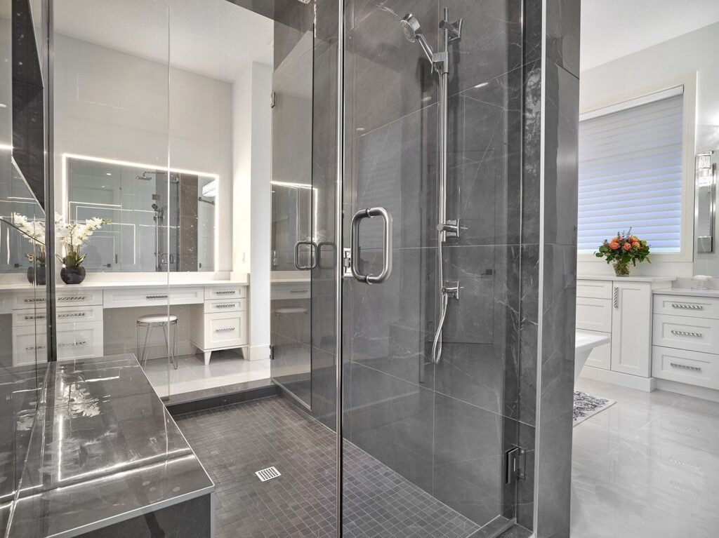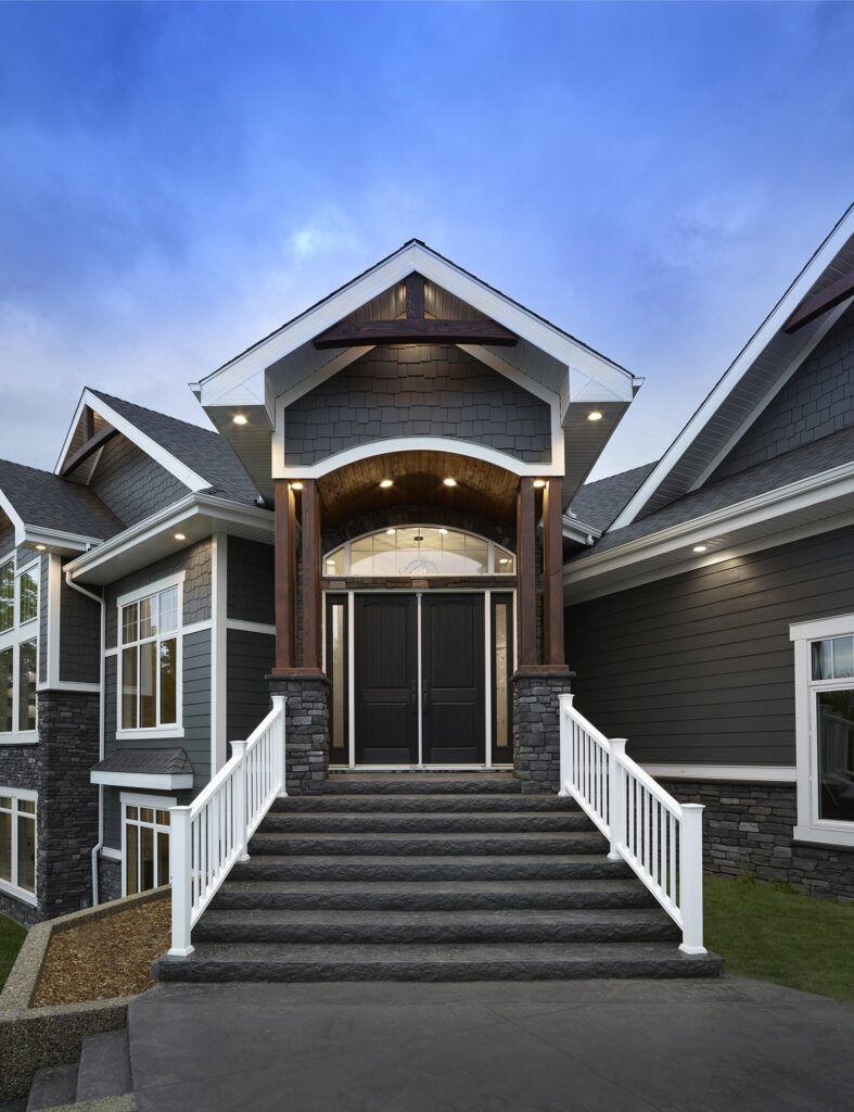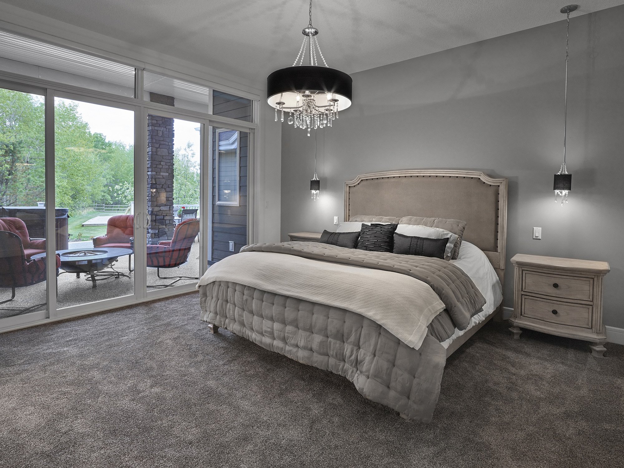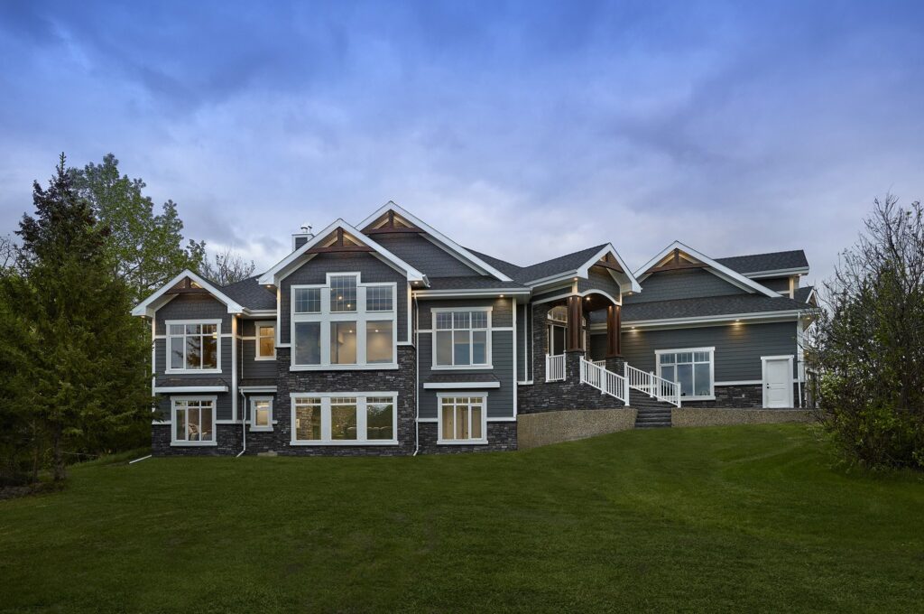 A “great room” was created on the main floor, creating a space big enough for the family to gather, and take full advantage of the beautiful scenery of the acreage. The extensive basement includes 2 spare bedrooms, as well as a full bar and exercise room, and theatre/gaming room. Ceiling heights were built to 10’ and 12’ feet inside the house, and the main floor is open to allow the natural light to flow through.