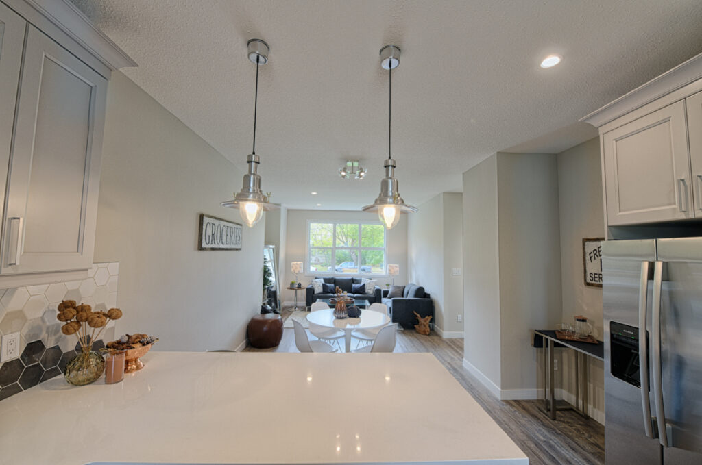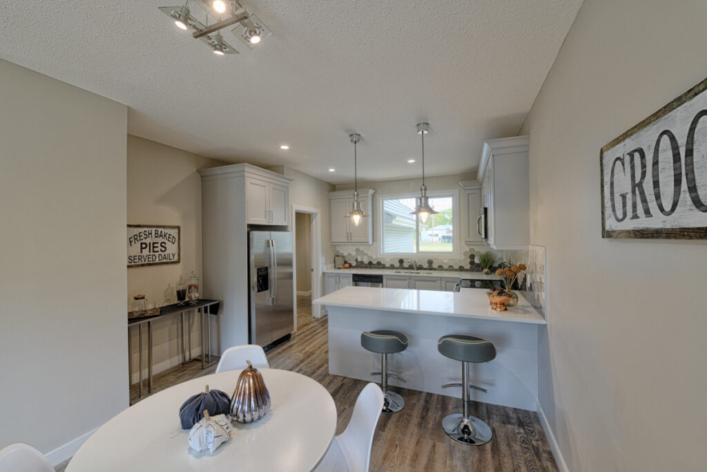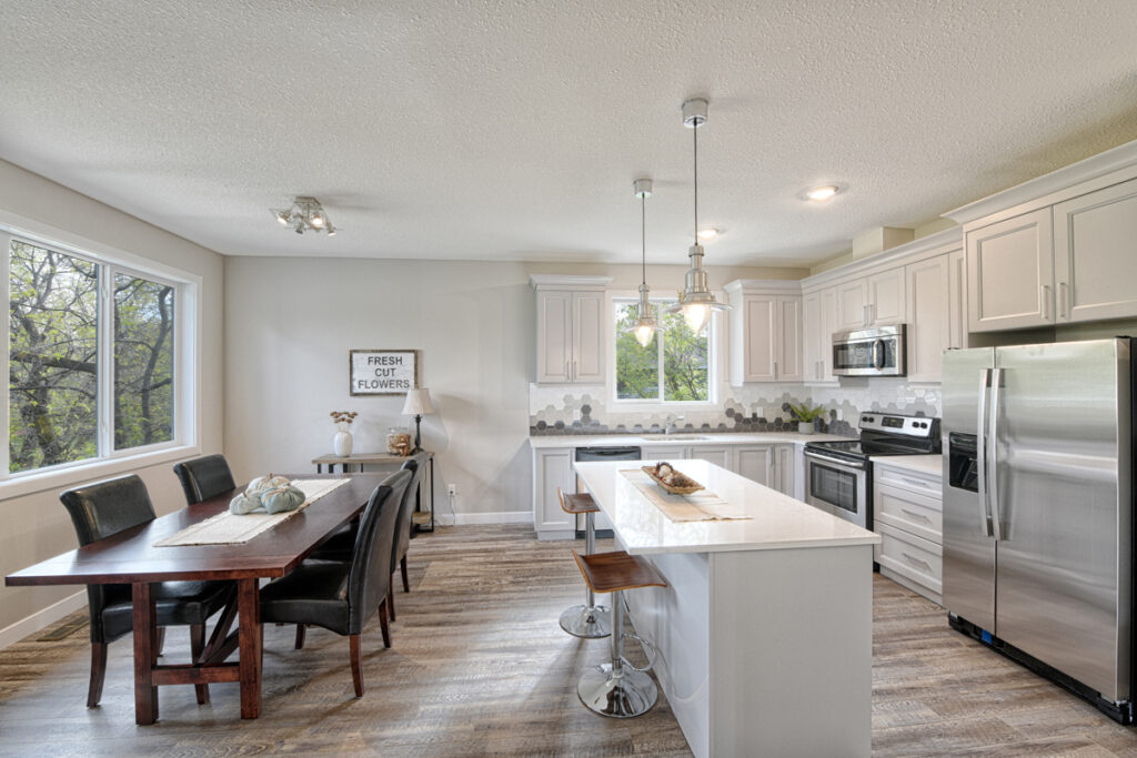 This family home features an open-concept layout, modern custom kitchen, and light wood floors throughout.
