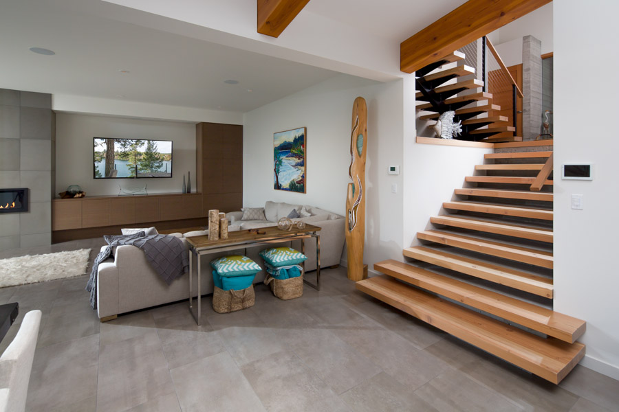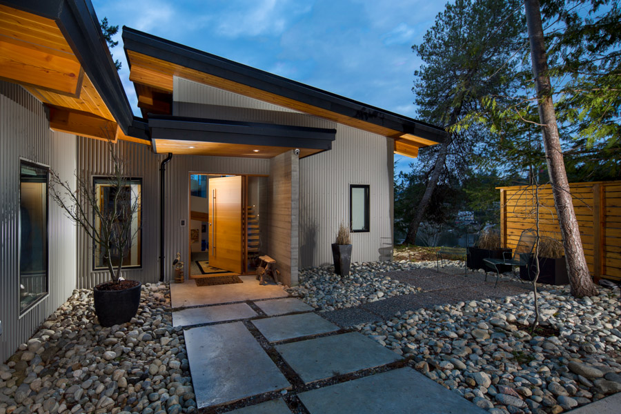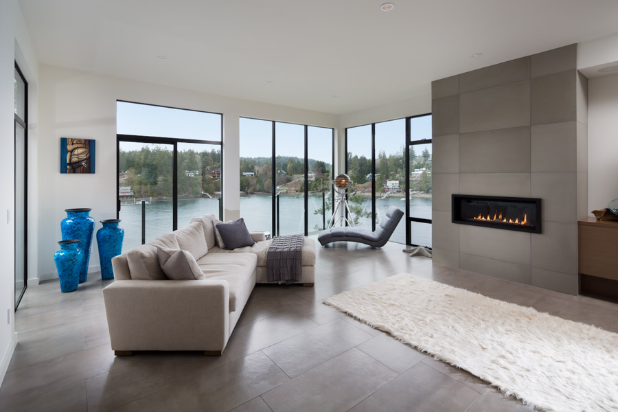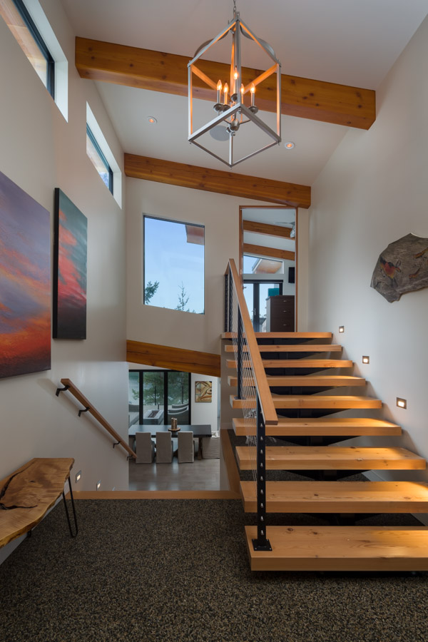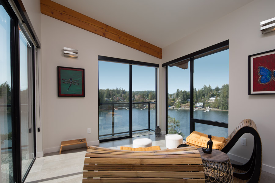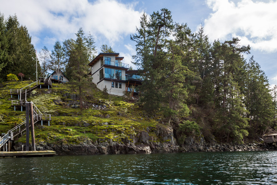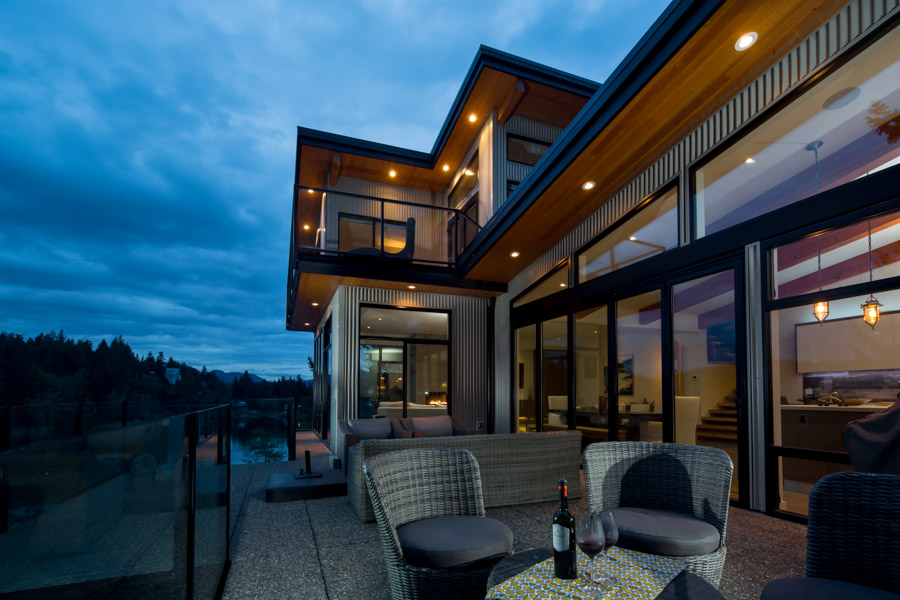 This Cliffside home is an open-concept contemporary design with many eco-friendly features. The entire home is completely automated and is equipped with geothermal radiant heat throughout. Nestled on a bedrock cliff in a quiet ocean bay this is a low maintenance home that is finished with metal siding and roofing.