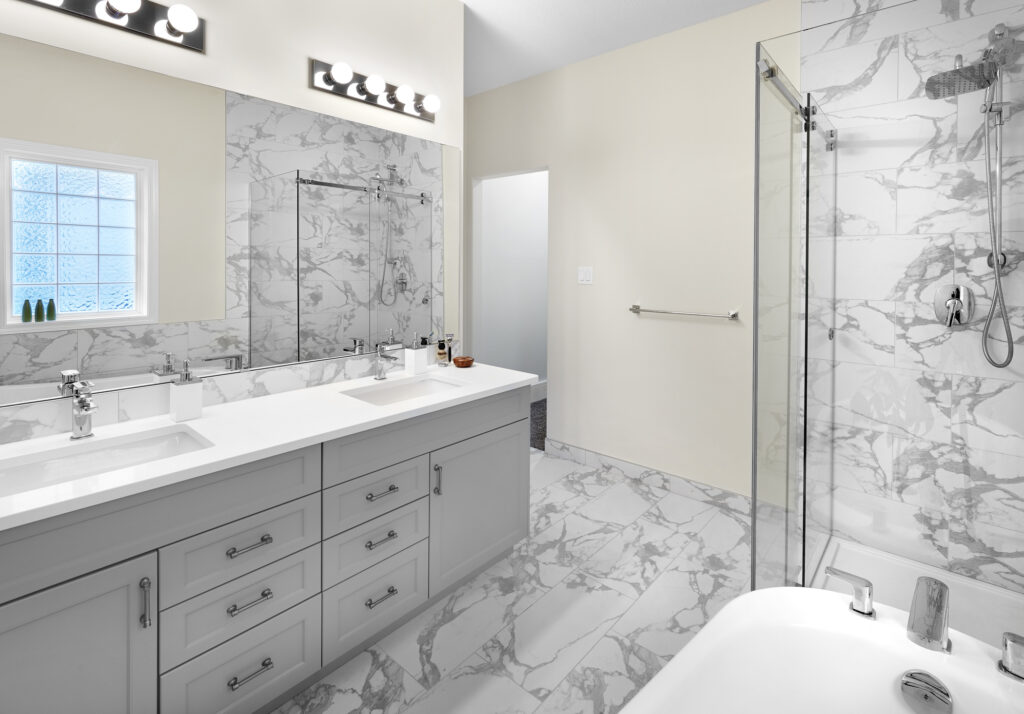 This home was completely renovated to give the clients a modern and open-concept home. The main living area features vaulted ceilings, dark hardwood floors, and a beautiful master suite.