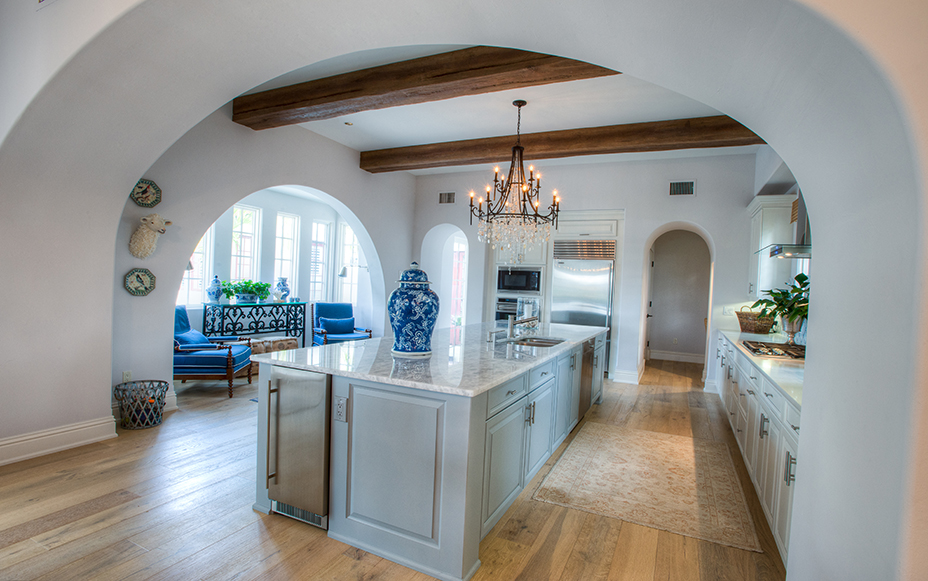 A major remodel of this beach style home. This space has an airy, open layout and a completely updated kitchen, living room, and outdoor patio.
