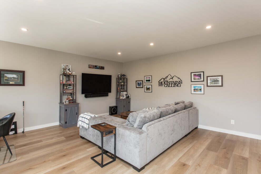 The renovation also included a newly added laundry room, a fully redesigned ensuite, and an expanded walk-in closet. Space was strategically reallocated from the garage to create a practical, everyday boot room. Lighting was upgraded throughout, cosmetic improvements were made across the home, and the basement received a full refresh to bring cohesion to every level.