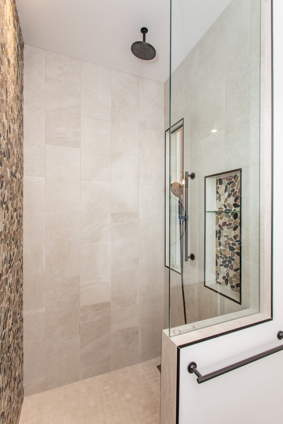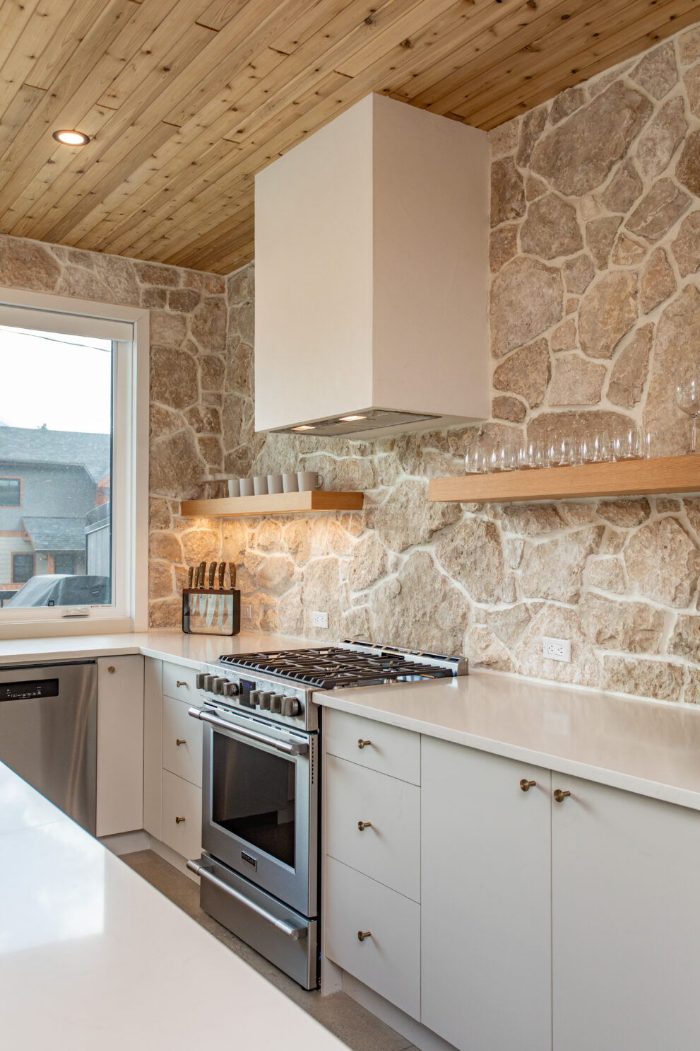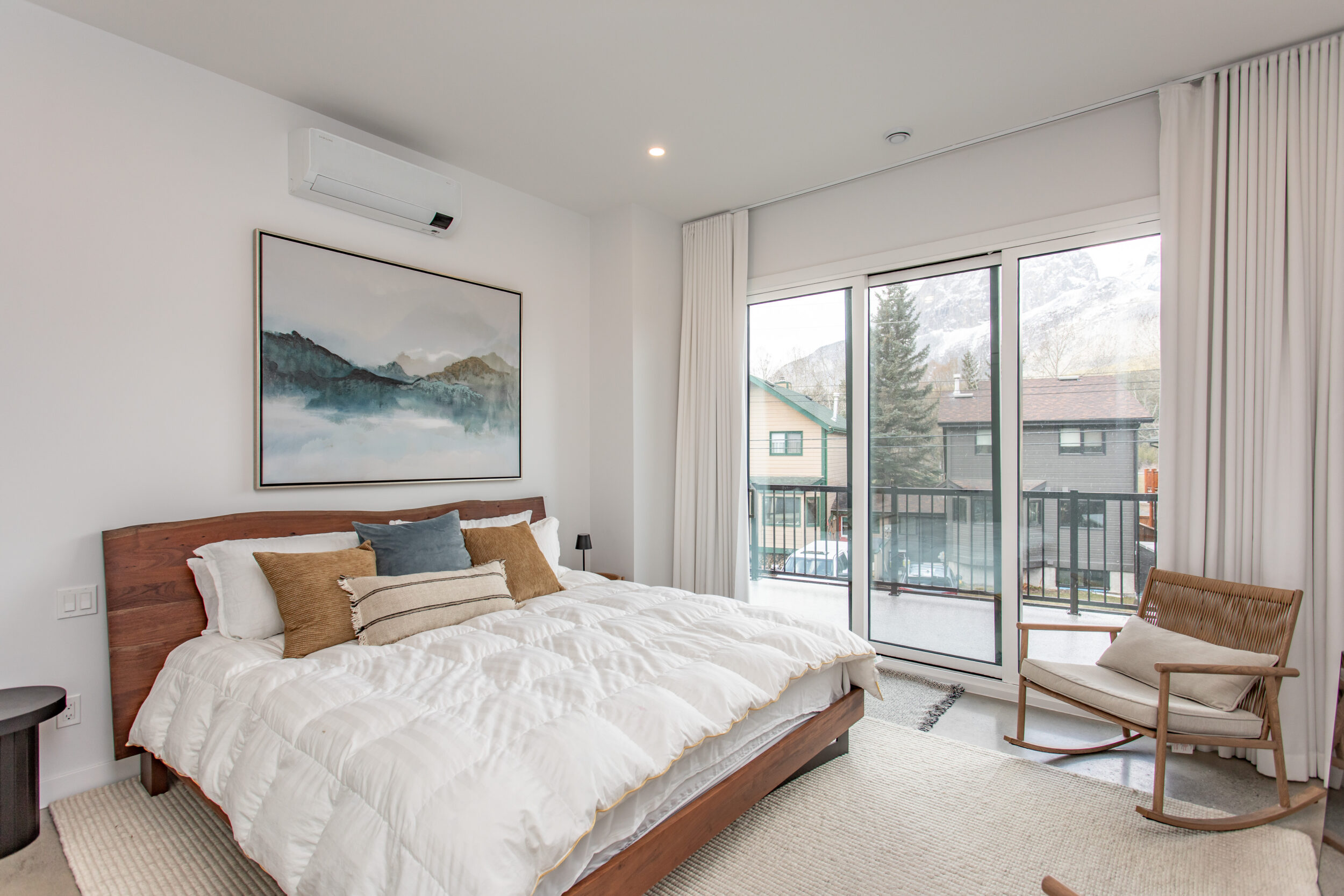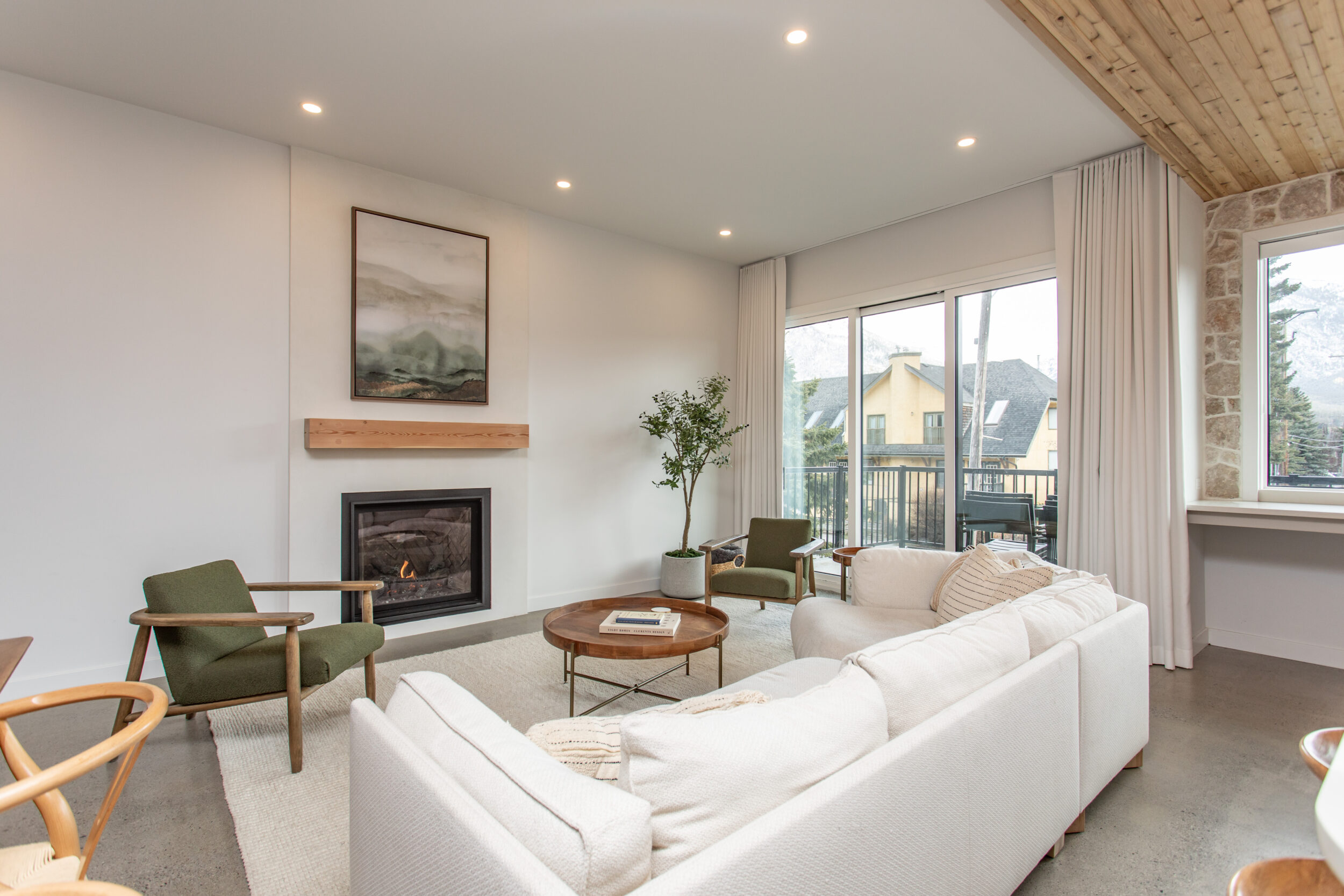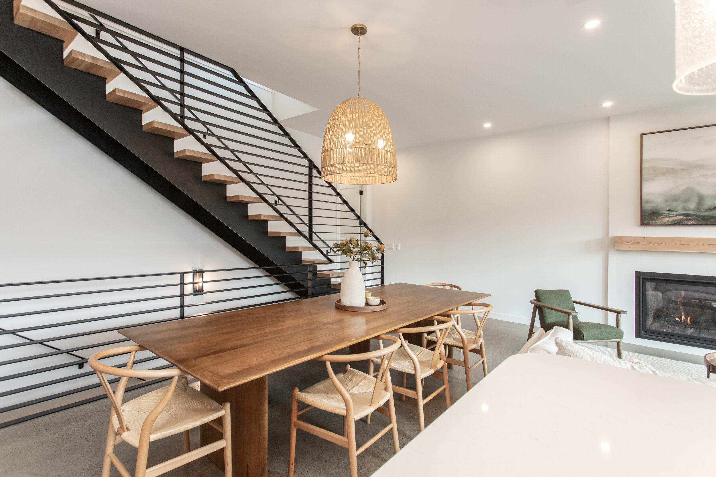 Natural stone and timber elements define both the interior and exterior, creating warmth and architectural continuity rooted in the mountain setting. A feature staircase with open risers and custom-fabricated metal stringers anchors each home, adding a bold yet refined design statement.