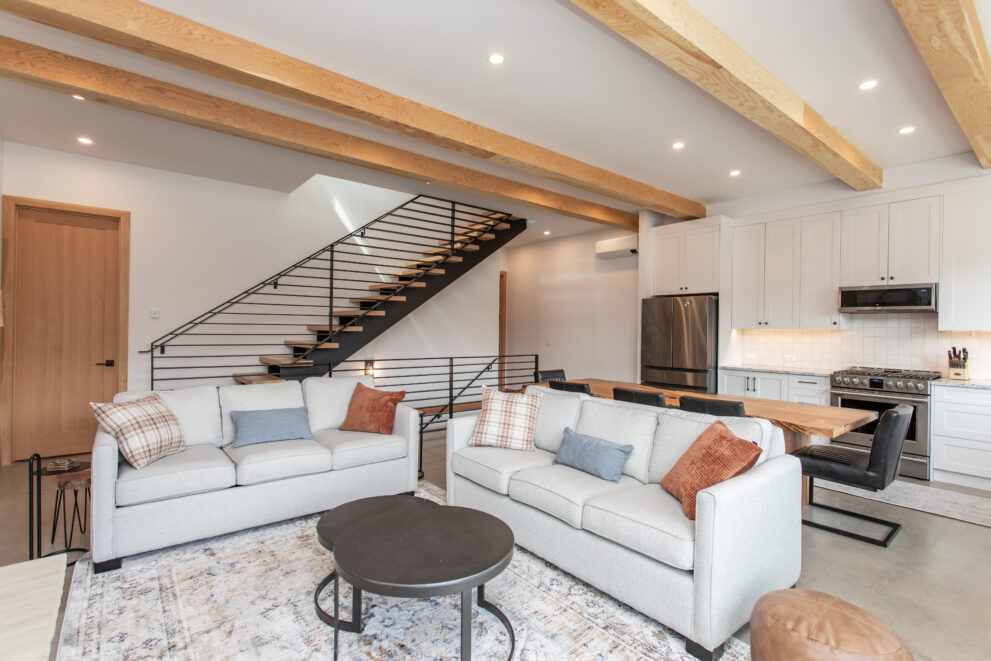 While the overall structure maintains cohesive architecture, each side was finished with unique, client-specific selections to reflect individual style and lifestyle needs. Lower-level suites were incorporated to provide additional income opportunities and contribute to Canmore’s growing rental demand.