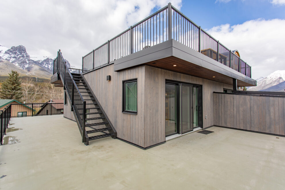 Located in the heart of Canmore, this custom-built duplex was designed to blend elevated mountain living with long-term functionality and income potential. Each side features a spacious four-bedroom main residence, a shared rooftop patio with expansive views, and large windows strategically positioned to capture natural light and the surrounding Bow Valley landscape.