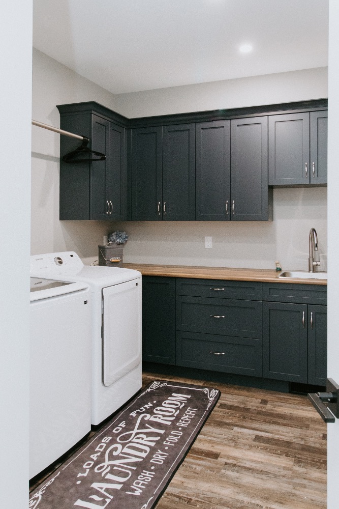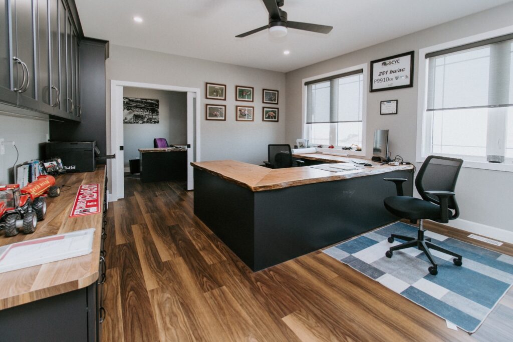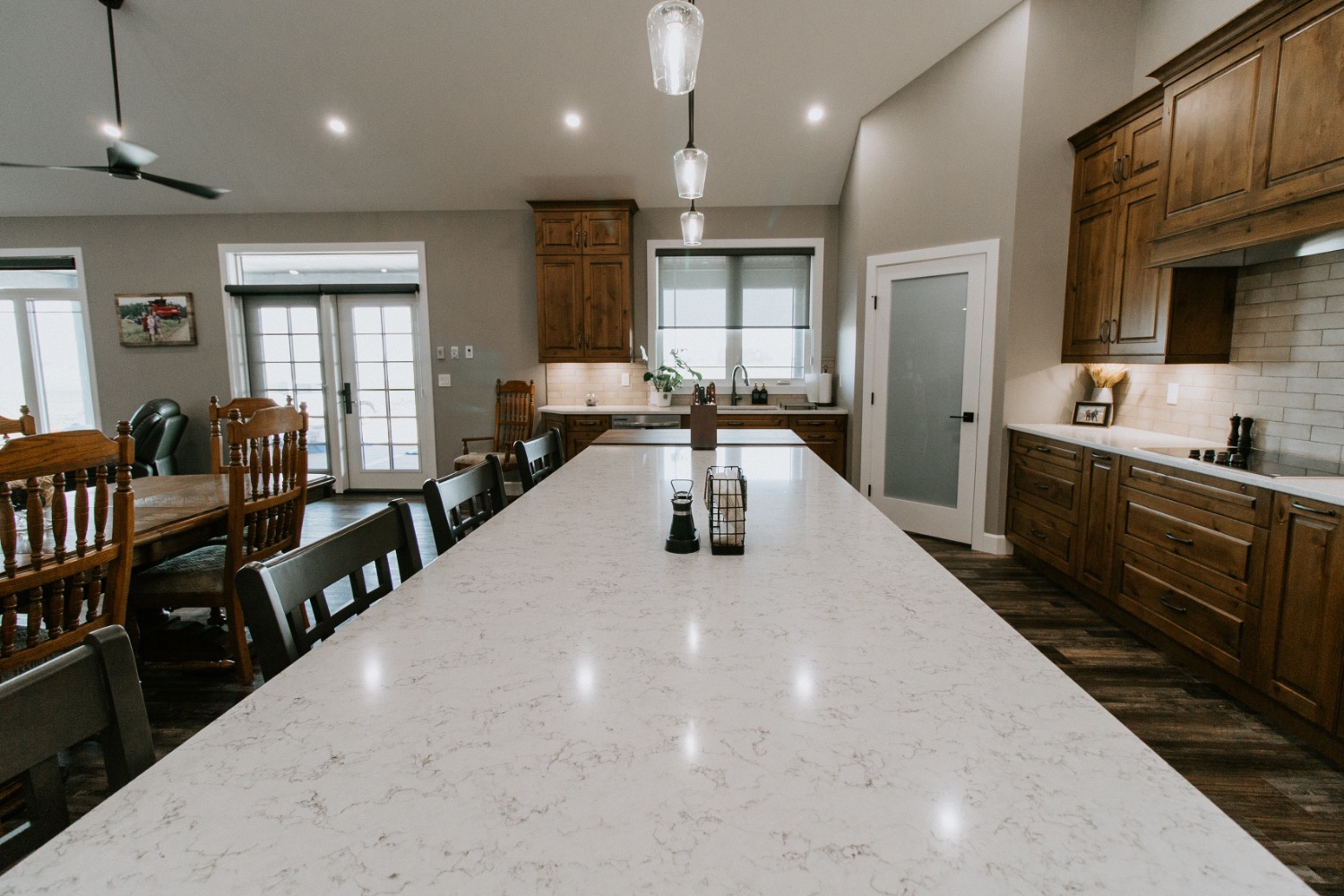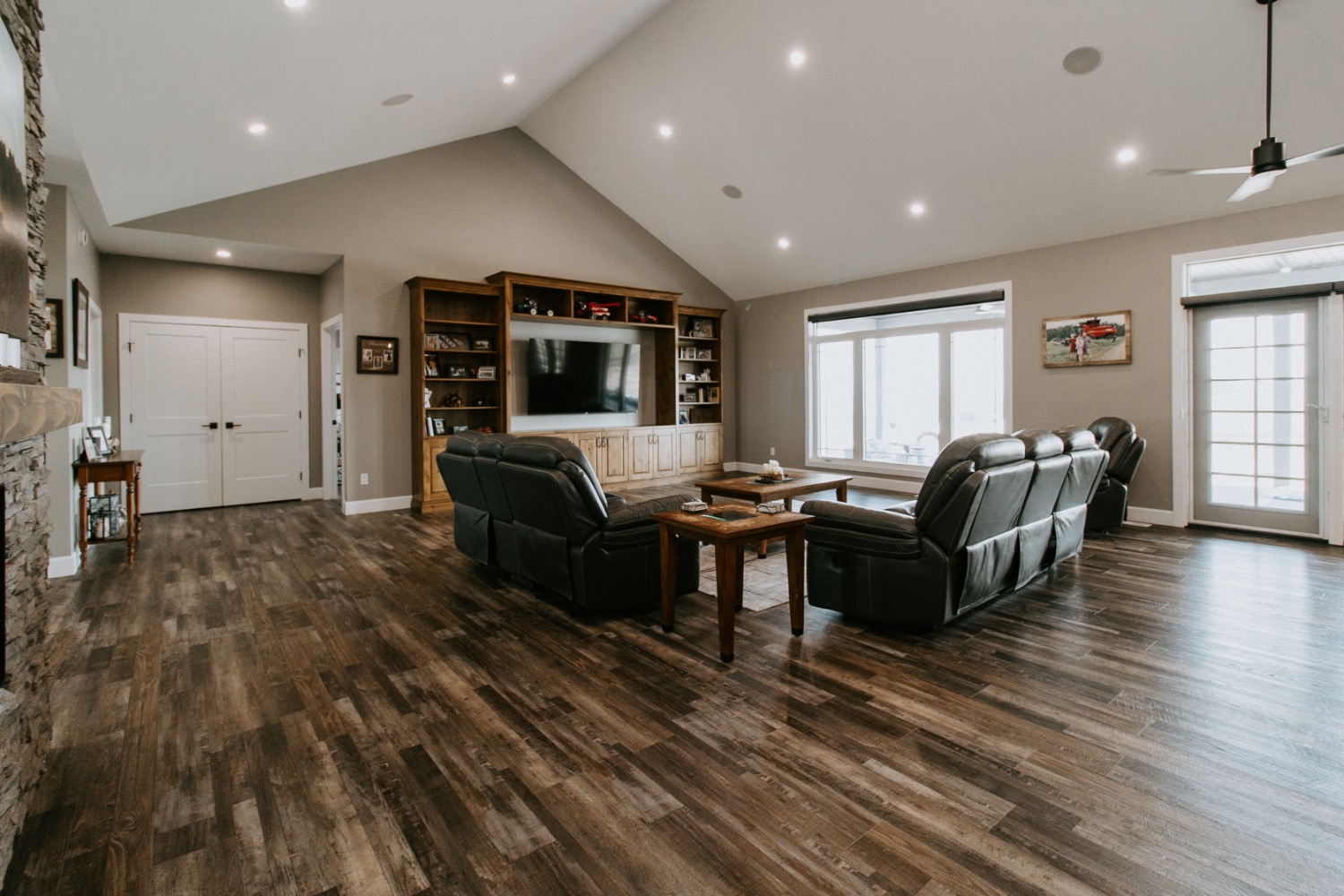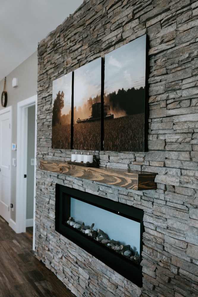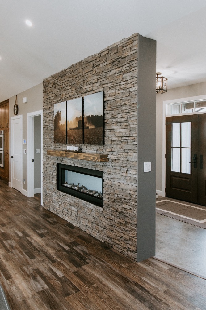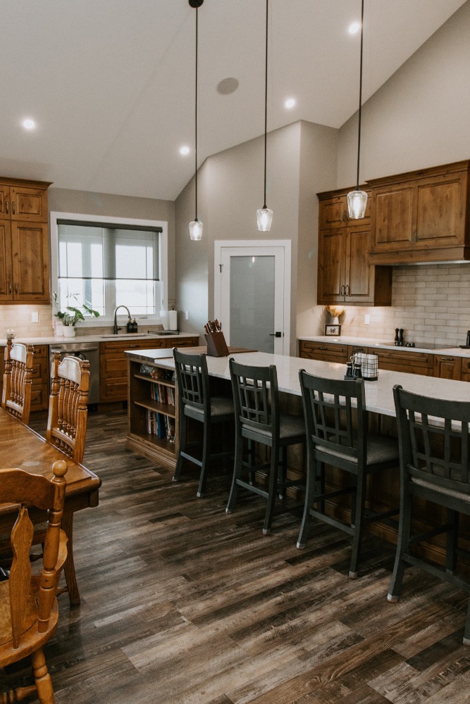 A client is building this stunning custom home on their family farmland. This spacious 3,700 sq. ft. bungalow includes a fully finished basement and an attached three-car garage, offering plenty of room for family and guests.