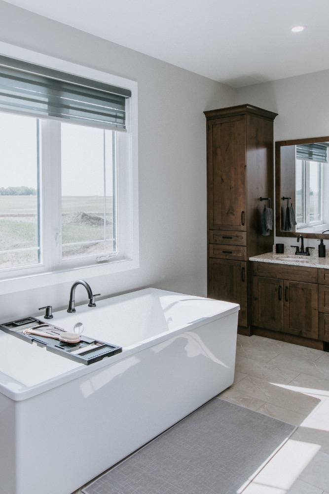 The kitchen showcases an oversized island perfect for gathering and everyday living. In the ensuite, a luxurious soaker tub and a spacious tiled shower create a private retreat.