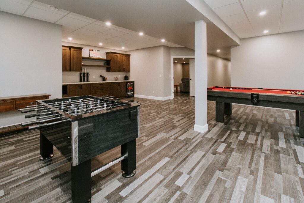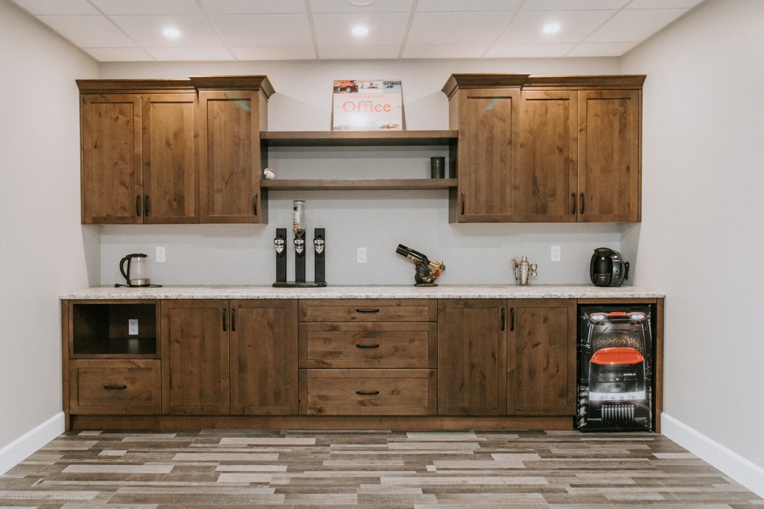Inside, the design features large open spaces filled with natural light from expansive windows, a beautiful feature fireplace, and a warm farmhouse style throughout. The main floor includes a spacious office, while the basement is designed for entertaining, complete with a game area, bar, and separate theatre room.