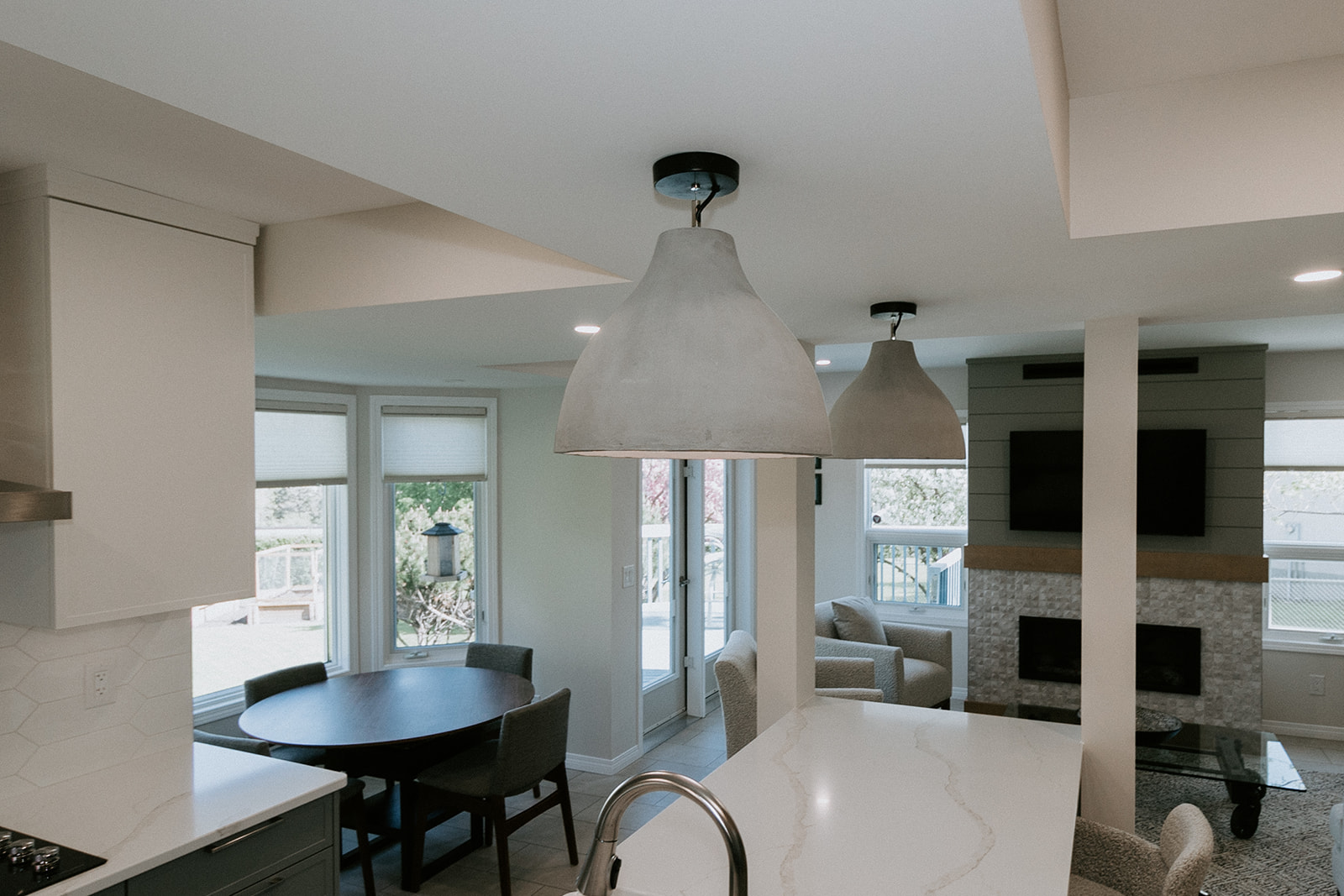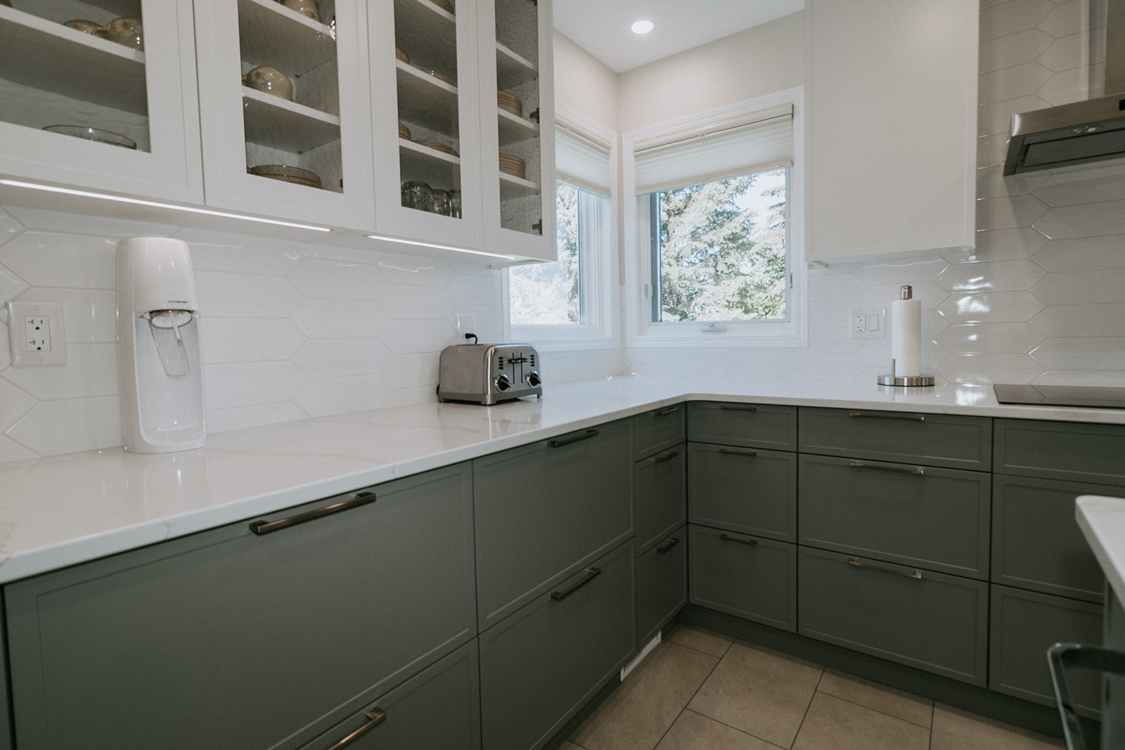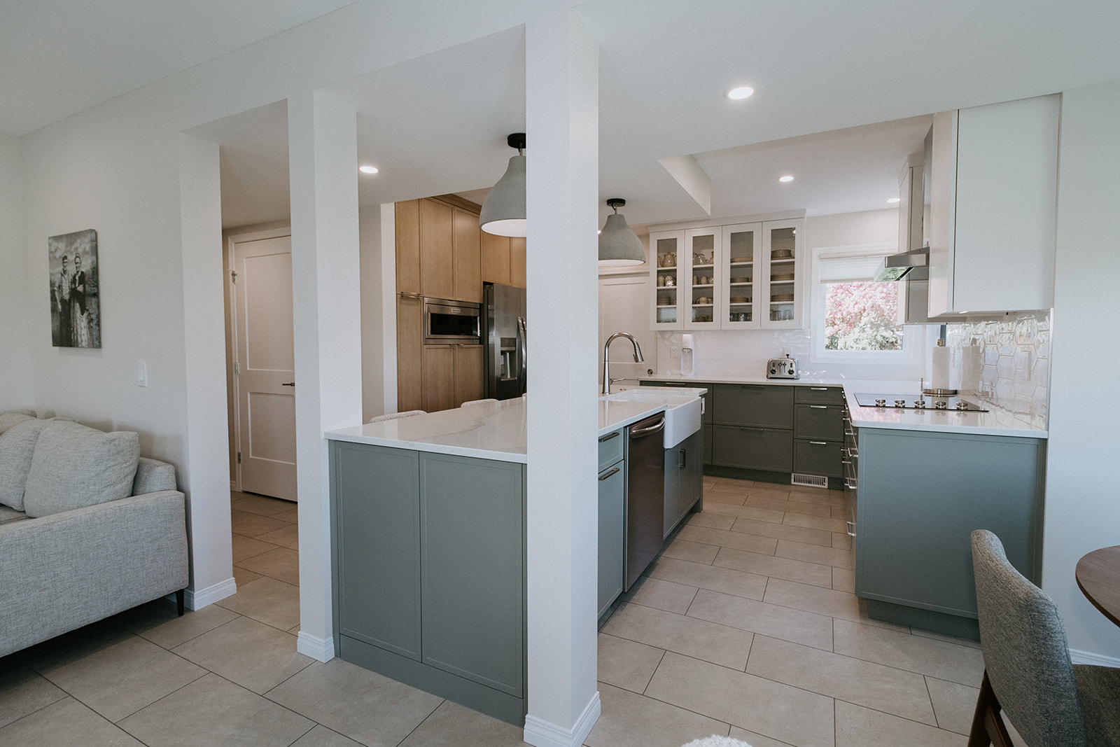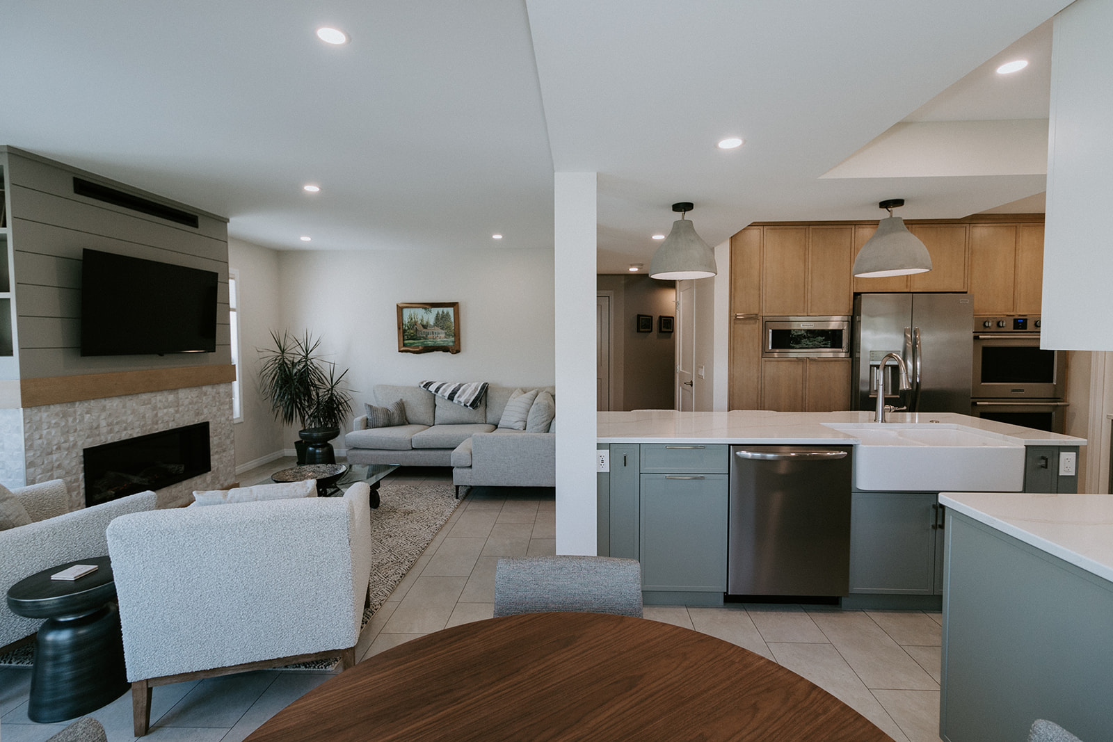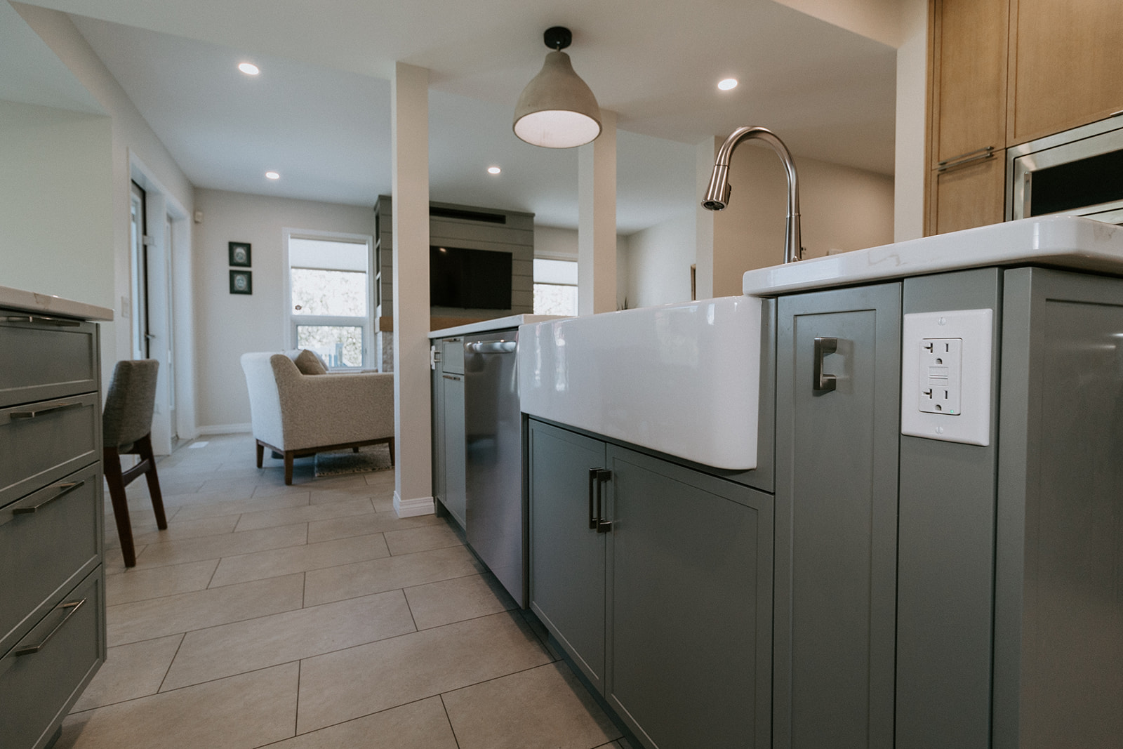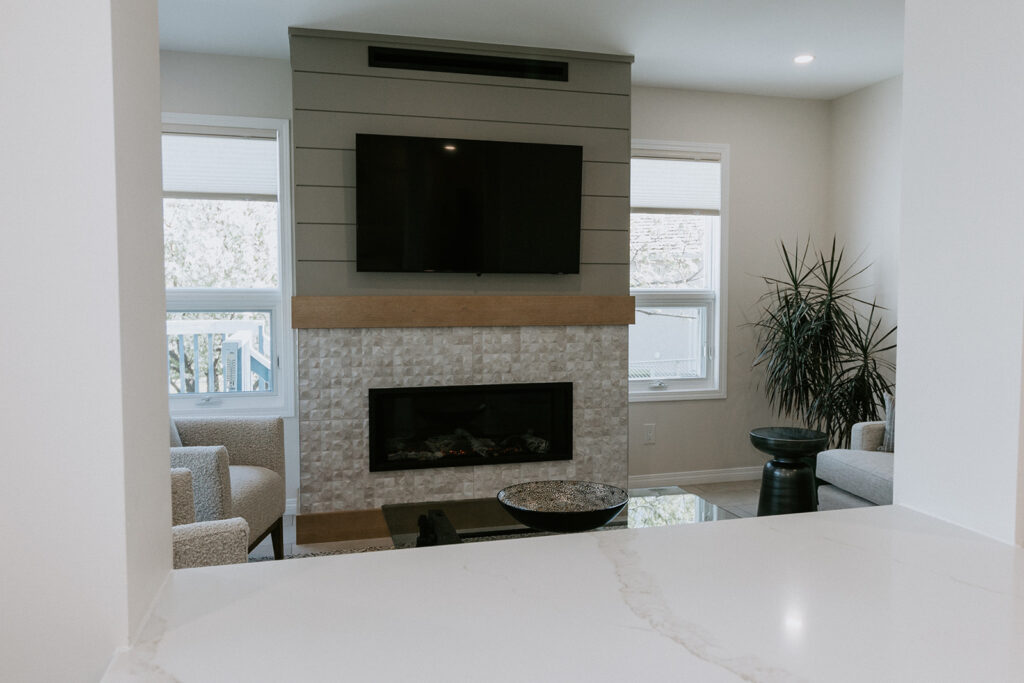 These clients began working with Urban Theory Design on their main floor renovation. Crispin, with Urban Theory contacted Alair Homes to join the team, and along with the clients, help brought the renovation plans to a reality. The clients had been dreaming of a new, more functional kitchen that flowed seamlessly into the adjoining living room with a warm and cozy feeling from a new gas fireplace. With many great trades and a flawless design plan, the renovation became a reality for these clients to enjoy for many years to come.