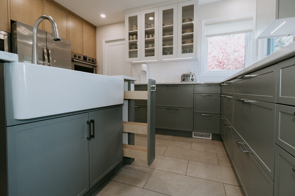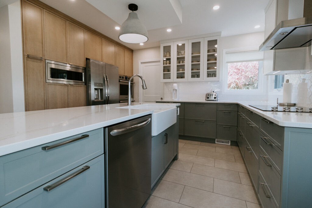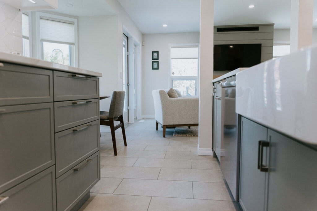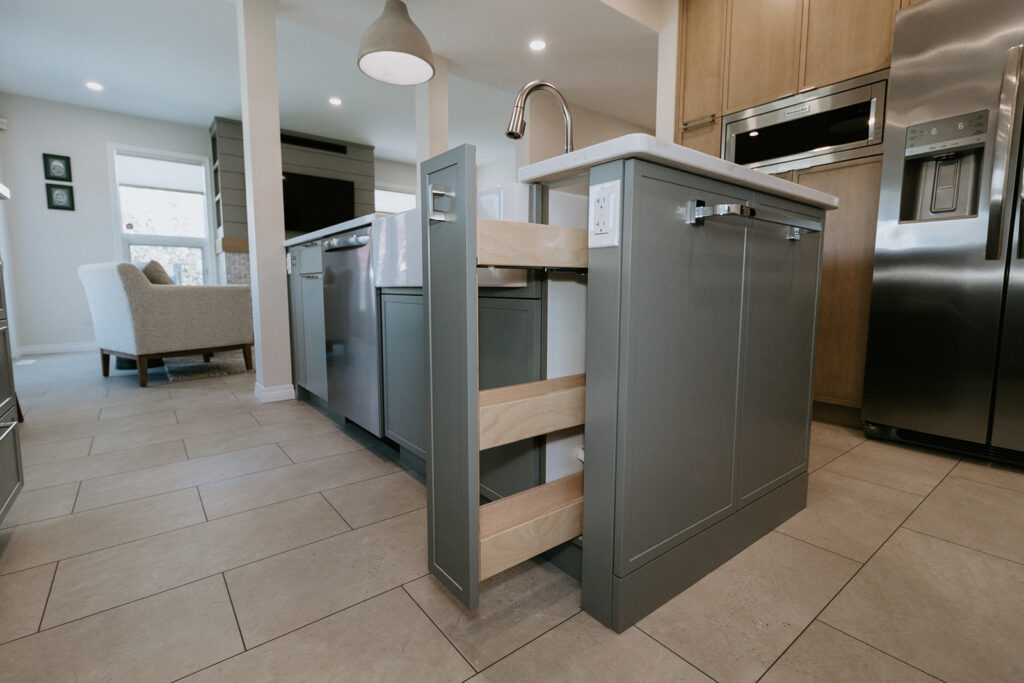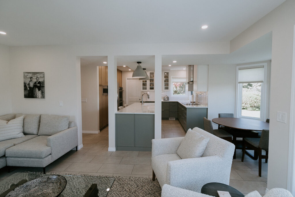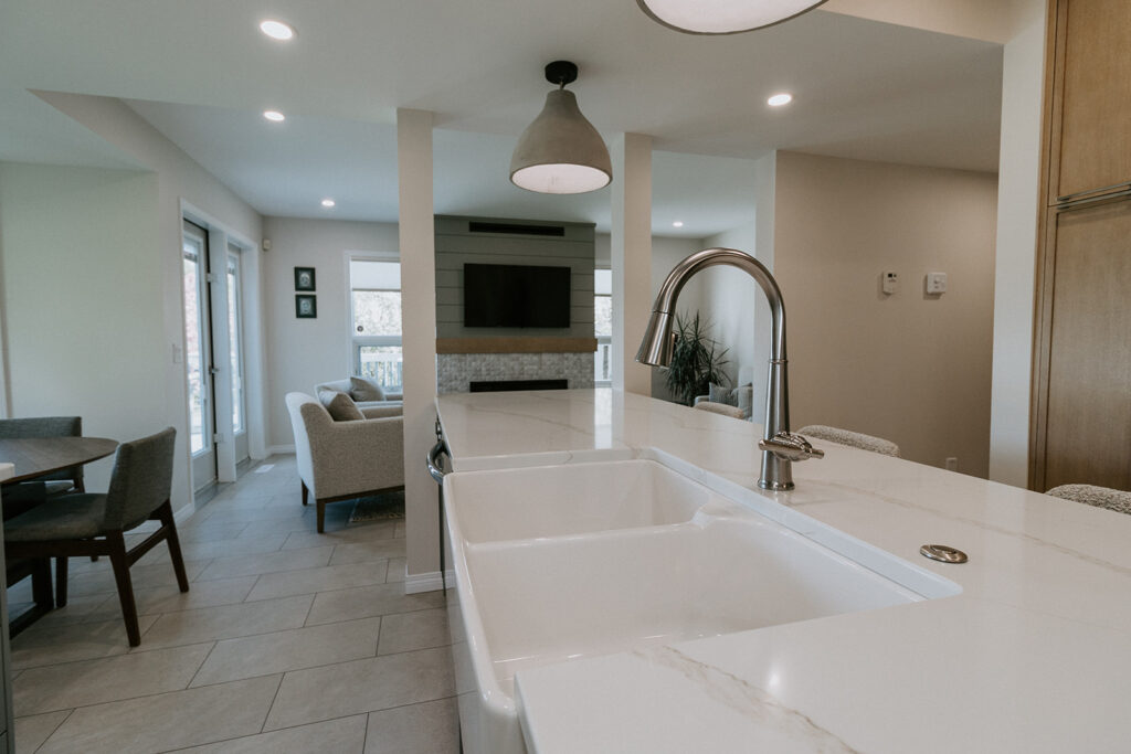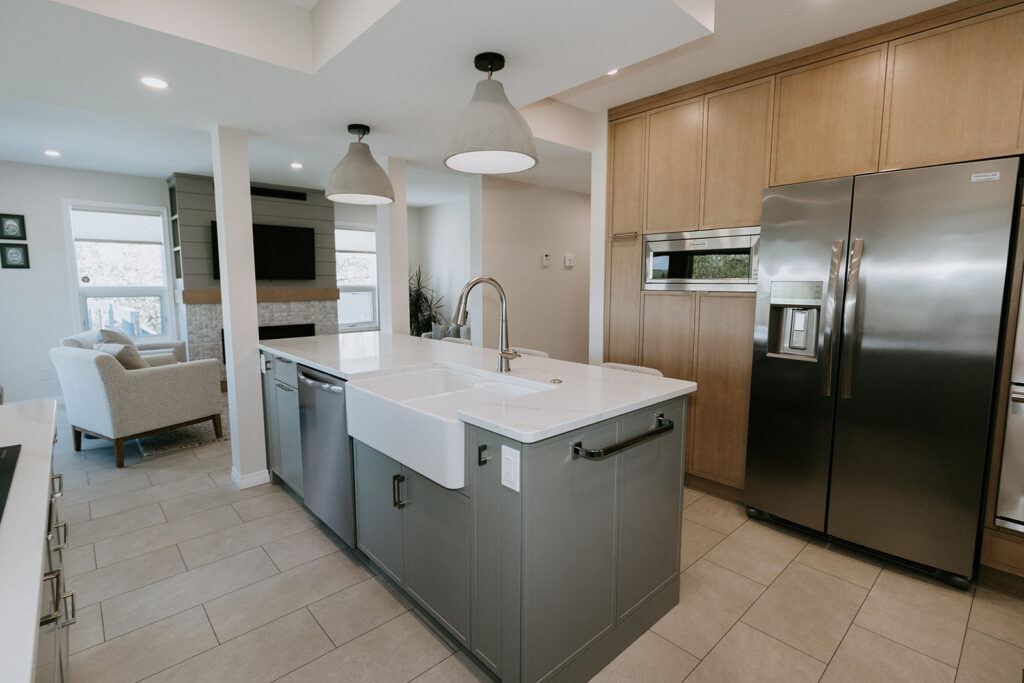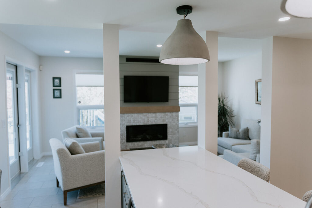 These clients began working with Urban Theory Design on their main floor renovation. Crispin, with Urban Theory contacted Alair Homes to join the team, and along with the clients, help brought the renovation plans to a reality. The clients had been dreaming of a new, more functional kitchen that flowed seamlessly into the adjoining living room with a warm and cozy feeling from a new gas fireplace. With many great trades and a flawless design plan, the renovation became a reality for these clients to enjoy for many years to come.
