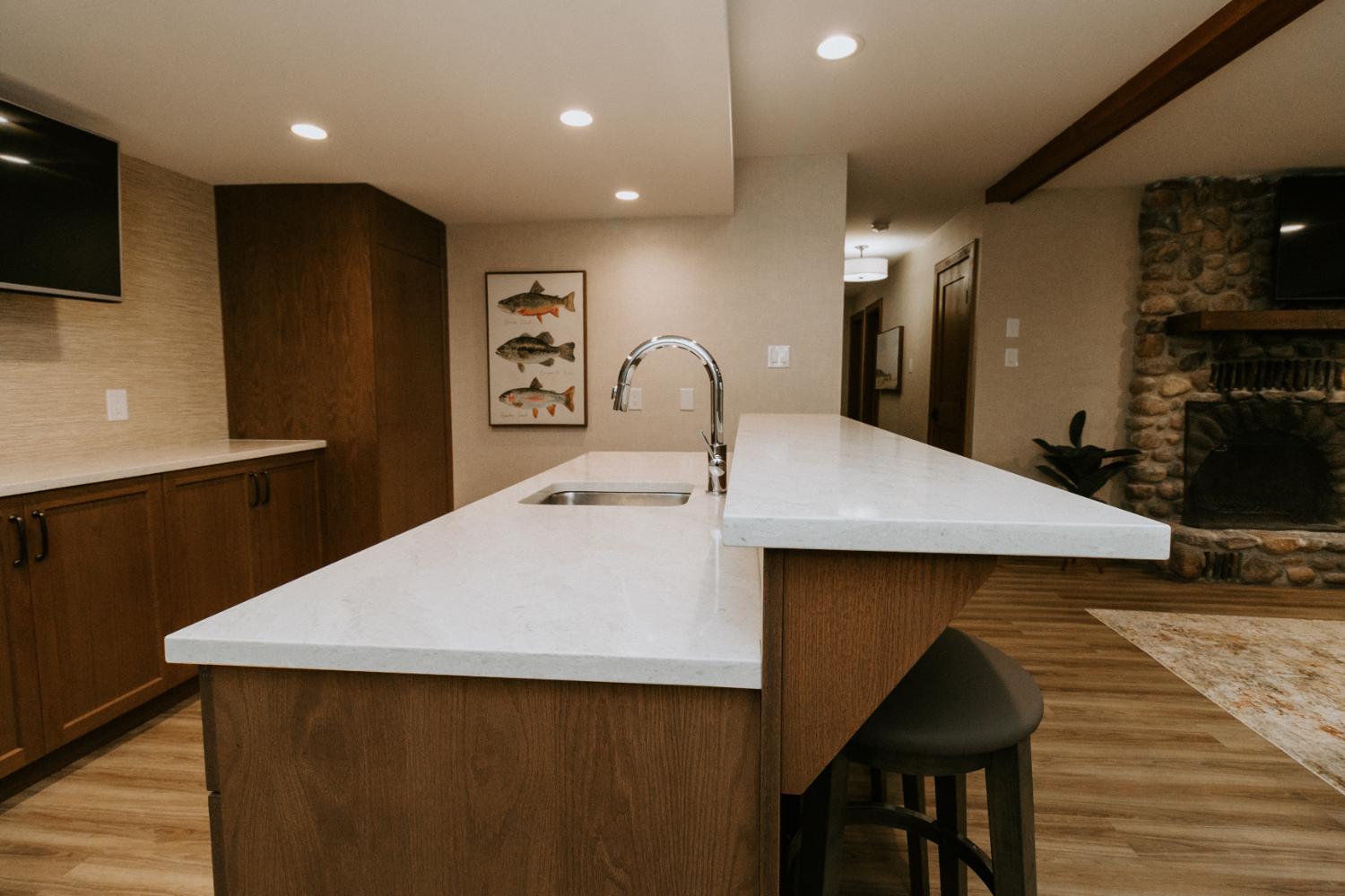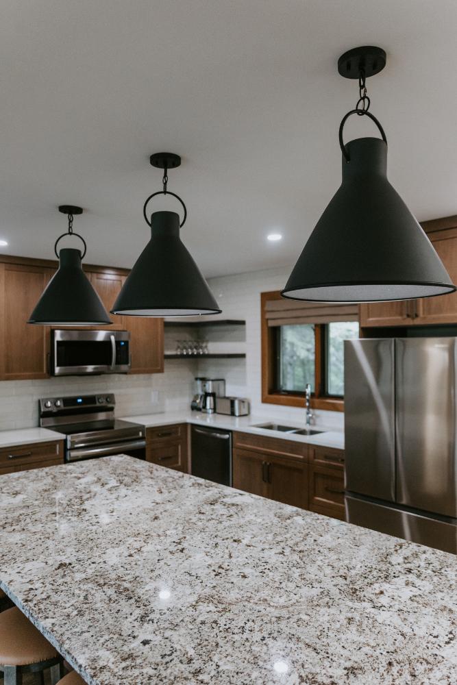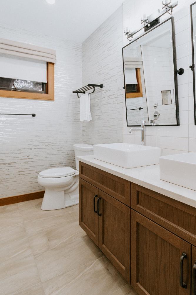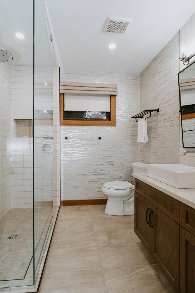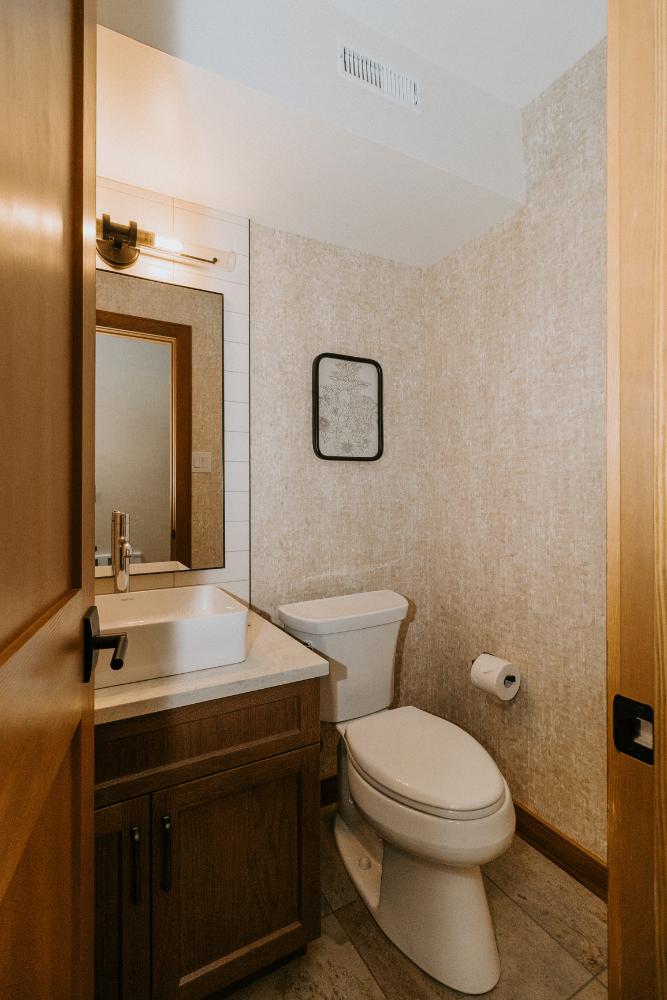 Our team embraced a rustic modern design style for this project, delivering a complete facelift of all interior spaces. The renovation included an updated kitchen, new flooring, refreshed wallpaper, modernized bathrooms, beautiful tile work, and fresh paint throughout.