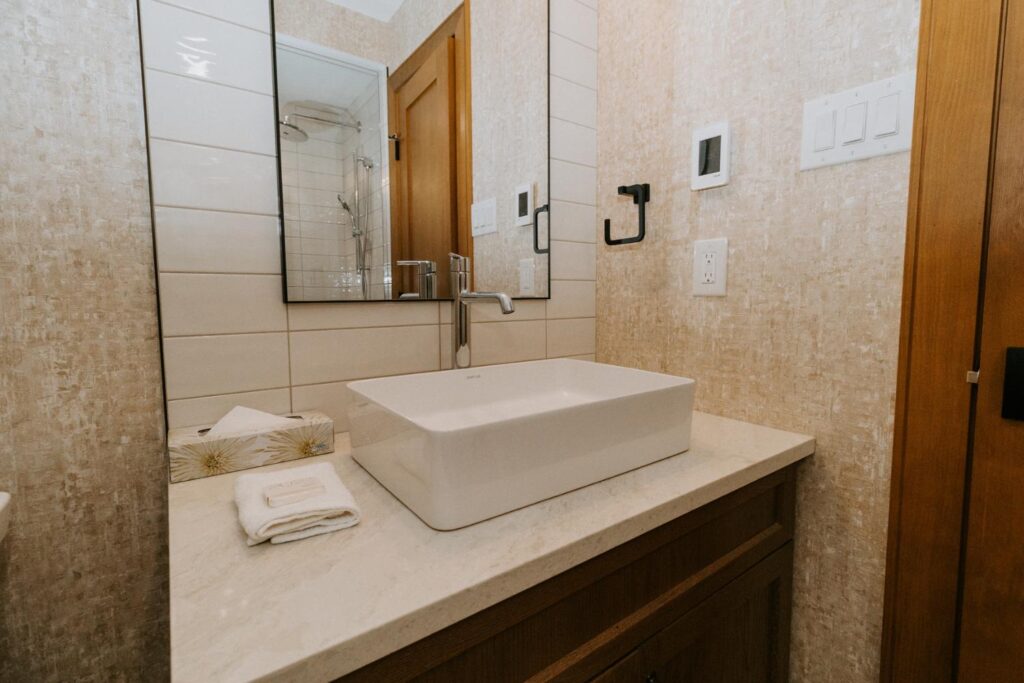 Additionally, we upgraded the plumbing, lighting, and accessories to ensure every aspect of the chalet met the highest standards of comfort and style.