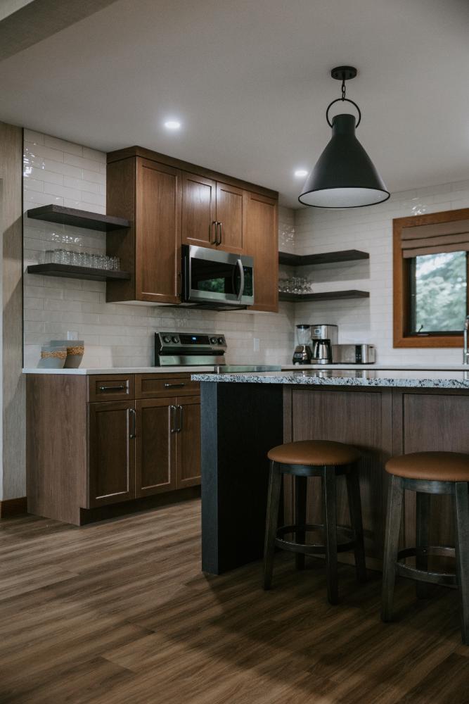 We at Alair Homes Brandon are excited to share the details of our recent renovation project at the Elkhorn Resort. The Executive Chalet, one of the many charming chalets available for visitors to rent, has undergone a stunning transformation.