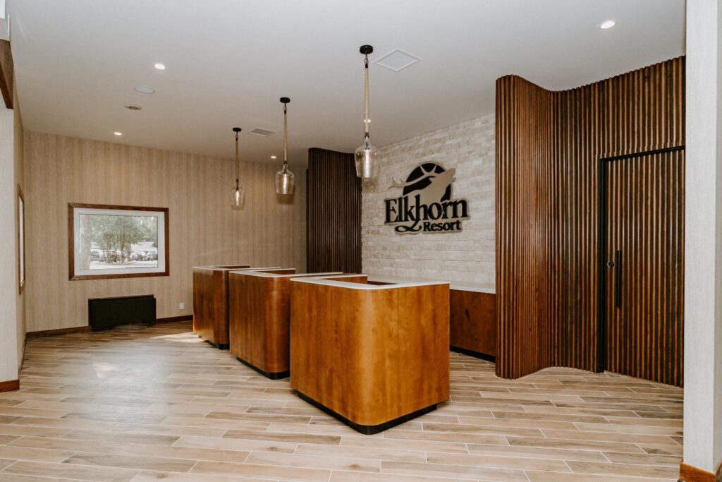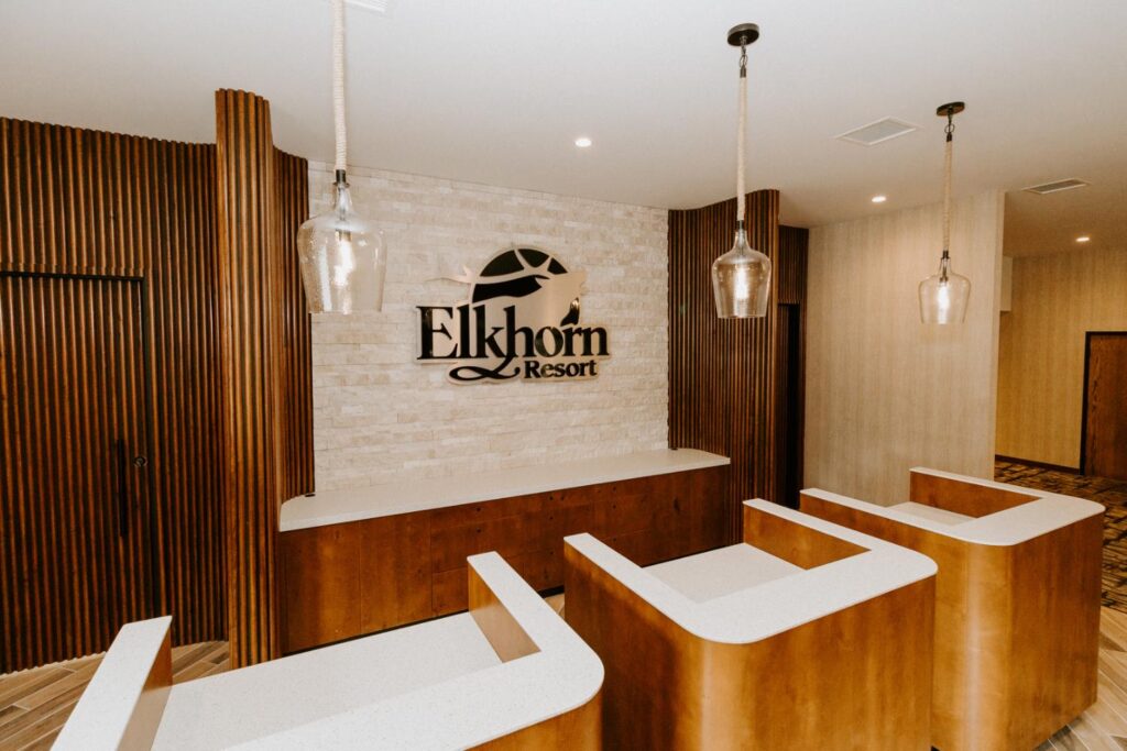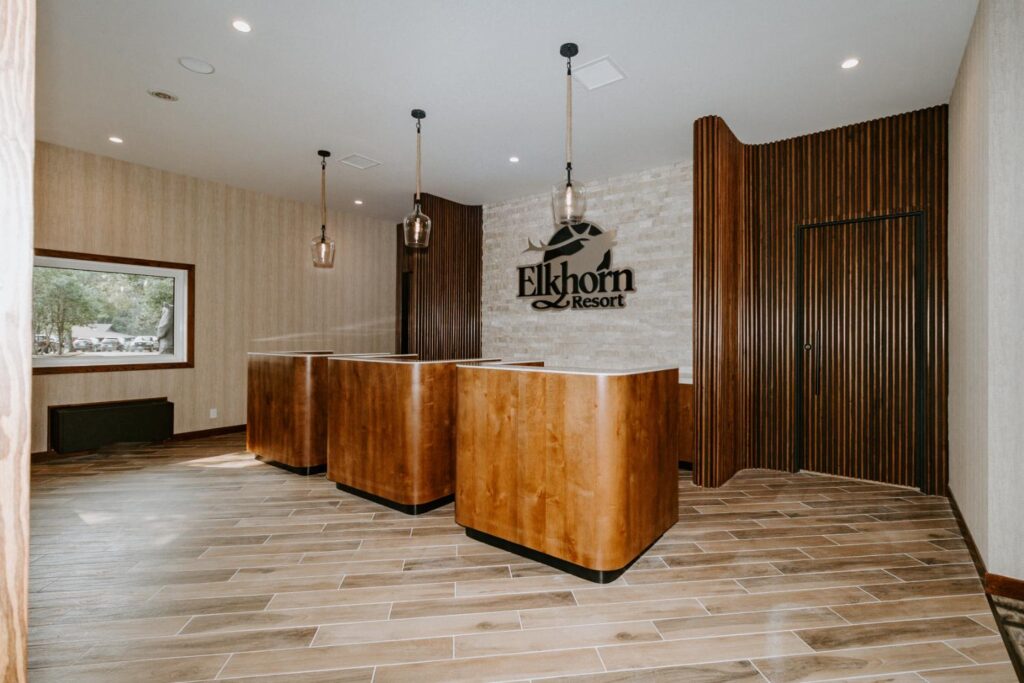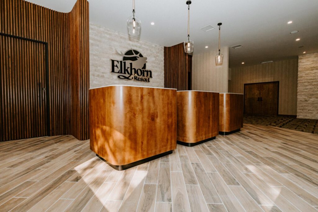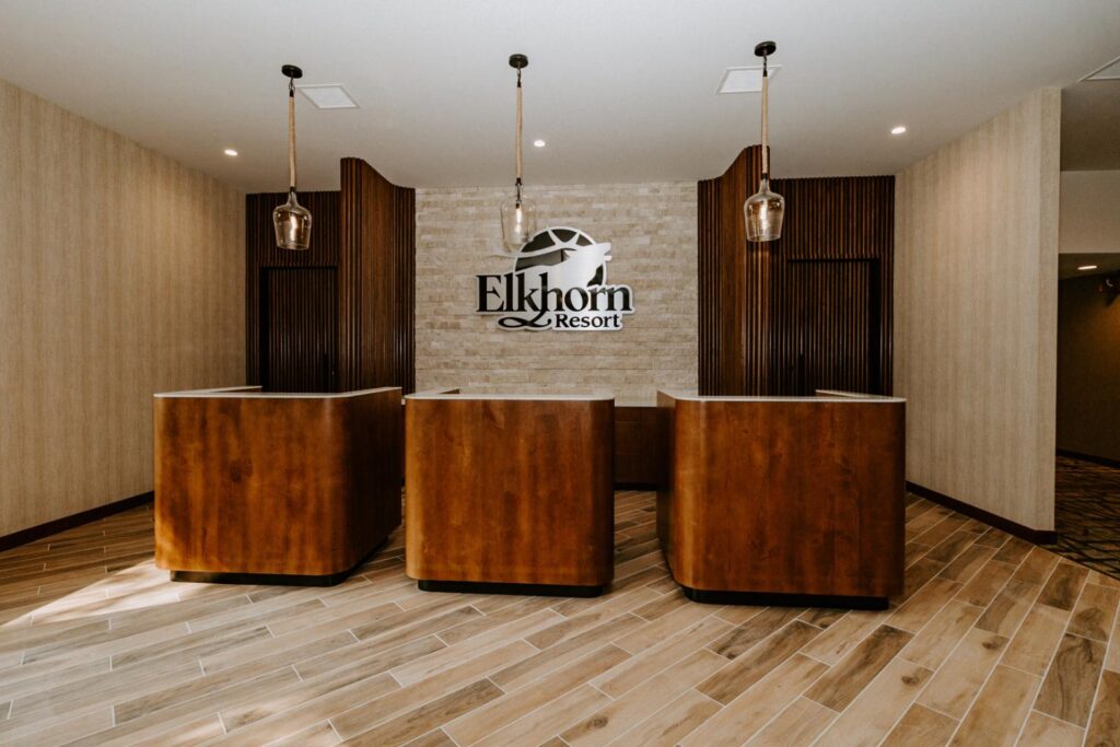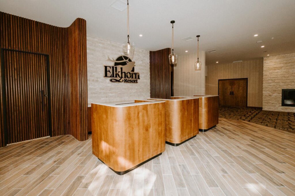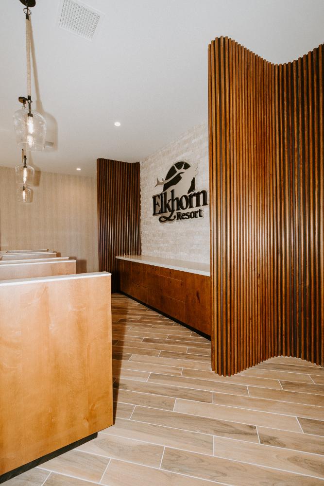Elkhorn Resort has undergone major renovations across the entire site over the past few years. The reception area felt dated and didn’t flow with the rest of the space. Our goal was to update this area to create a cohesive look that matched the entire resort.