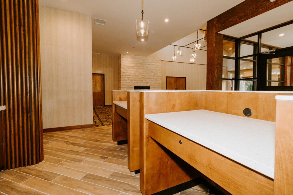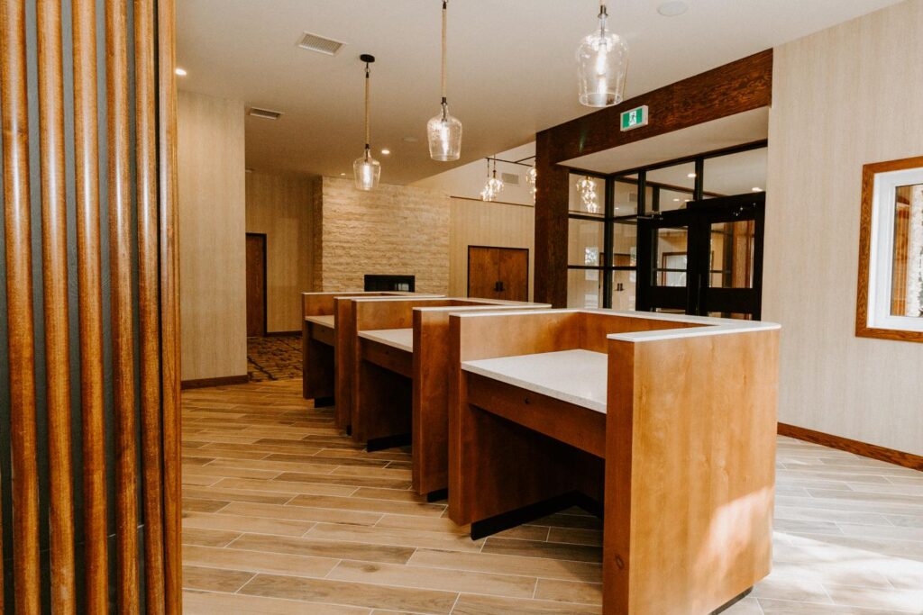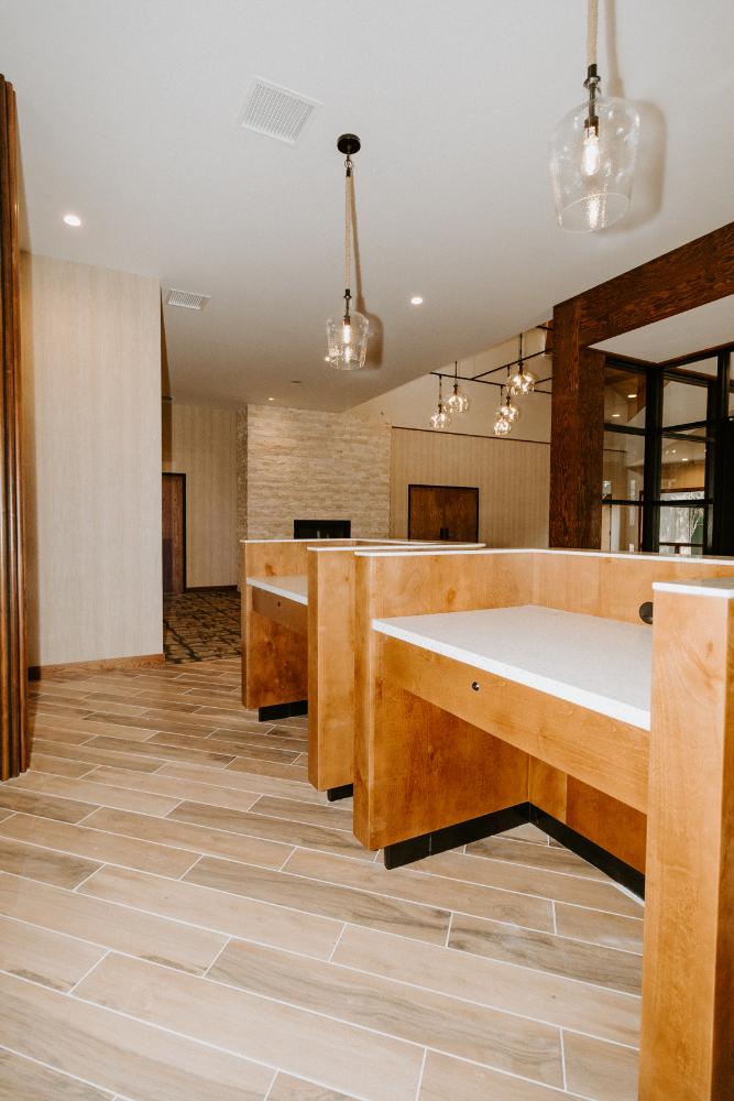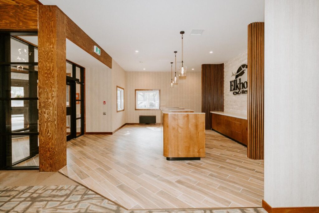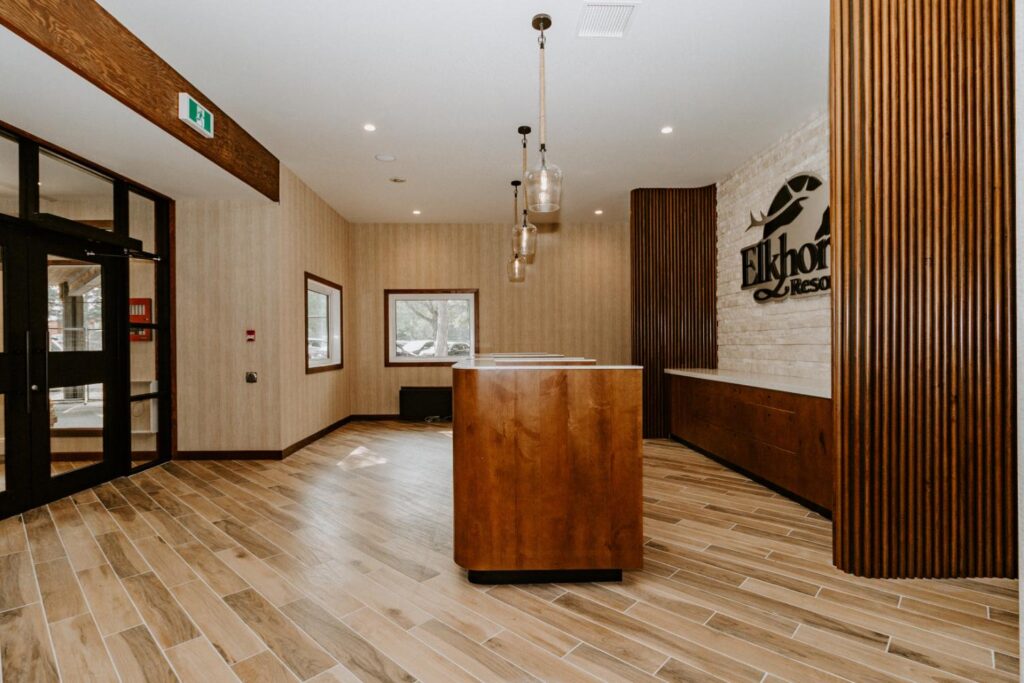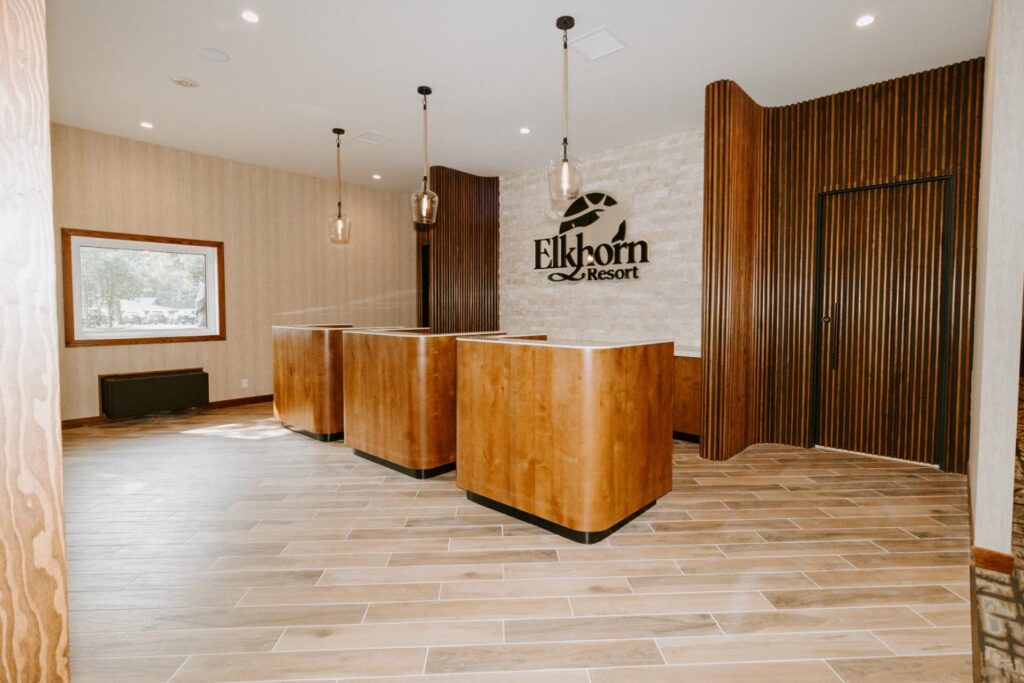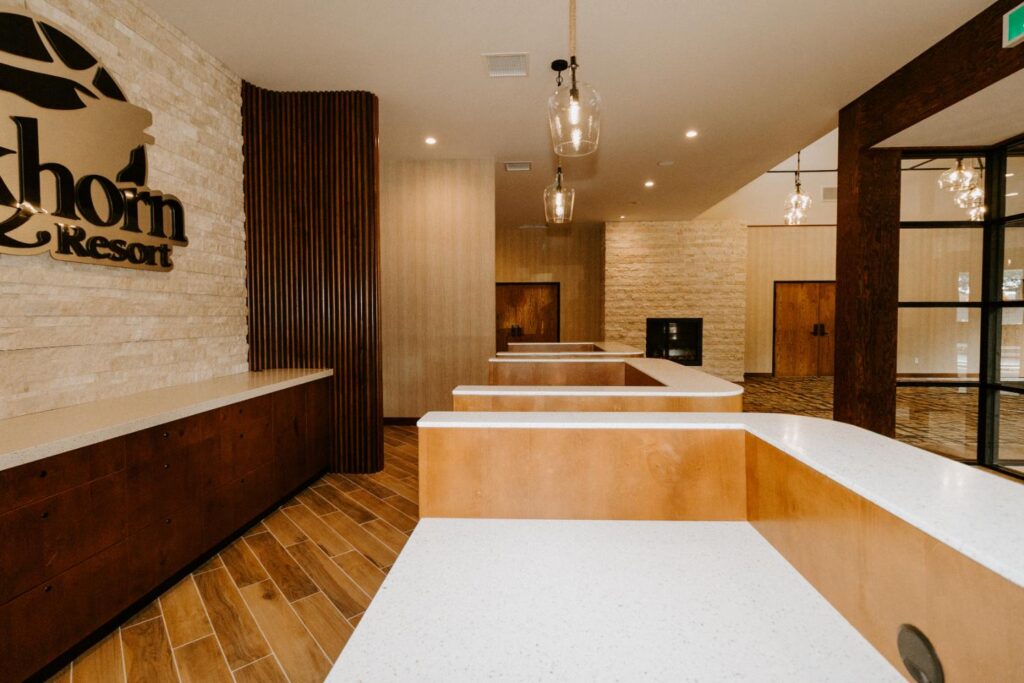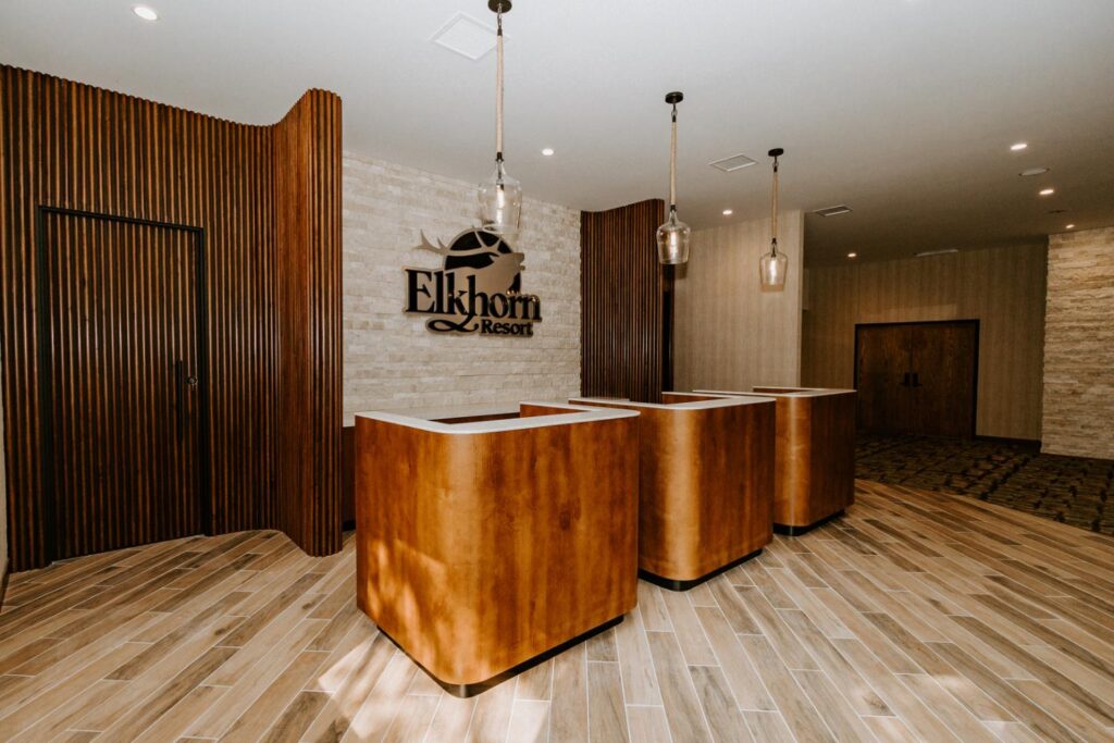 Elkhorn Resort has undergone major renovations across the entire site over the past few years. The reception area felt dated and didn’t flow with the rest of the space. Our goal was to update this area to create a cohesive look that matched the entire resort.