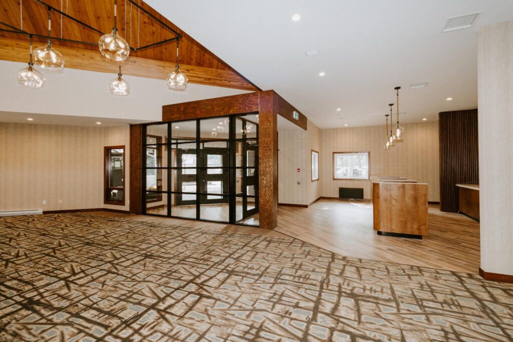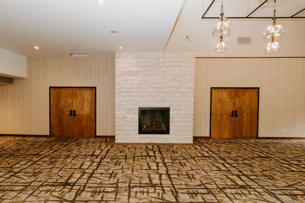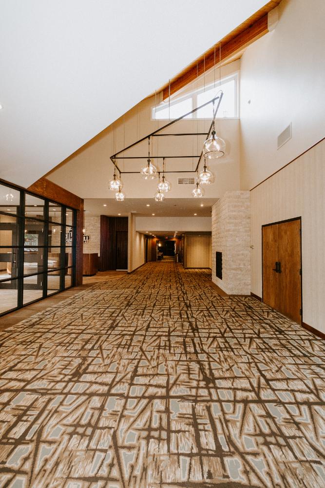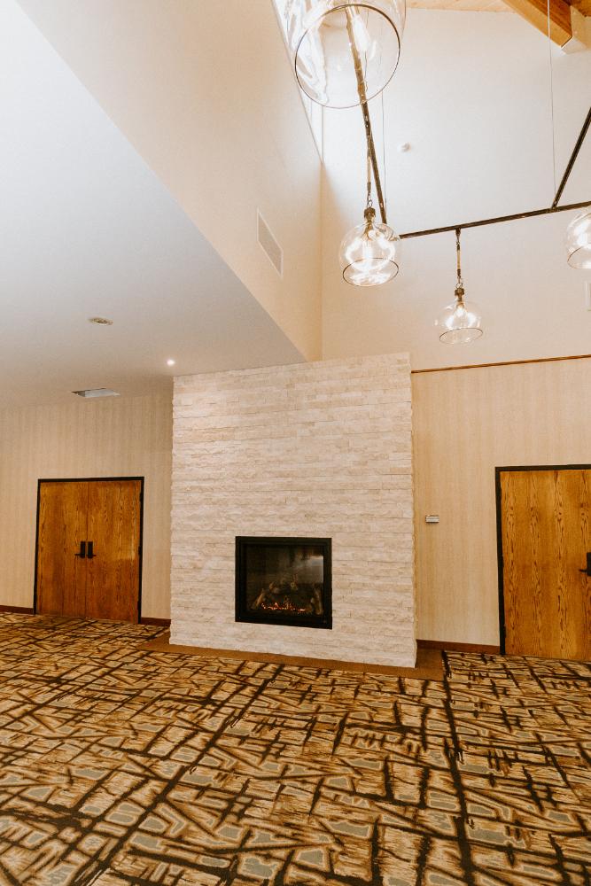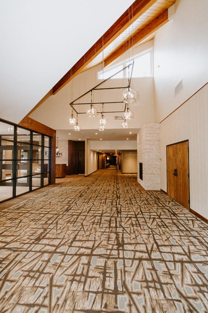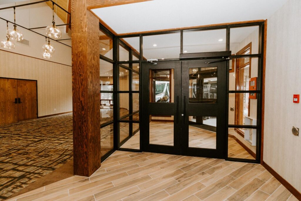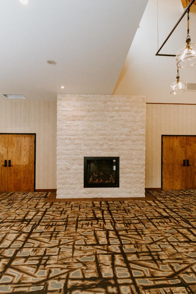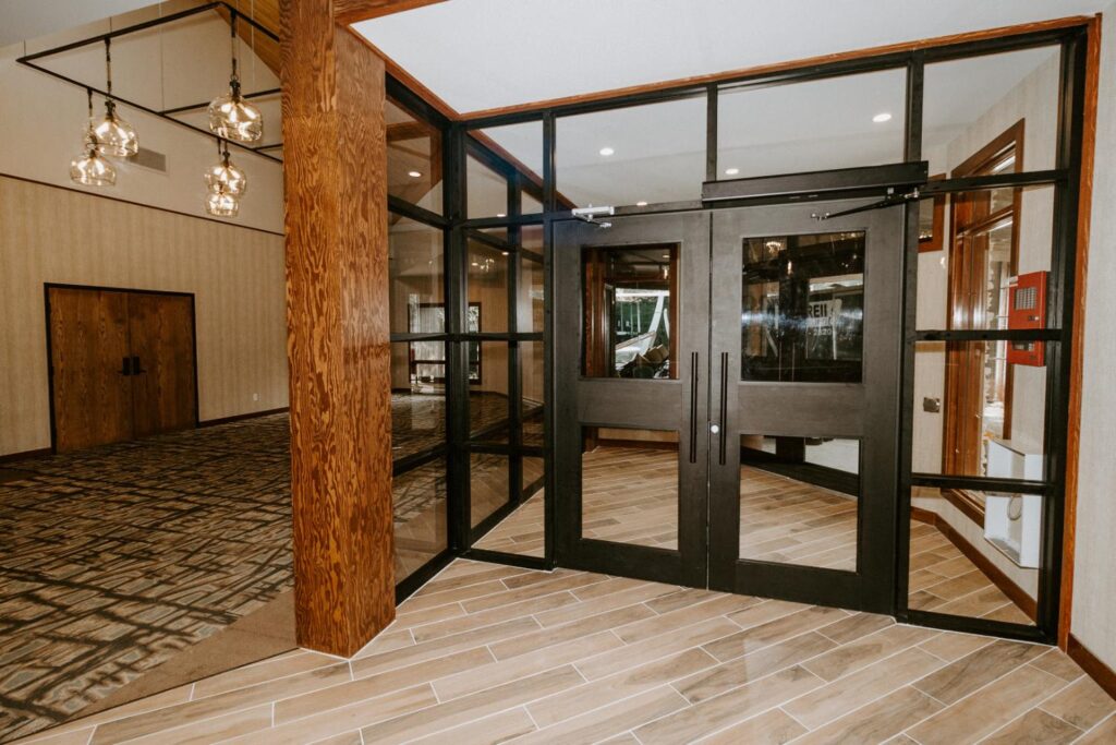 The upgrades included new entry and glass systems, a new fireplace, and a feature check-in reception area. Additionally, we reconfigured the copier room and office, along with upgrading the lighting and wall coverings, to complete the transformation.
