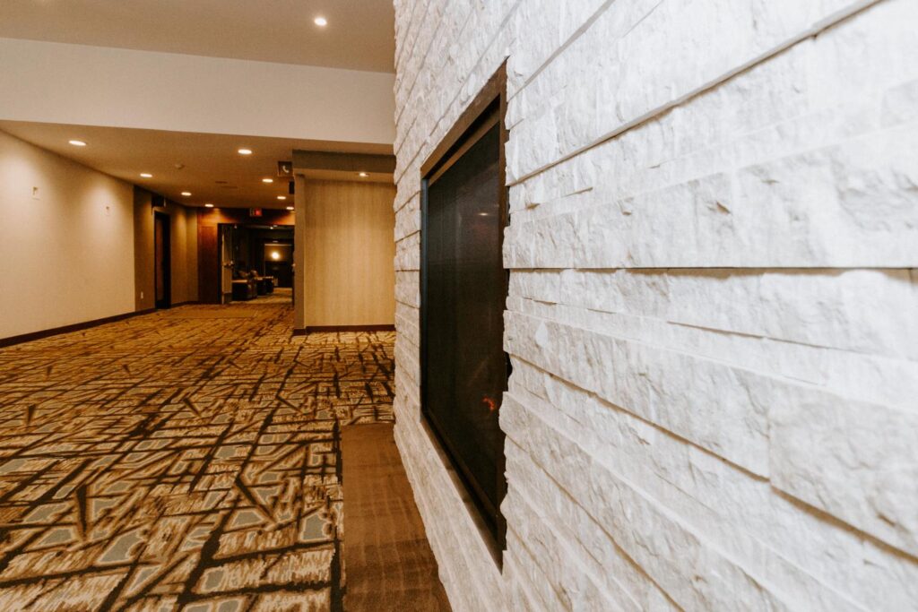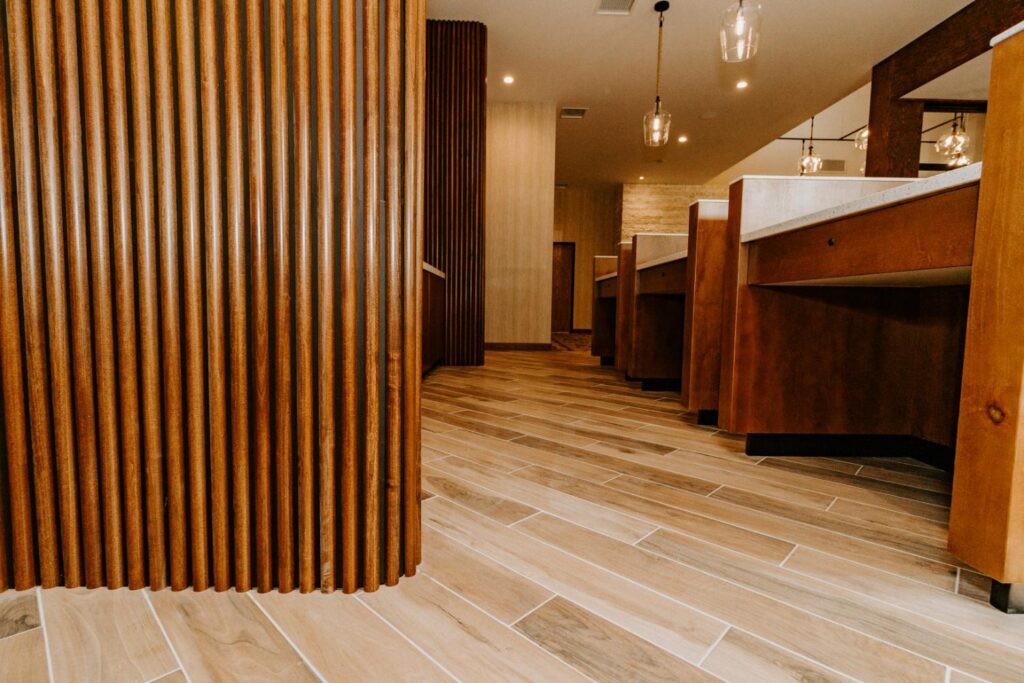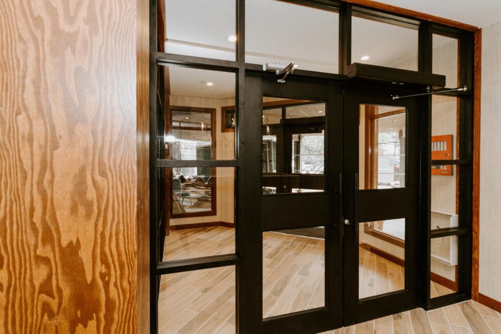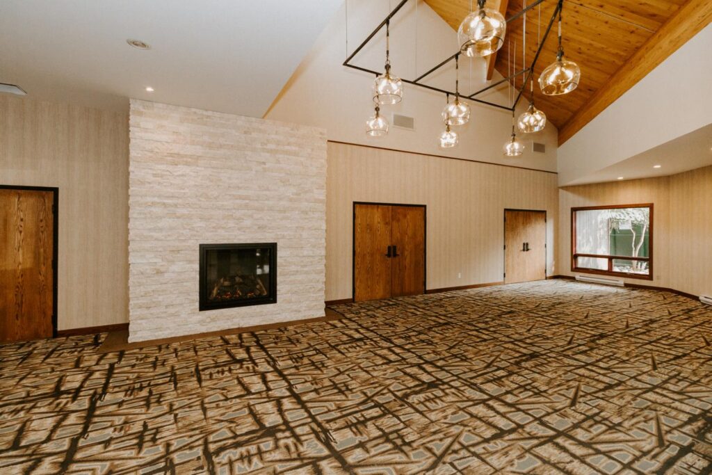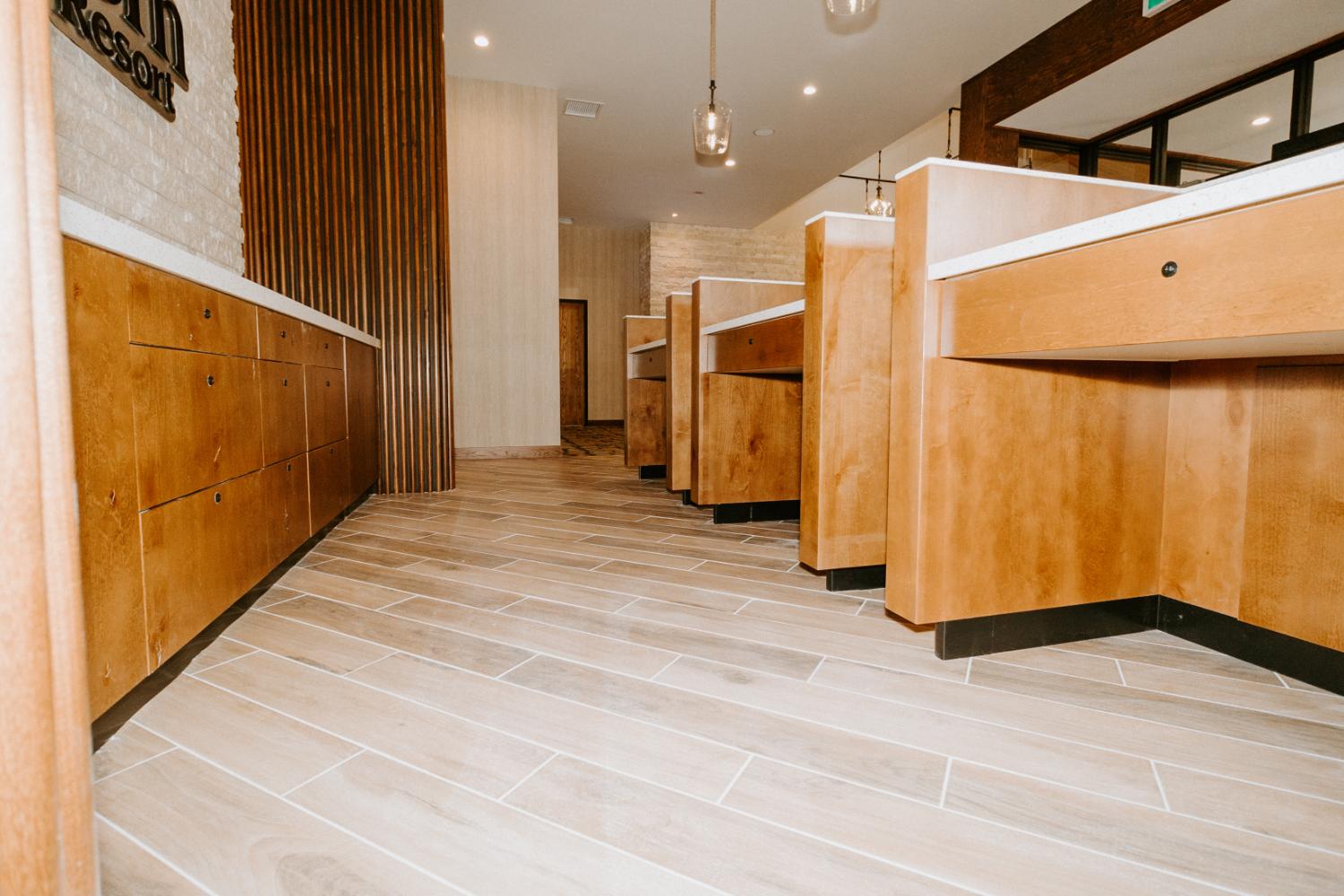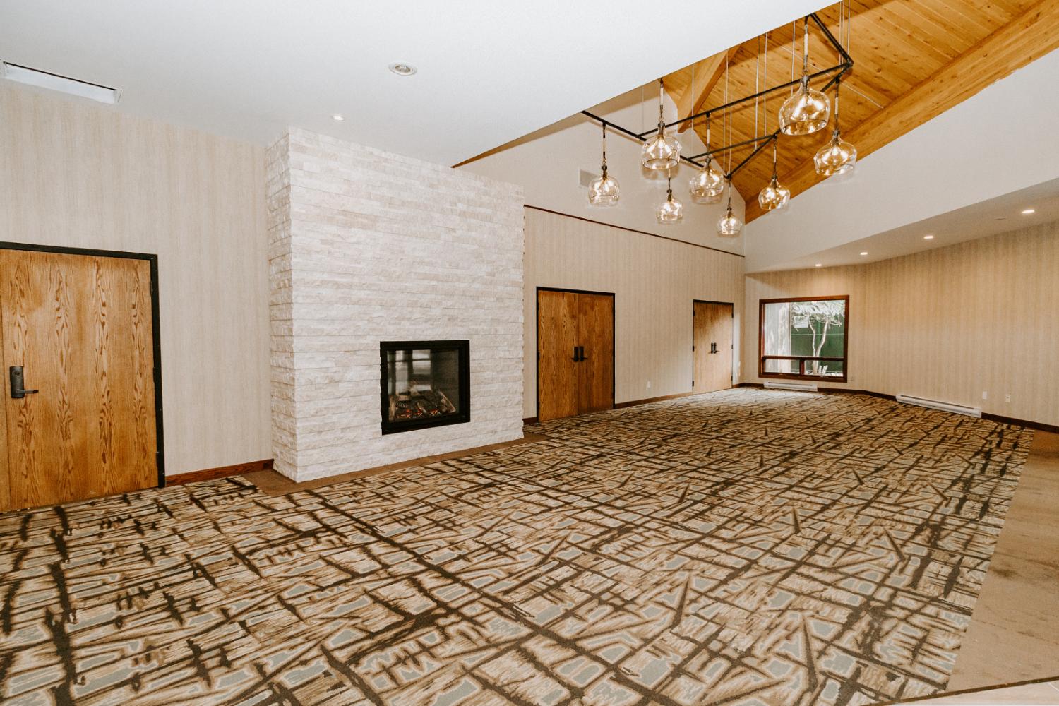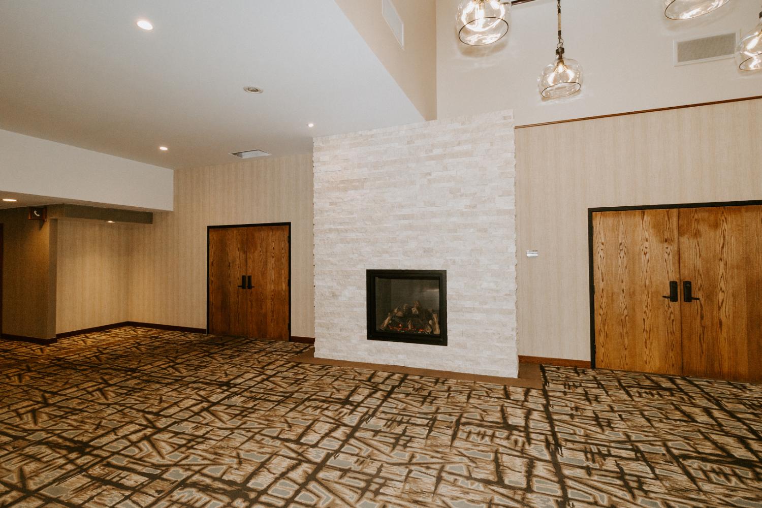 The upgrades included new entry and glass systems, a new fireplace, and a feature check-in reception area. Additionally, we reconfigured the copier room and office, along with upgrading the lighting and wall coverings, to complete the transformation.