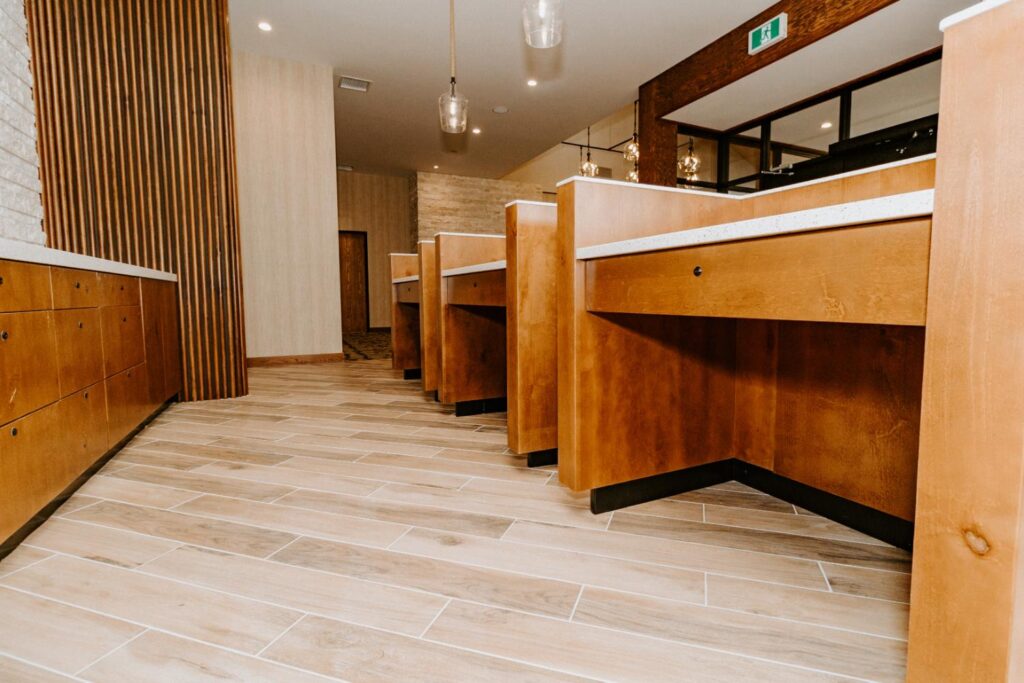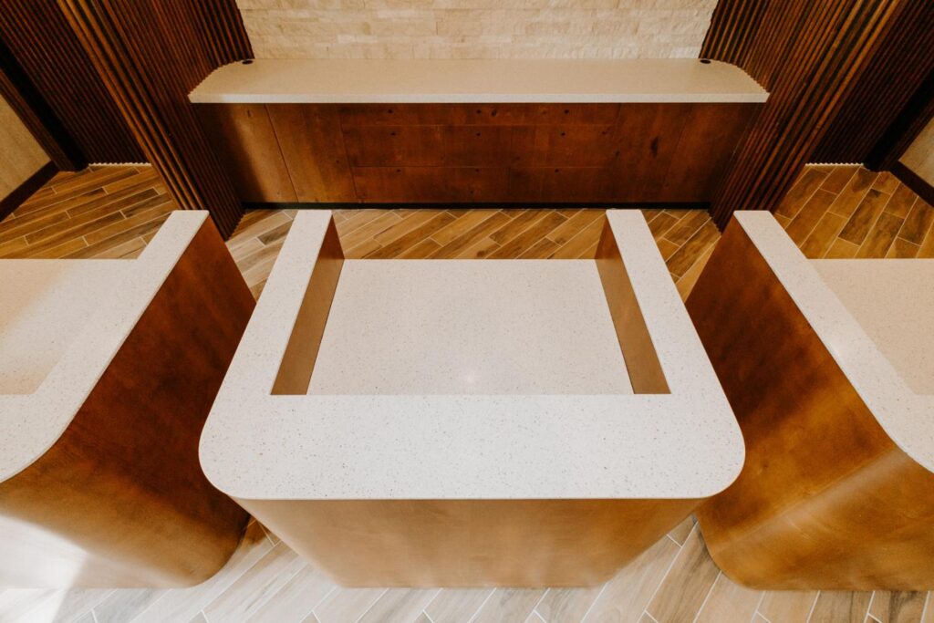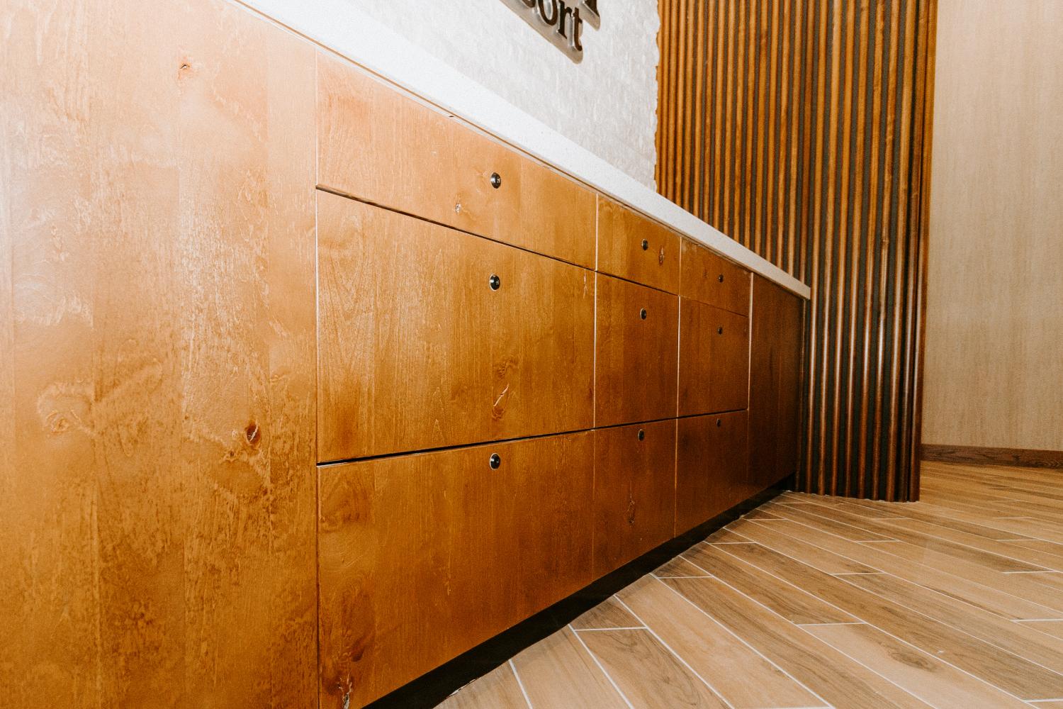 Cabinetry (Front Desk/Kiosk) – Dusty Woodworks