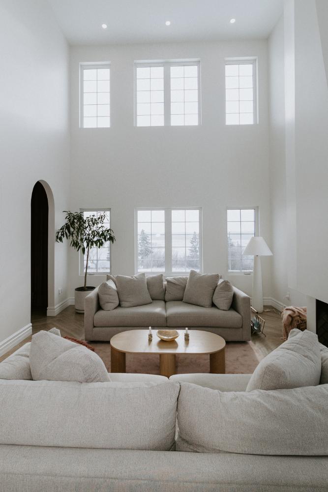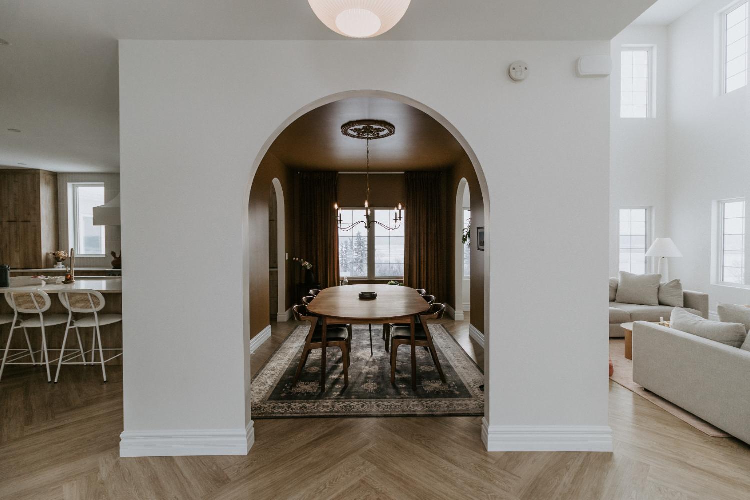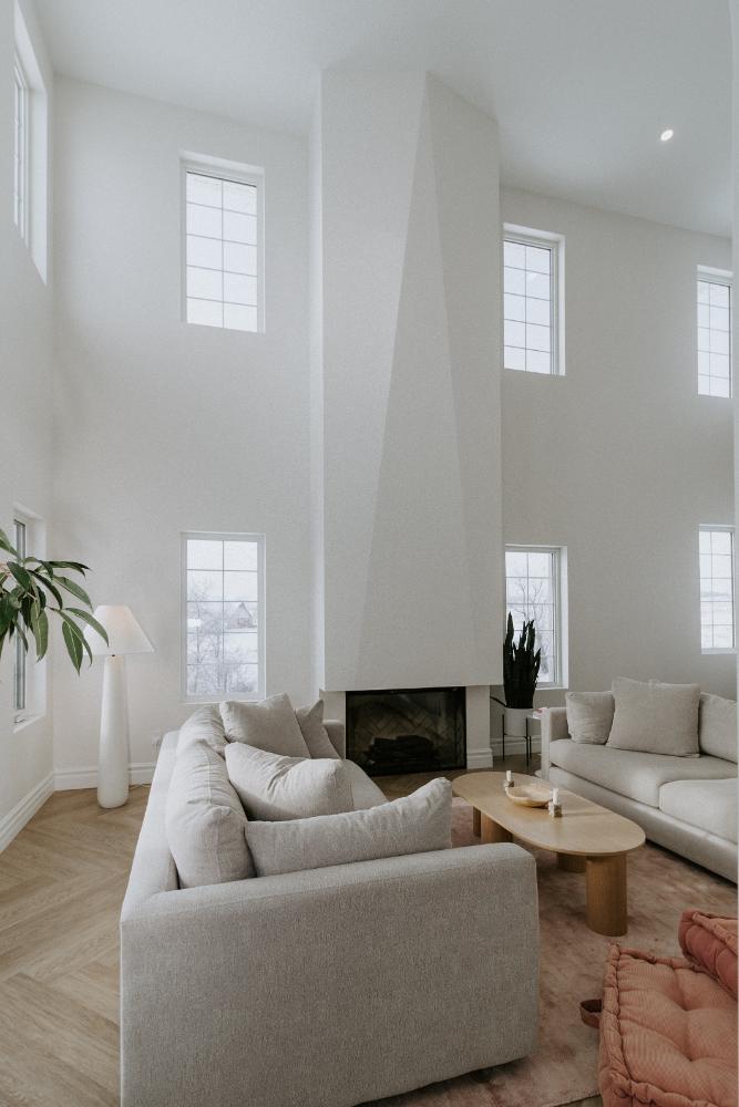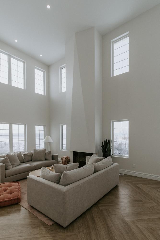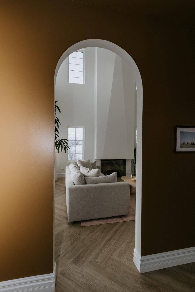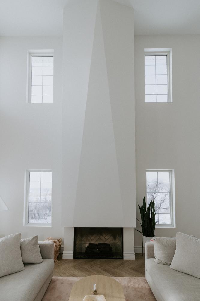 We collaborated closely with the clients, design team, trades, and suppliers to plan and create their dream home. This new home construction featured numerous distinctive design elements, including half rounds over doorways and one window on the front of the house, as well as a unique drywall design above the living room fireplace.