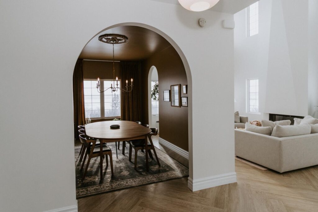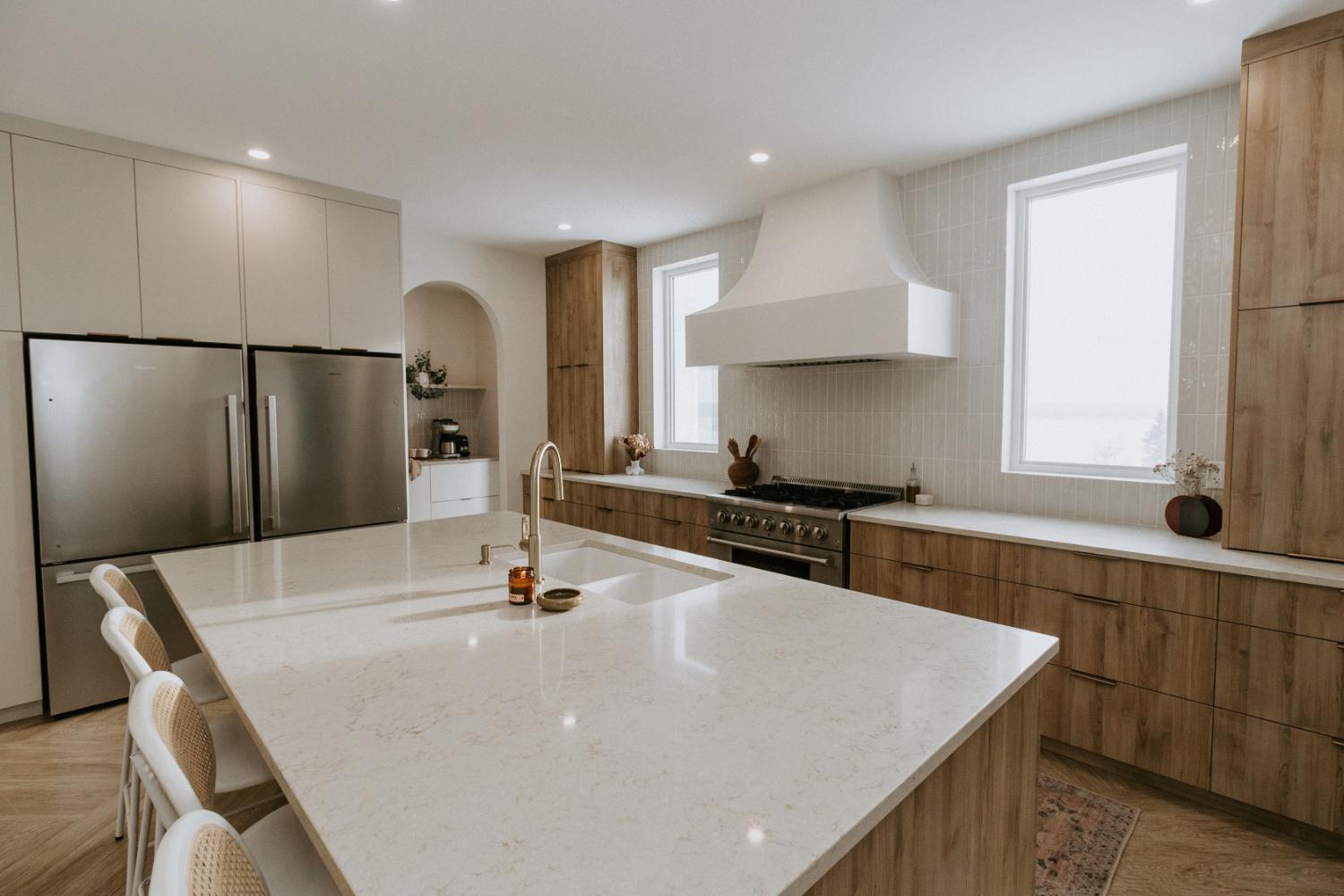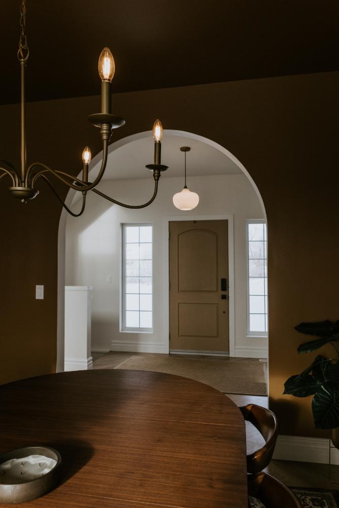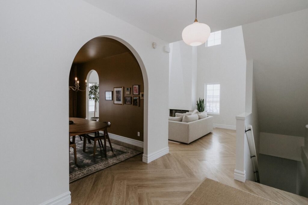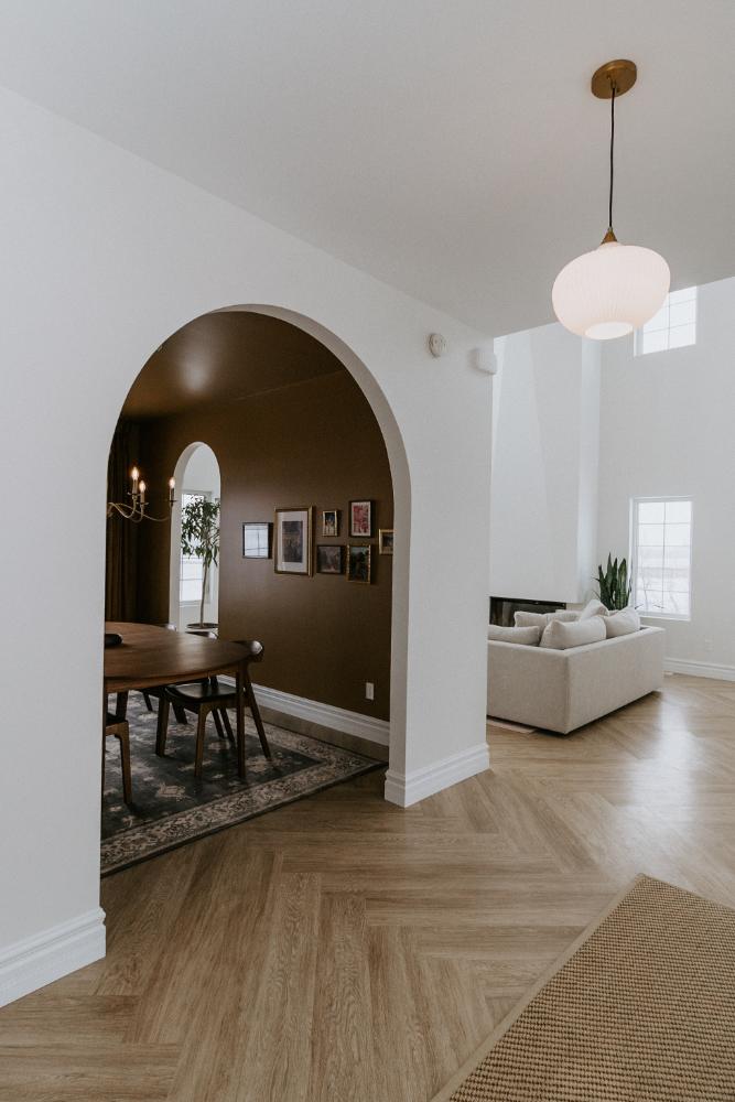We collaborated closely with the clients, design team, trades, and suppliers to plan and create their dream home. This new home construction featured numerous distinctive design elements, including half rounds over doorways and one window on the front of the house, as well as a unique drywall design above the living room fireplace.