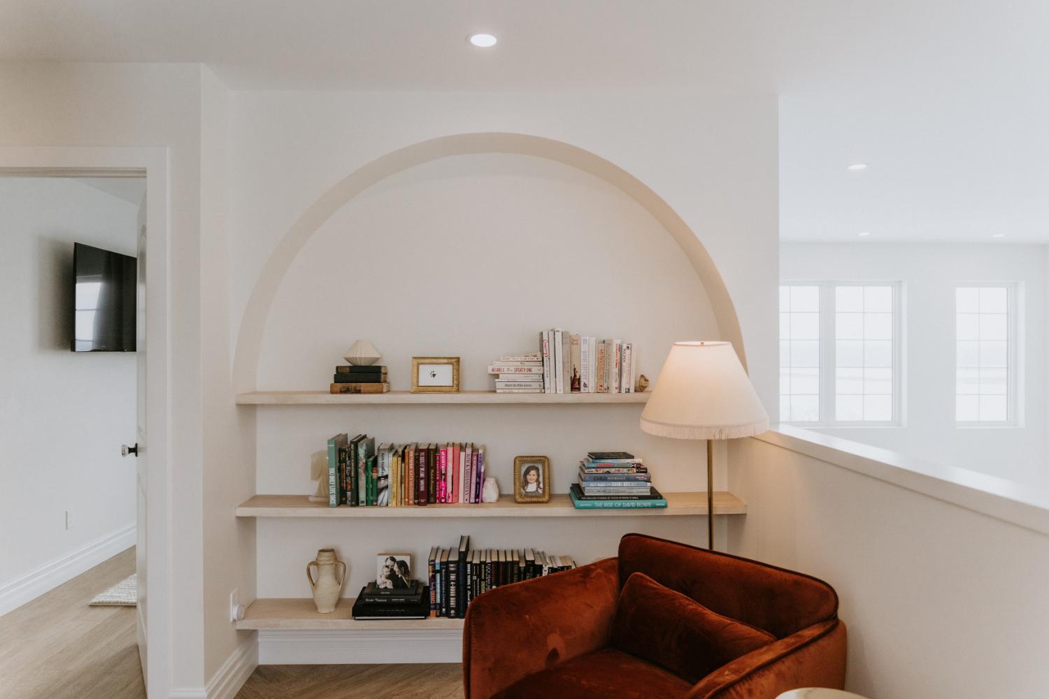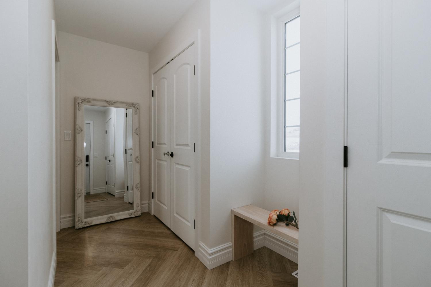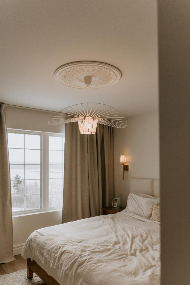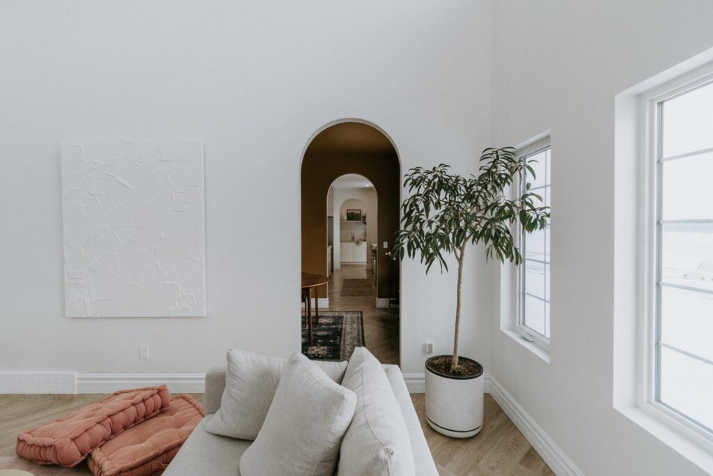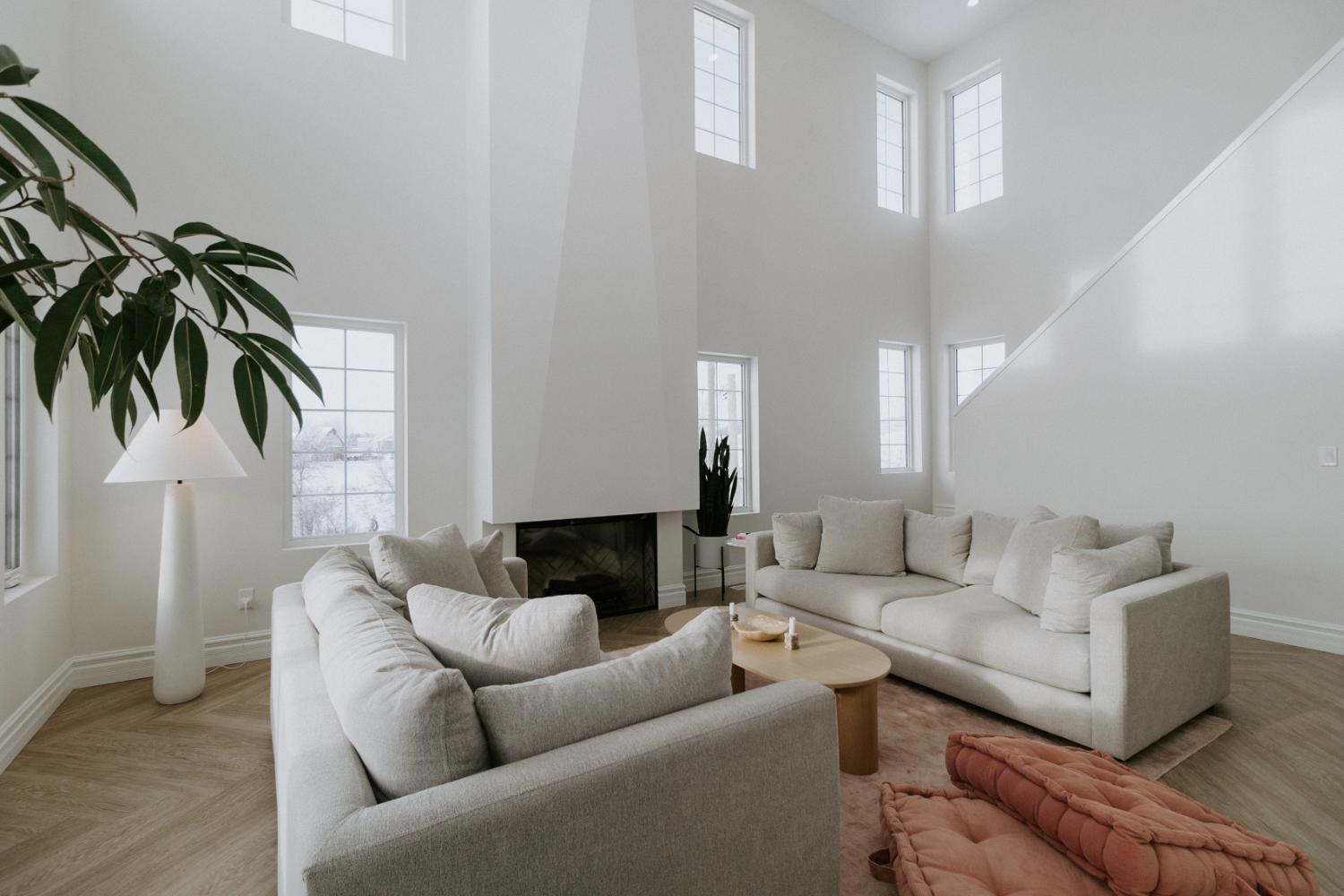 We collaborated closely with the clients, design team, trades, and suppliers to plan and create their dream home. This new home construction featured numerous distinctive design elements, including half rounds over doorways and one window on the front of the house, as well as a unique drywall design above the living room fireplace.