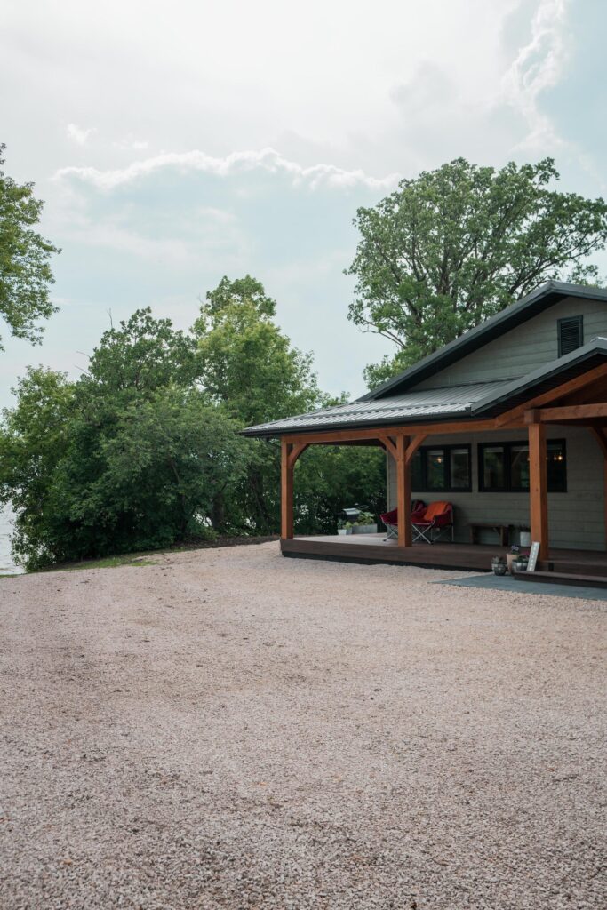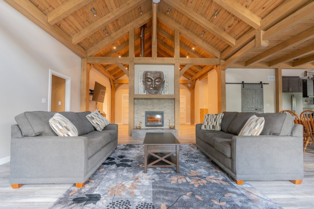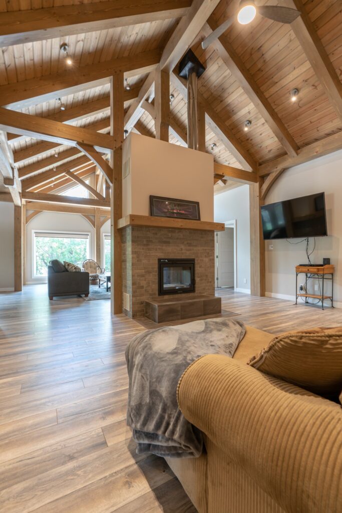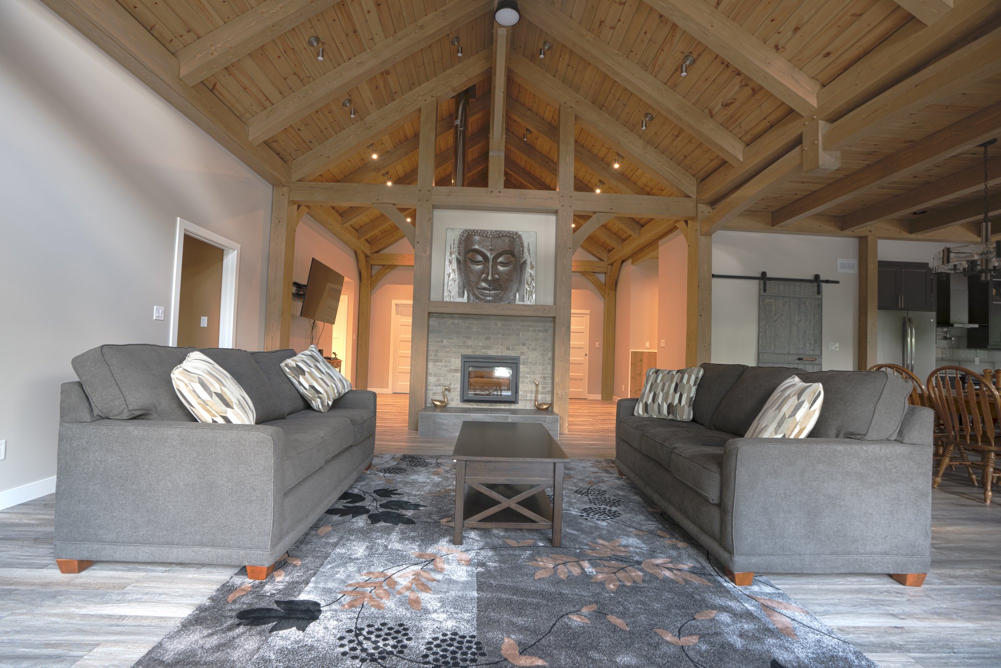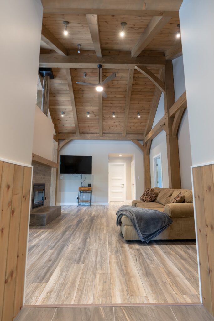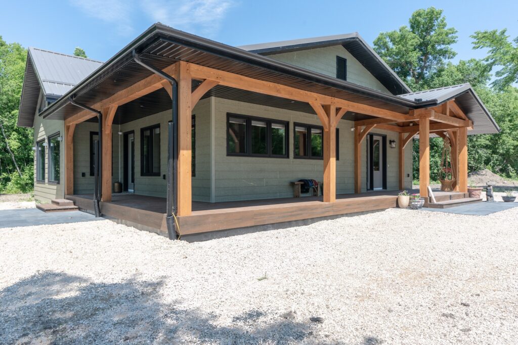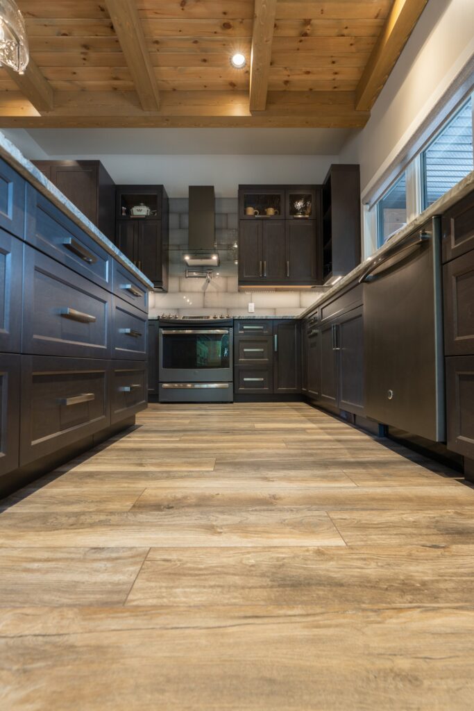 A modern rustic custom home build featuring an open concept living space with a spacious kitchen, living and family room on the main floor.