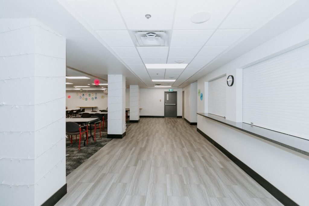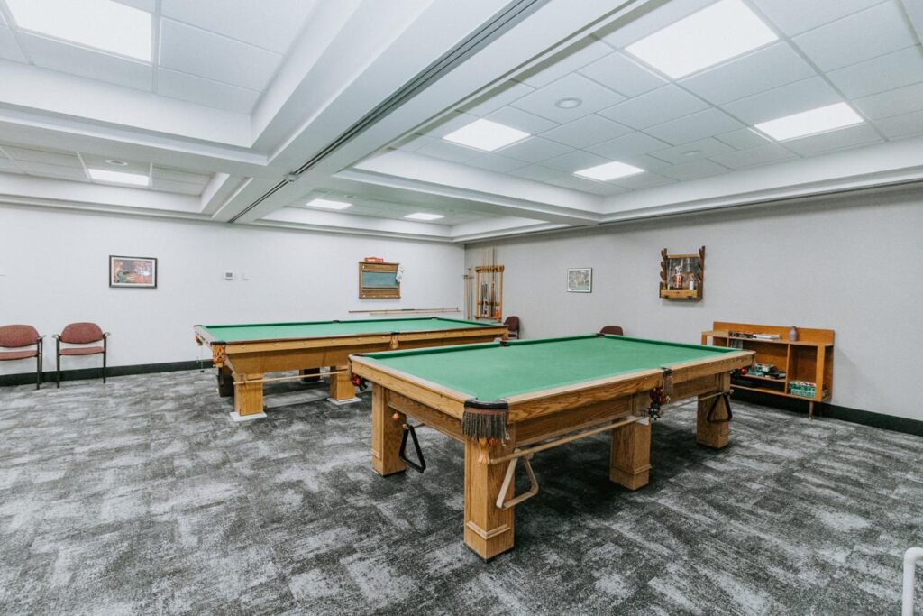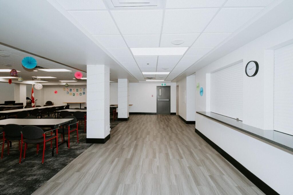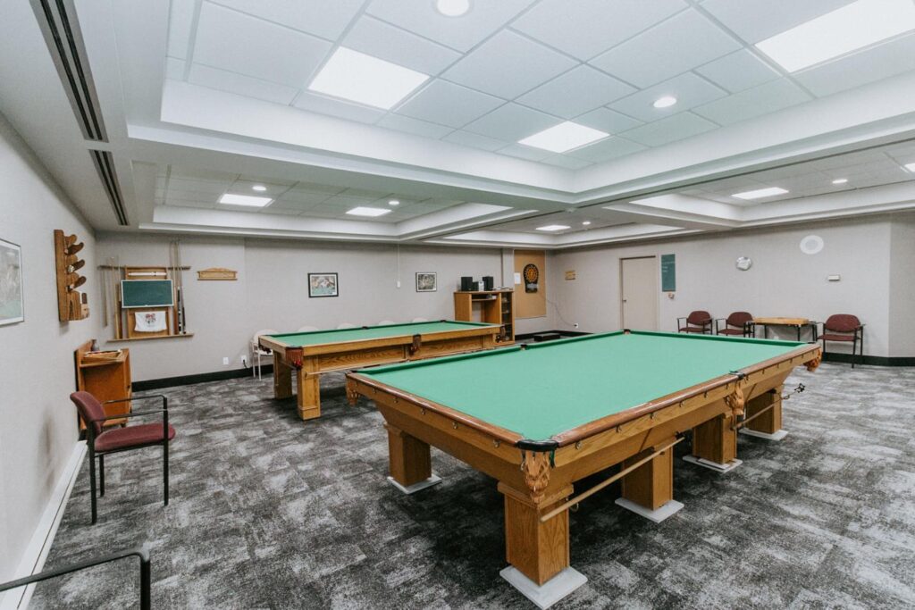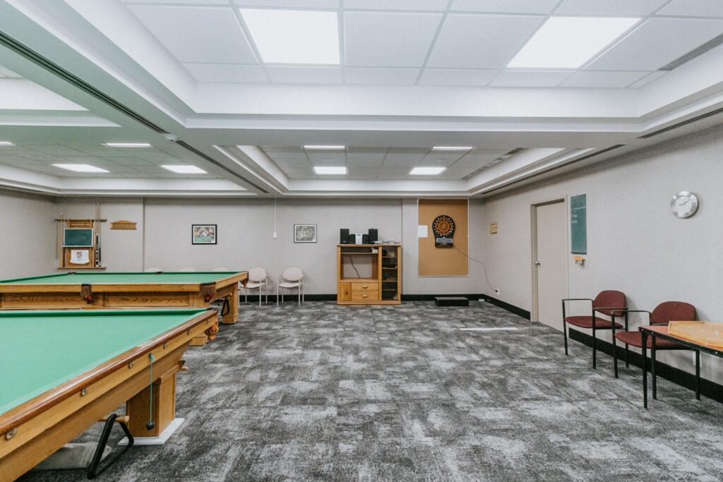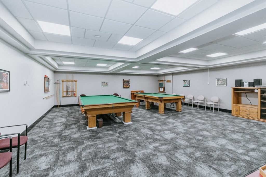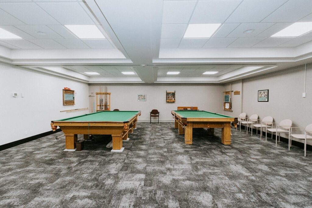 Alair Homes Brandon recently completed Phase 2 of the renovations at Lions Manor, completely updating the common spaces. This phase included a total overhaul of both basement common areas, featuring updated kitchens, new flooring, wallpaper, ceilings, trim, and paint. We ensured the design matched the main level renovation to create a cohesive and inviting space.