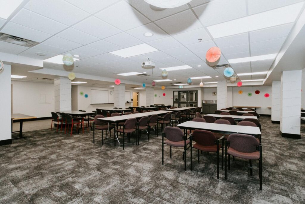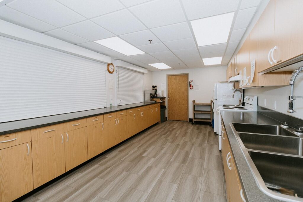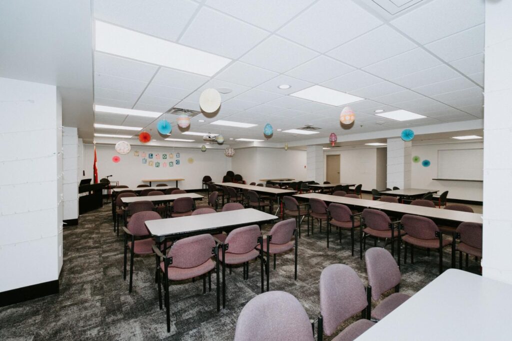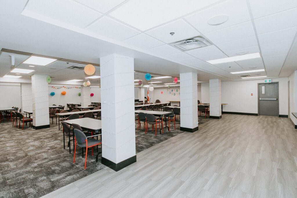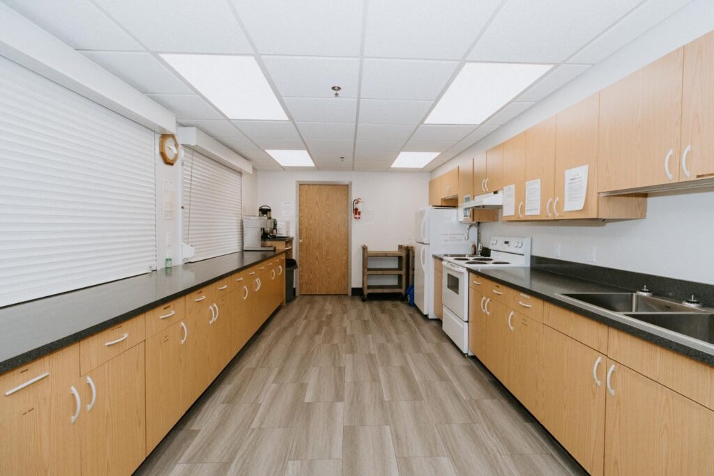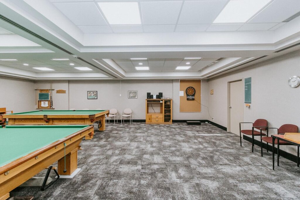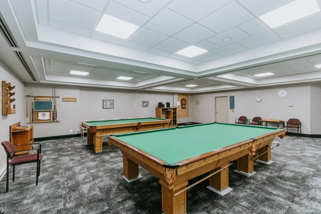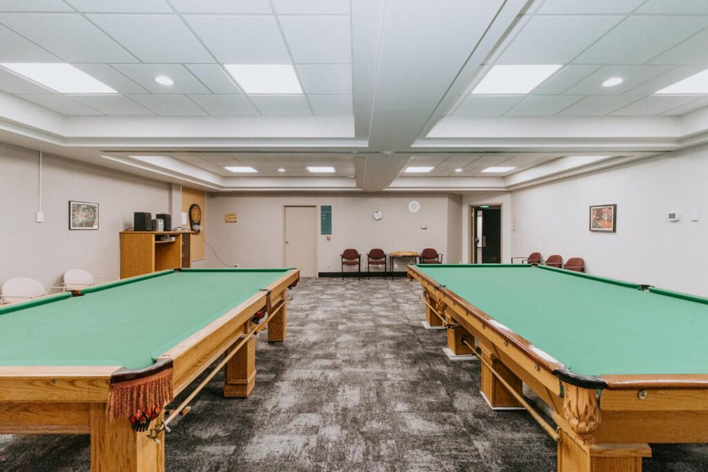 Alair Homes Brandon recently completed Phase 2 of the renovations at Lions Manor, completely updating the common spaces. This phase included a total overhaul of both basement common areas, featuring updated kitchens, new flooring, wallpaper, ceilings, trim, and paint. We ensured the design matched the main level renovation to create a cohesive and inviting space.