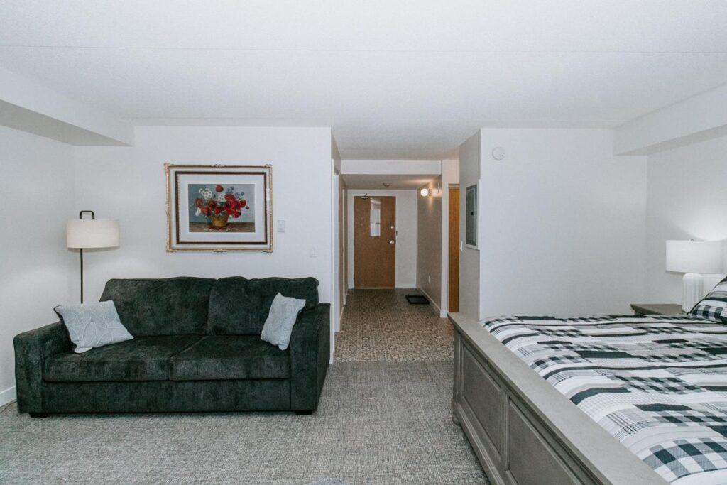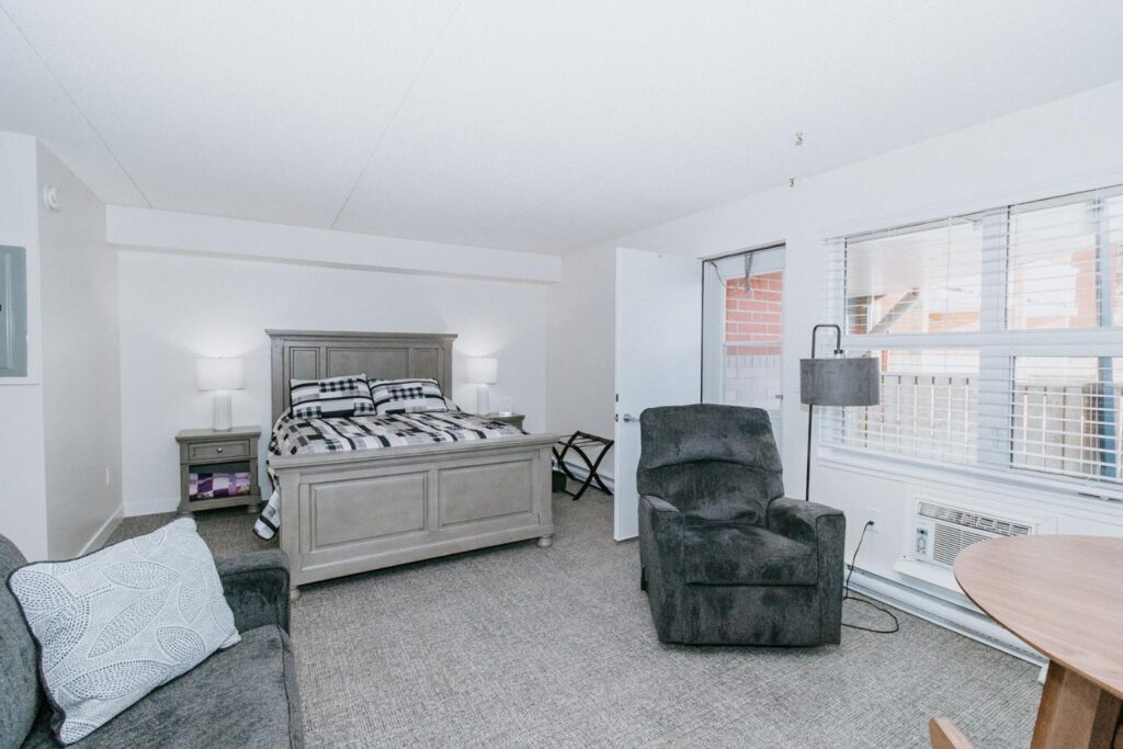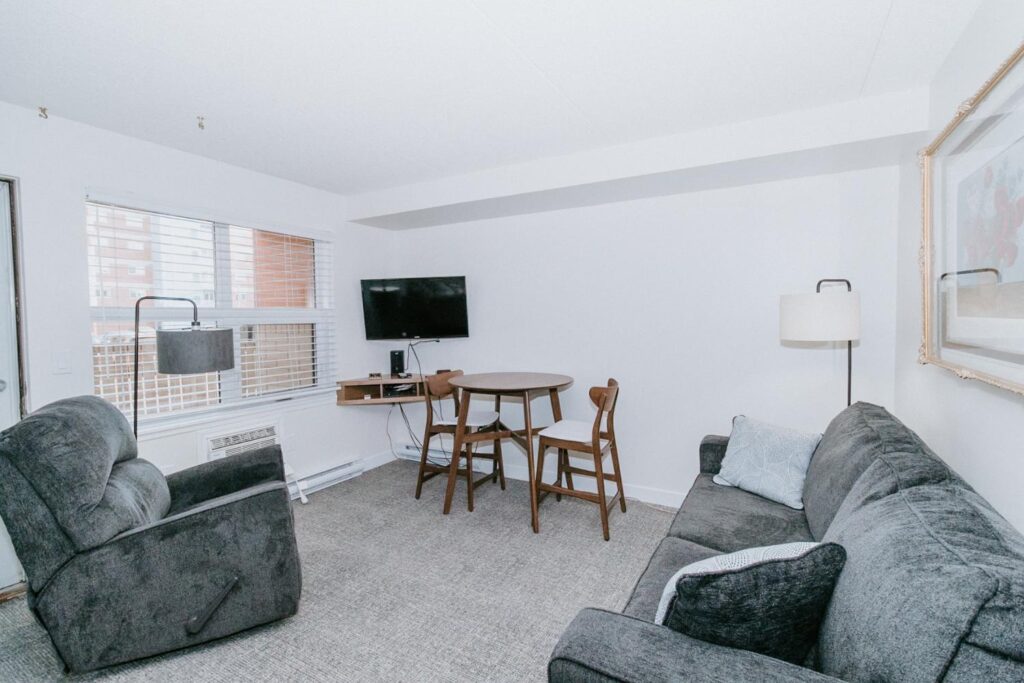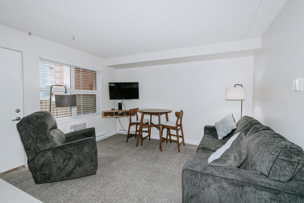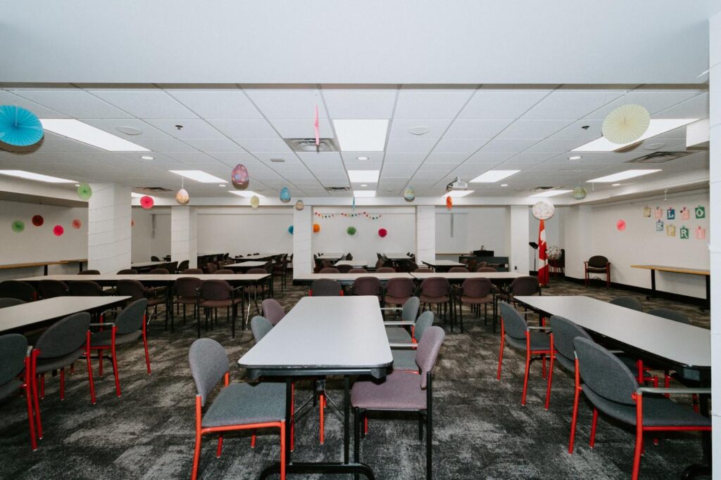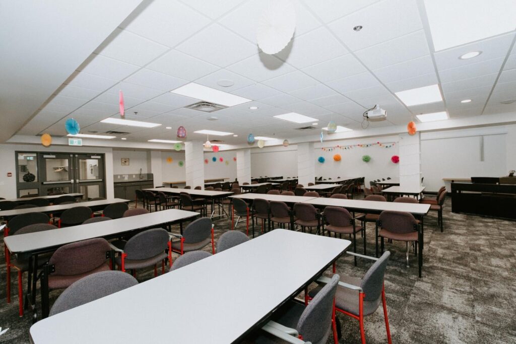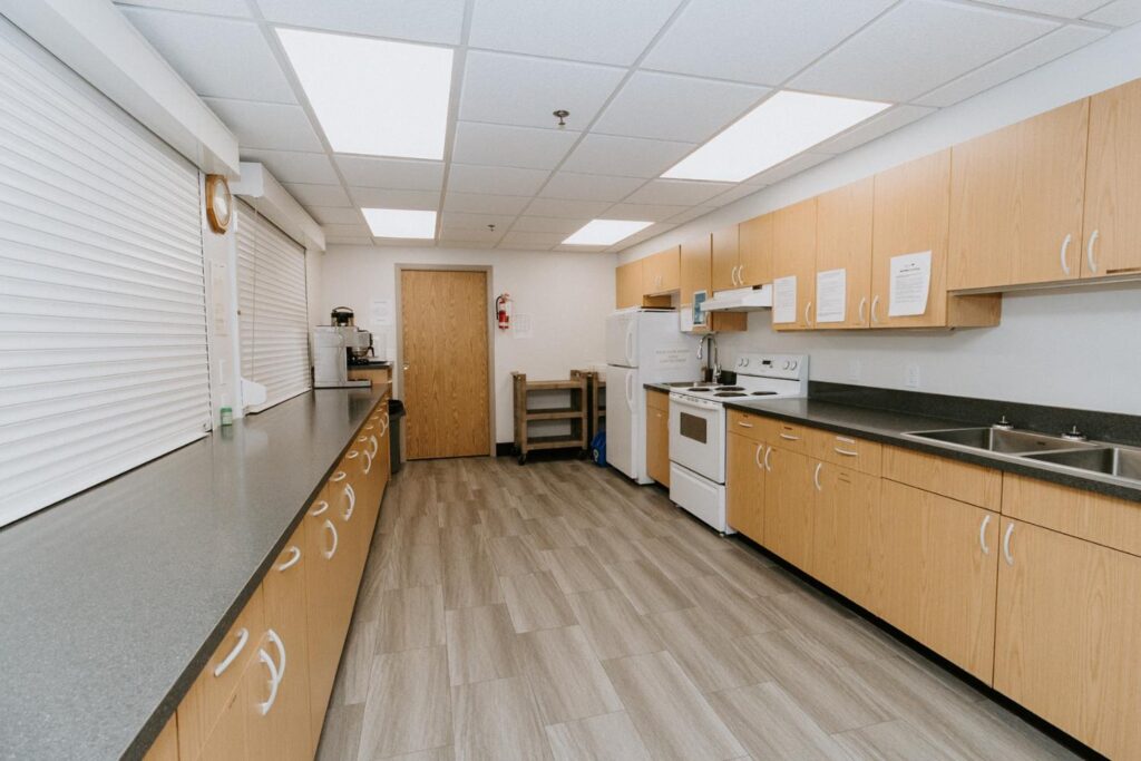 Alair Homes Brandon recently completed Phase 2 of the renovations at Lions Manor, completely updating the common spaces. This phase included a total overhaul of both basement common areas, featuring updated kitchens, new flooring, wallpaper, ceilings, trim, and paint. We ensured the design matched the main level renovation to create a cohesive and inviting space.