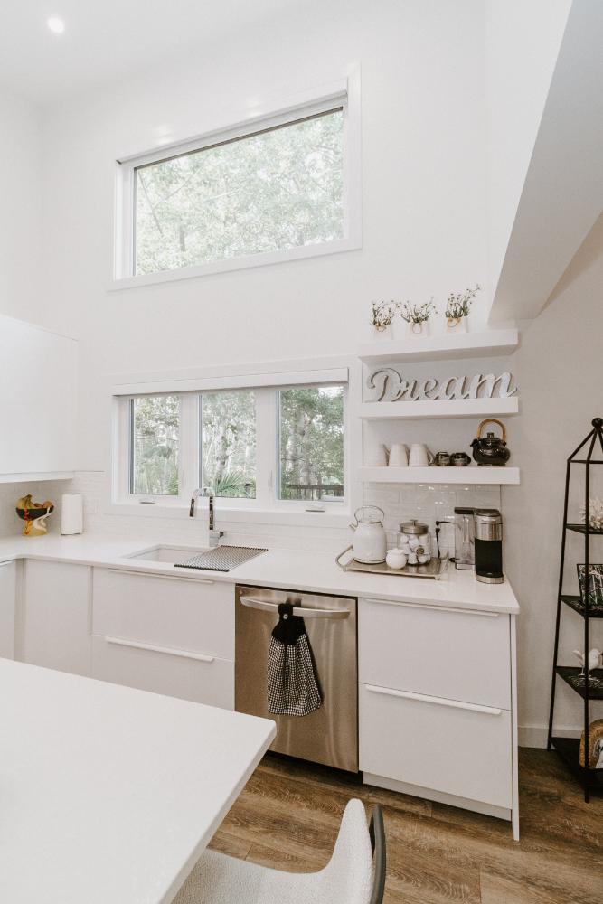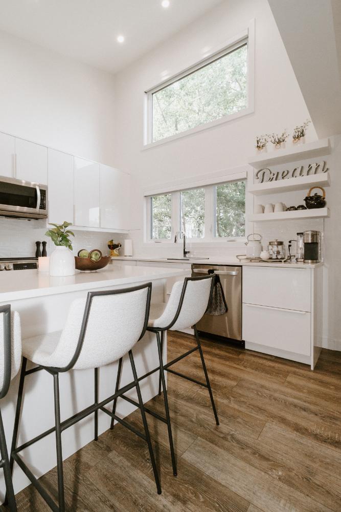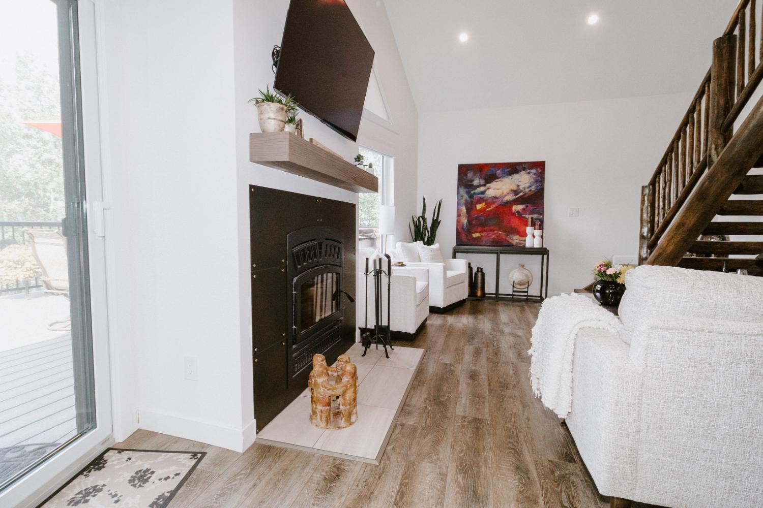 We preserved the shell of the original cabin and the wood staircase, which held sentimental value to the family. By updating and expanding the cottage, we transformed it into a full-time home that combines cherished memories with modern living.