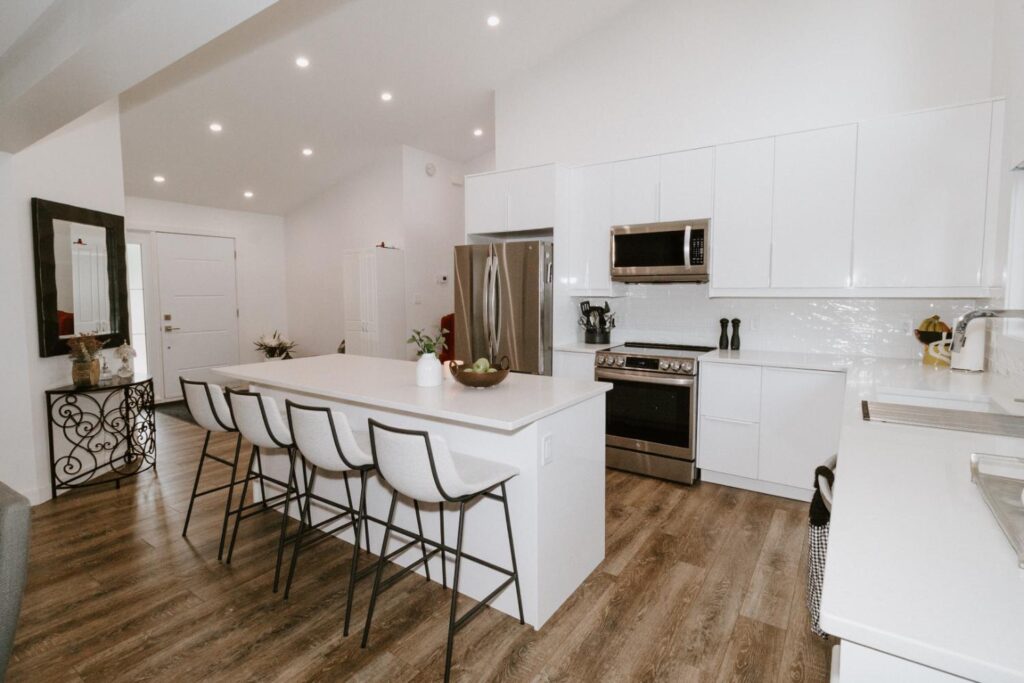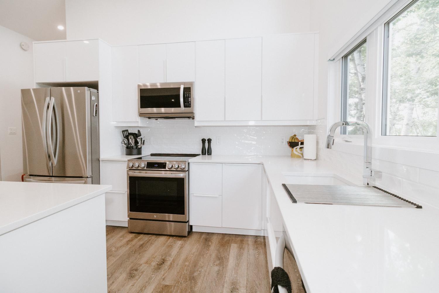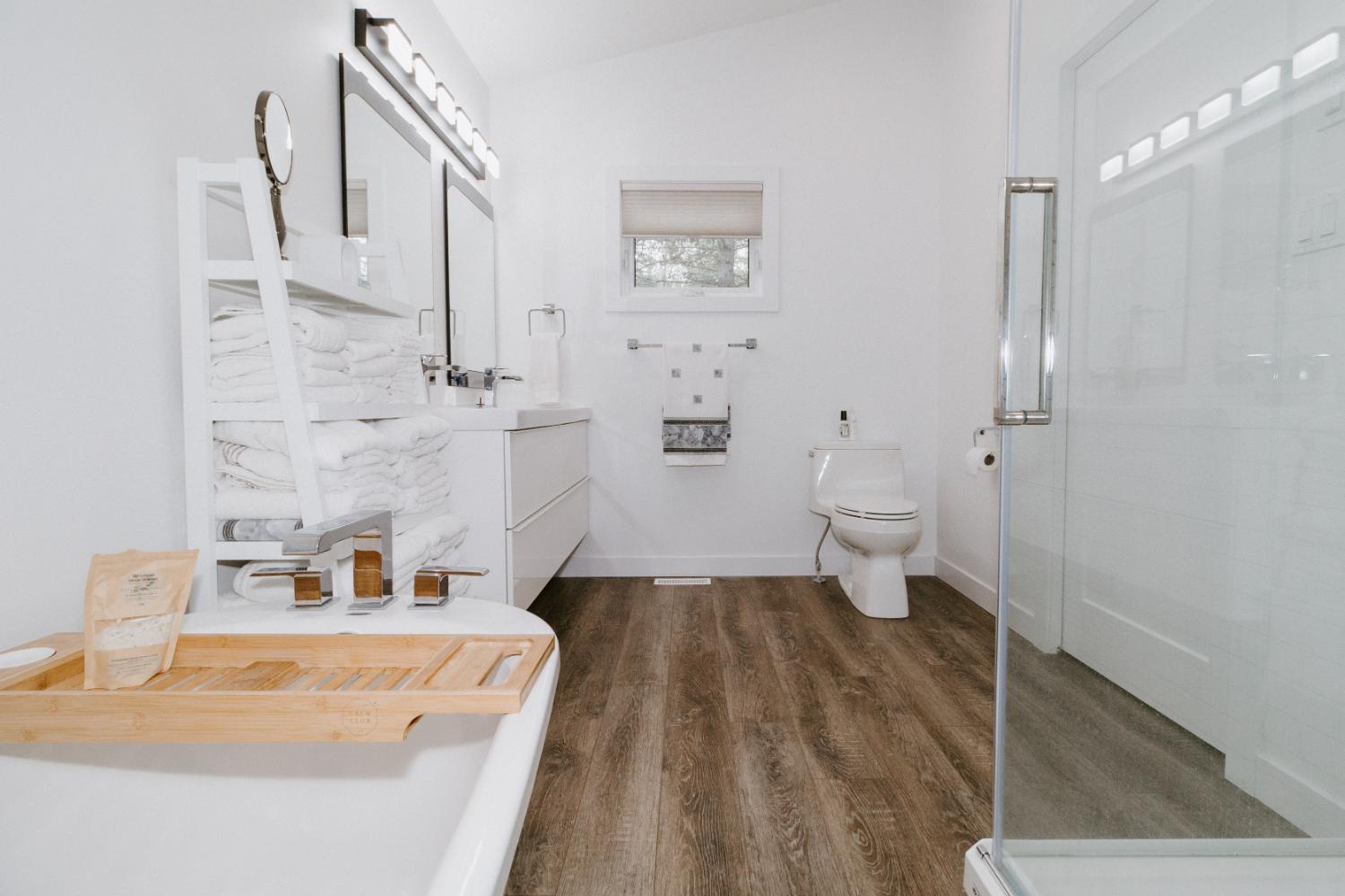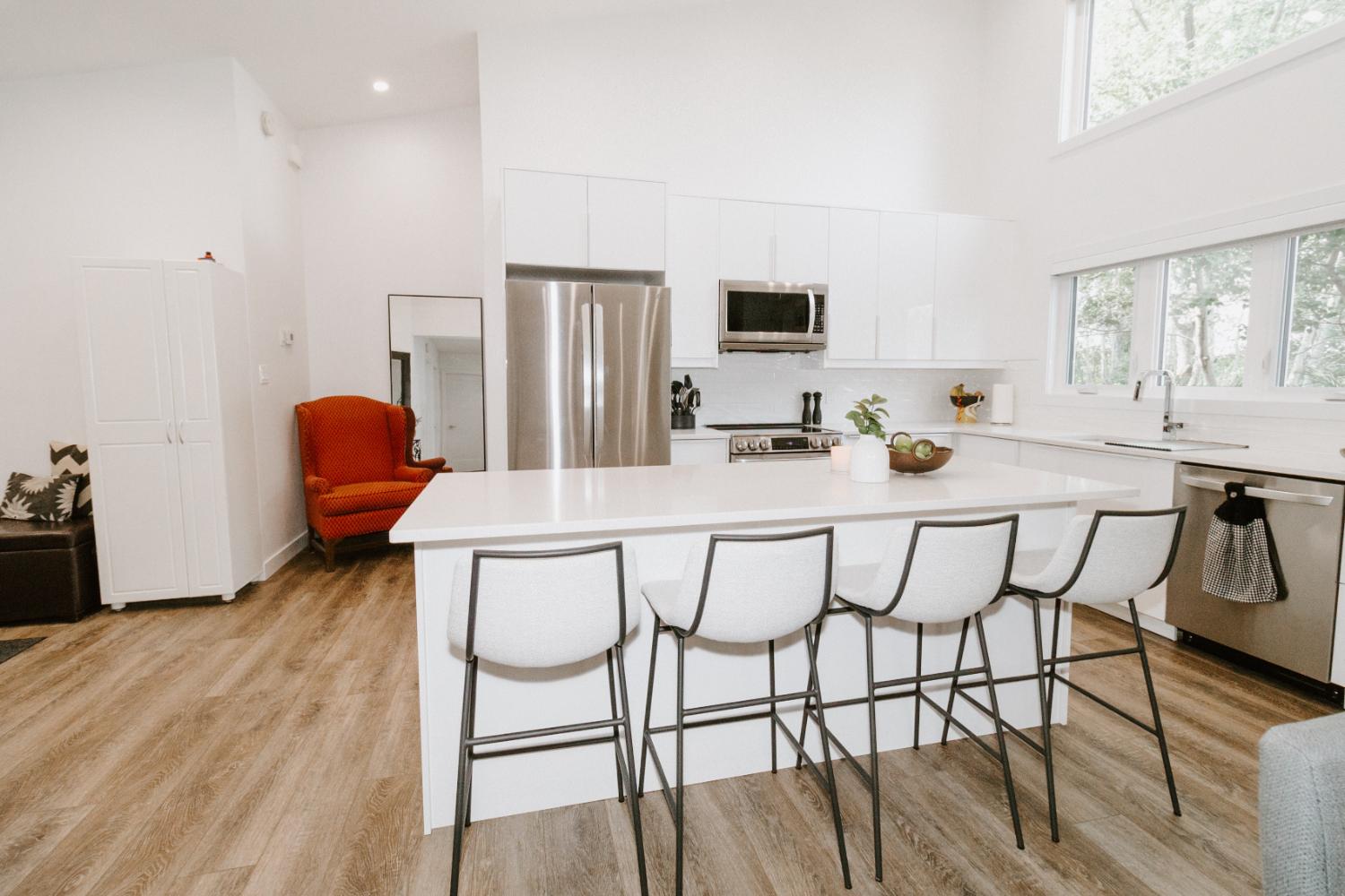 The project involved a major renovation and addition, increasing the cottage size by 700-800 square feet to incorporate additional bedroom, living, and extended kitchen space. The existing cottage was upgraded throughout, and a bathroom was added to the second level.