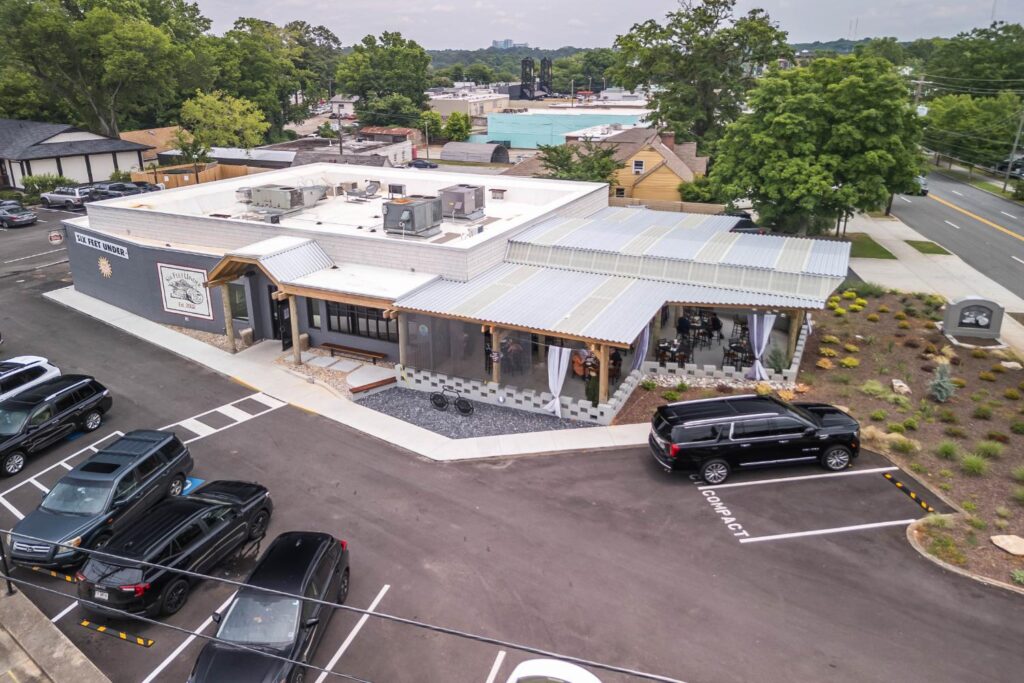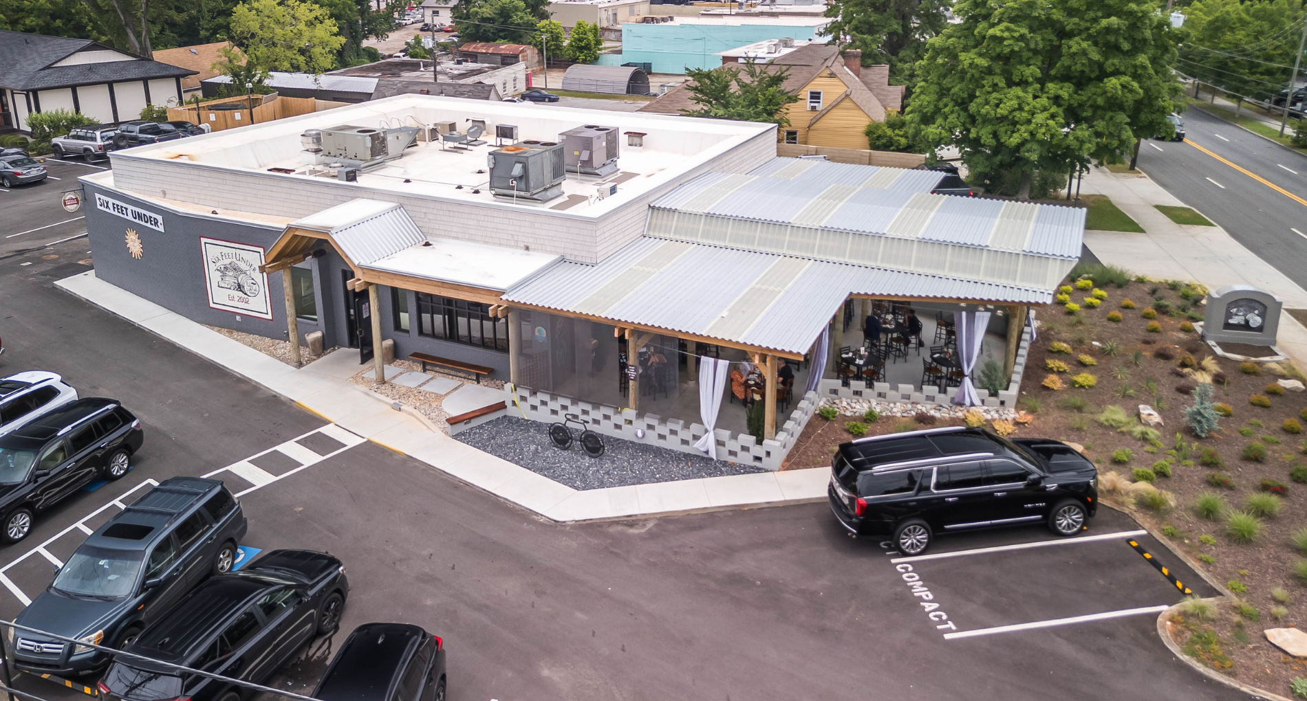 Nestled on Cheshire Bridge Road near Piedmont Road, Six Feet Under spans 10,000 square feet, bringing the beloved ambiance of the original location to its new home. This project, executed by Alair Buckhead in collaboration with PerchBuilt, an Atlanta-based design and build firm, in just 9 months, captures the essence of the iconic restaurant with its expansive pub-style layout. Large tables and thoughtfully designed spaces encourage interaction while ensuring efficient flow from kitchen to dining room and bar.