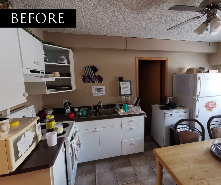 With the youth shelter, the vision was to create the heart of this temporary home for the youth staying there. A kitchen space where they could prepare and share meals together, and enjoy gathering together for Sunday-style family dinners. For the Camrose Open Door, this was really important to give youth a safe space where they could spend time together.
